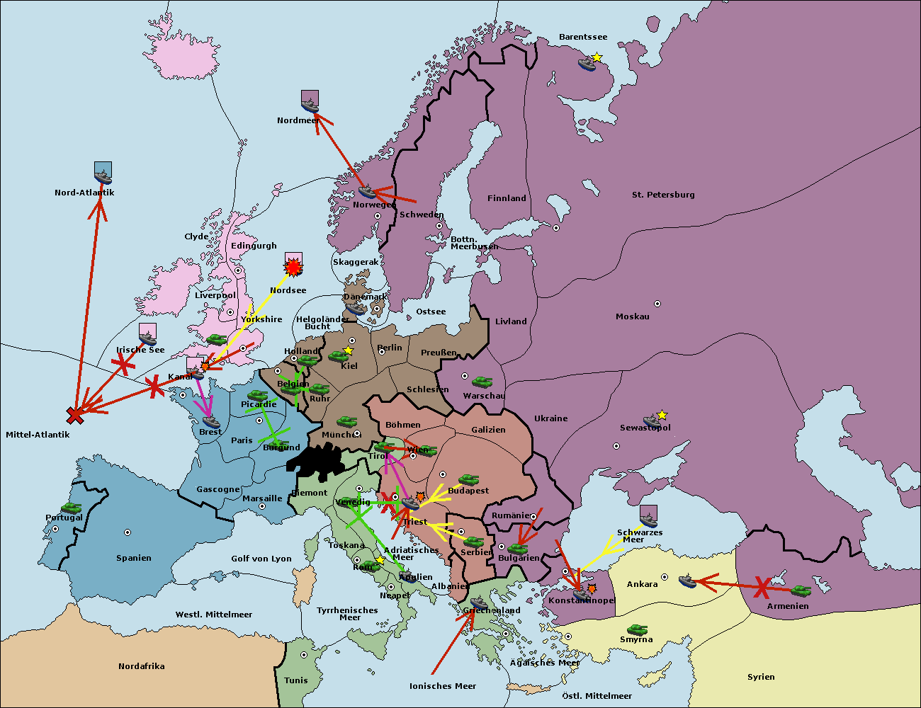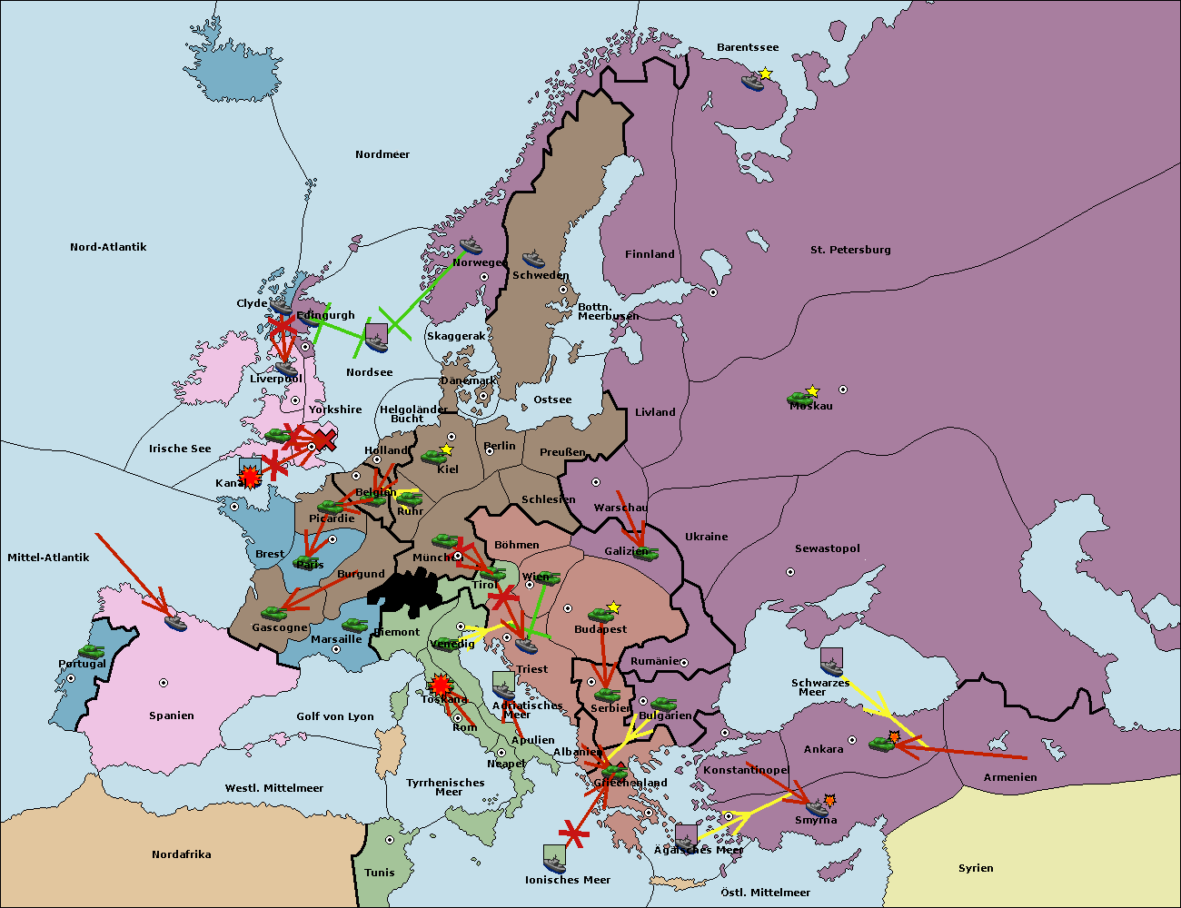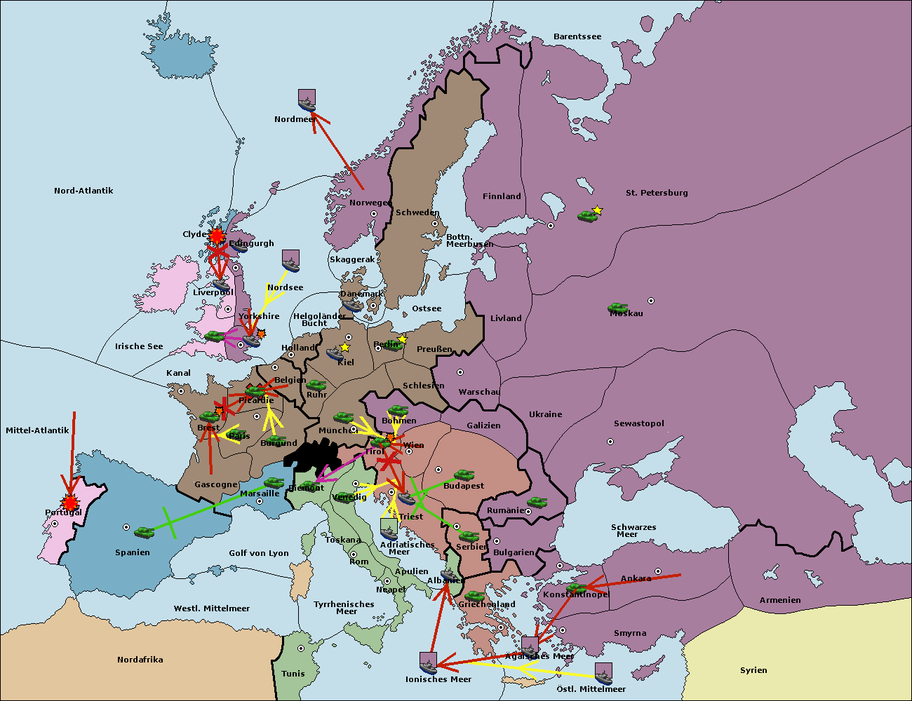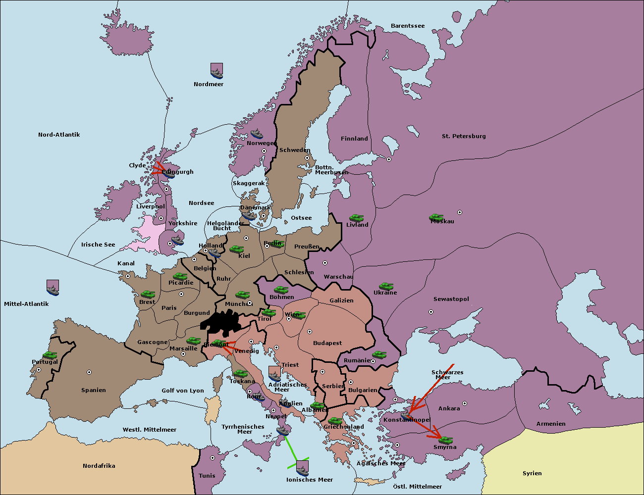 • Die Flotte in Bulgarien (Nordküste) move nach Konstantinopel.