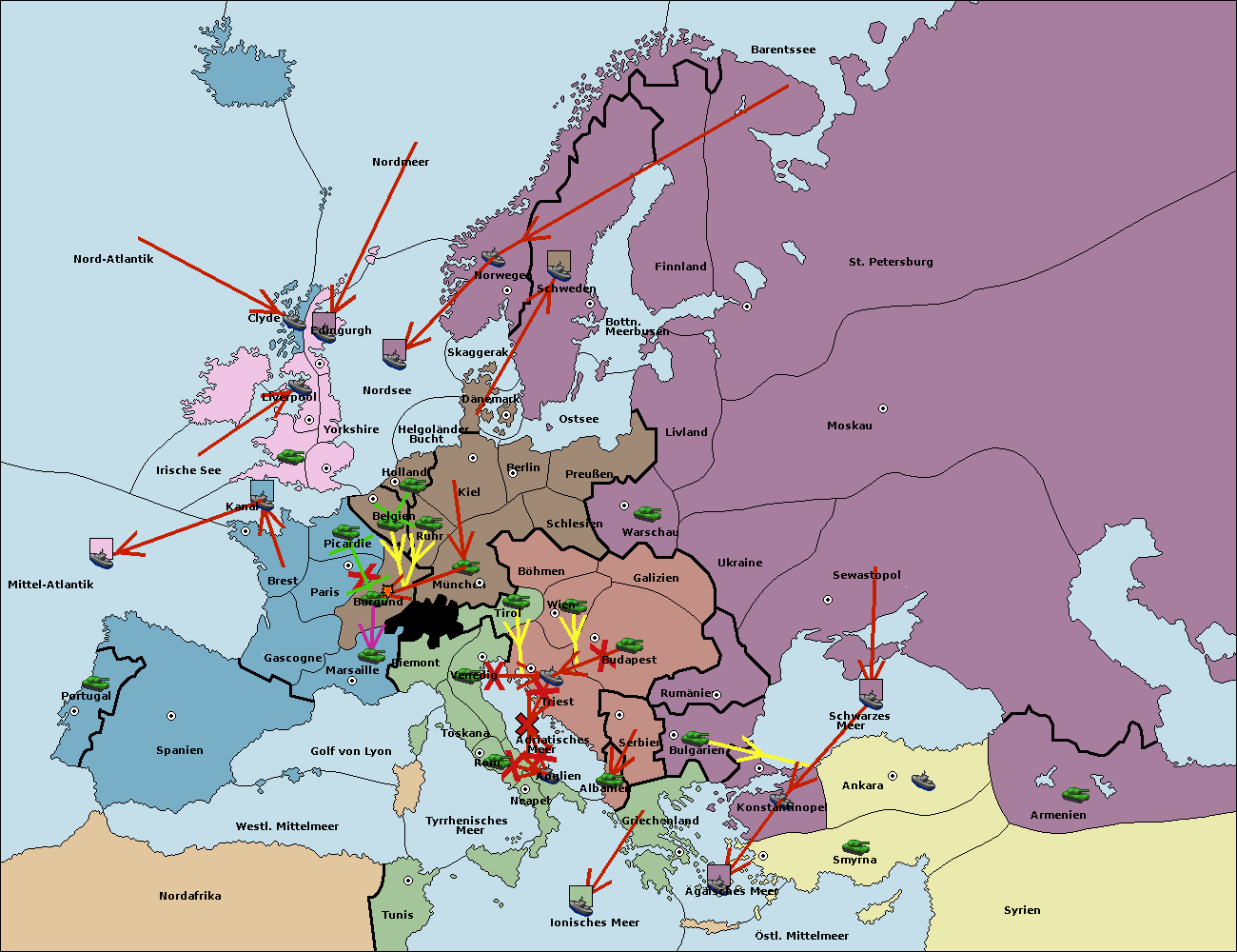 • Die Armee in Wien support move nach Triest von Budapest.