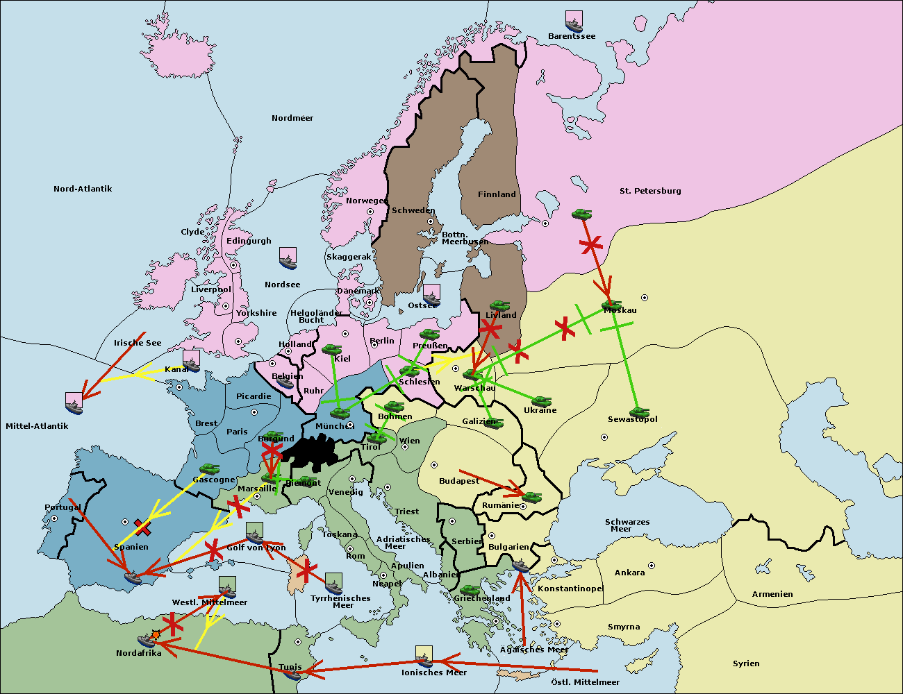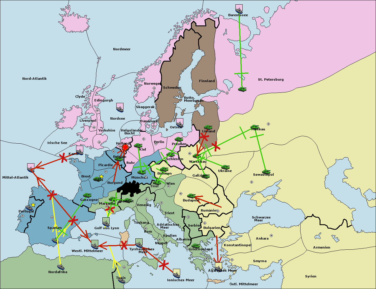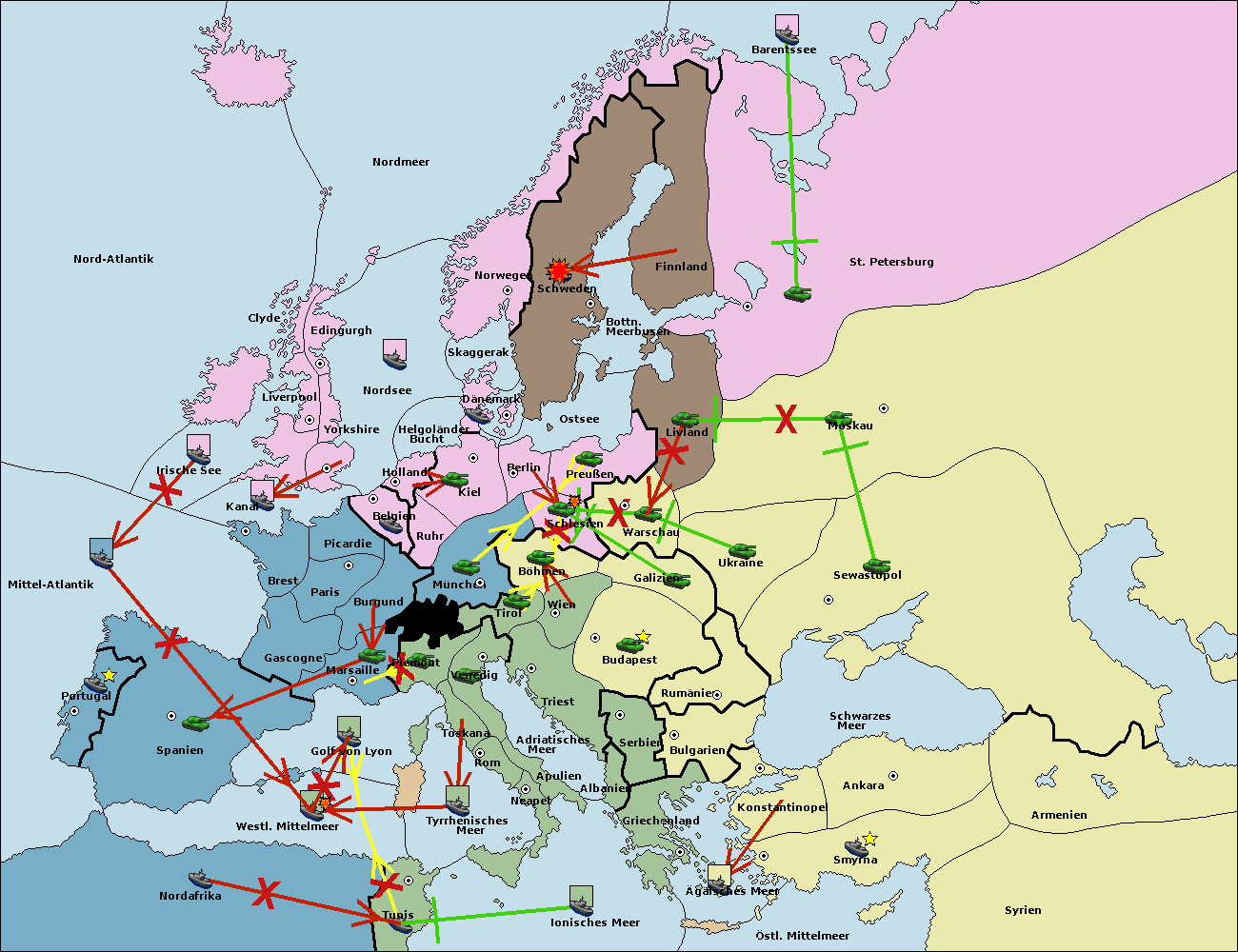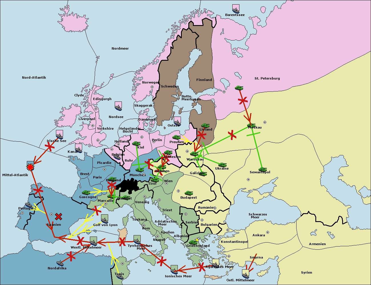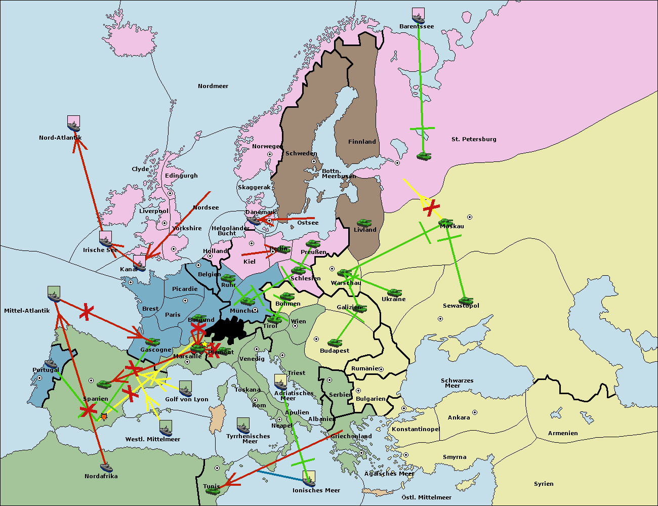 • Die Flotte in Spanien (Südküste) support move nach Marseille von Burgund. (gescheitert) (verdrängt)