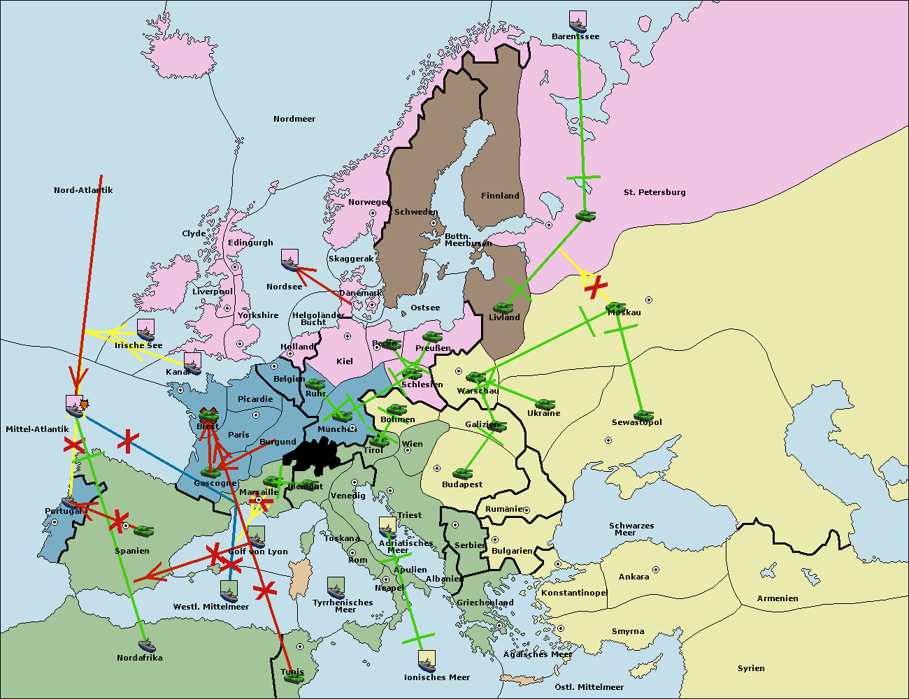 • Die Flotte in Spanien (Südküste) support move nach westl. Mittelmeer von Mittel-Atlantik. (gescheitert)