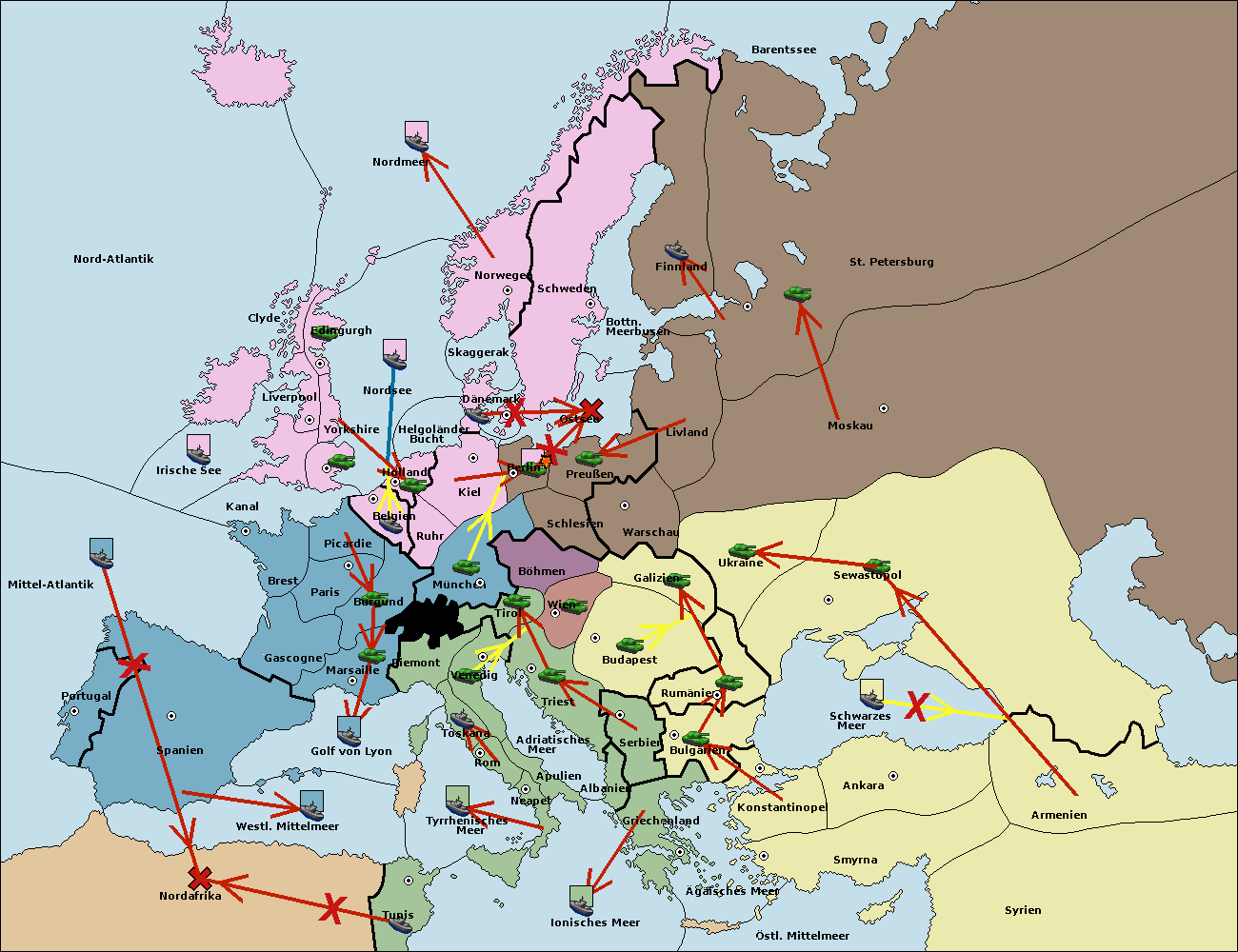 • Die Armee in Marseille support move nach Gascogne von Tunis. (gescheitert)