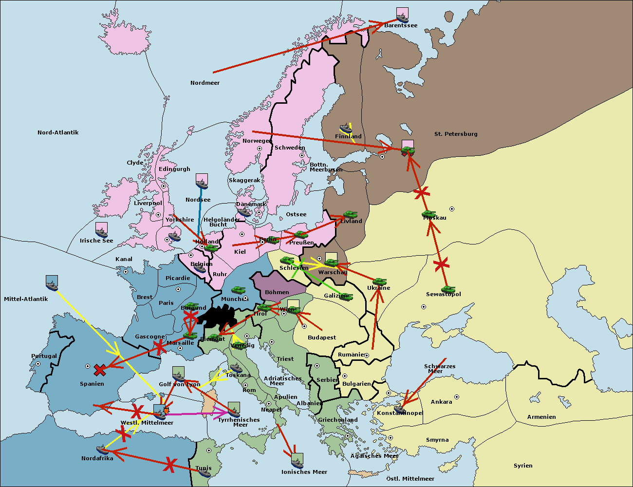 • Die Flotte in Tyrrhenisches Meer support hold nach westl. Mittelmeer.