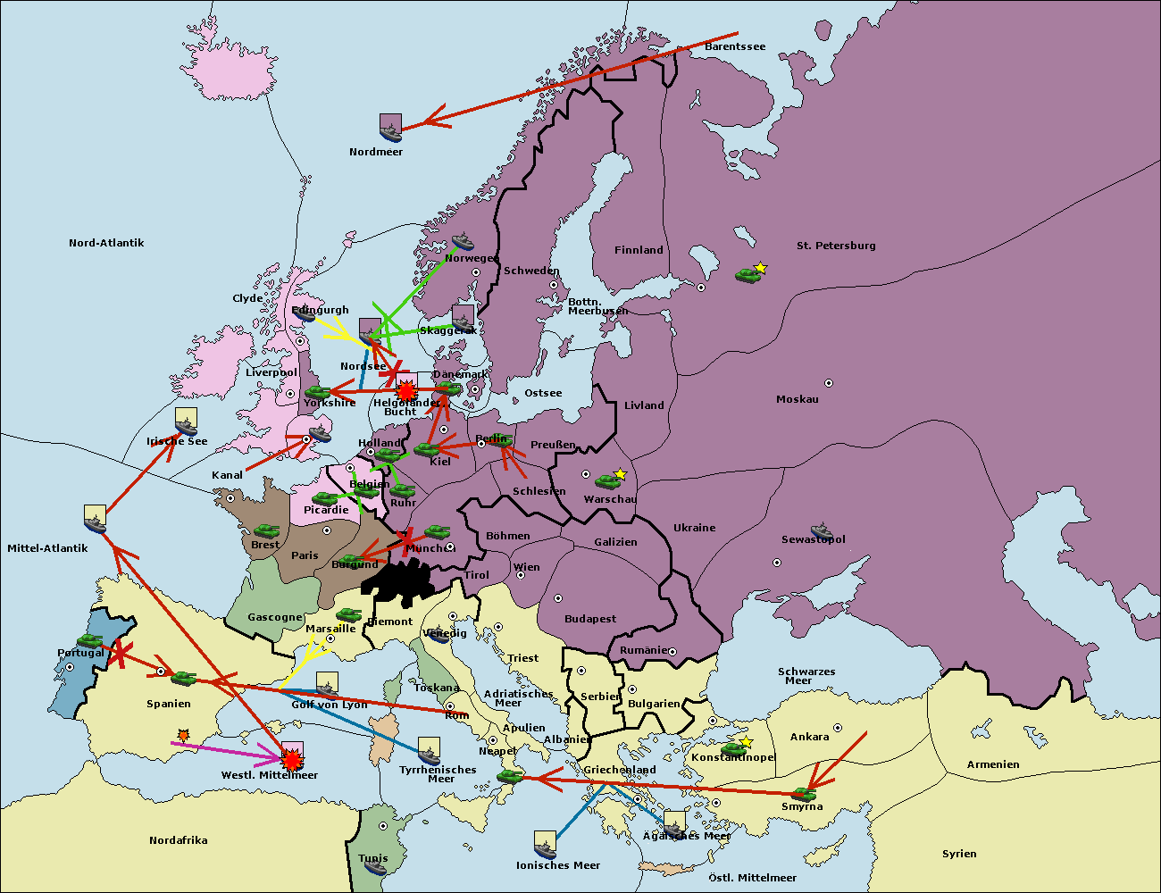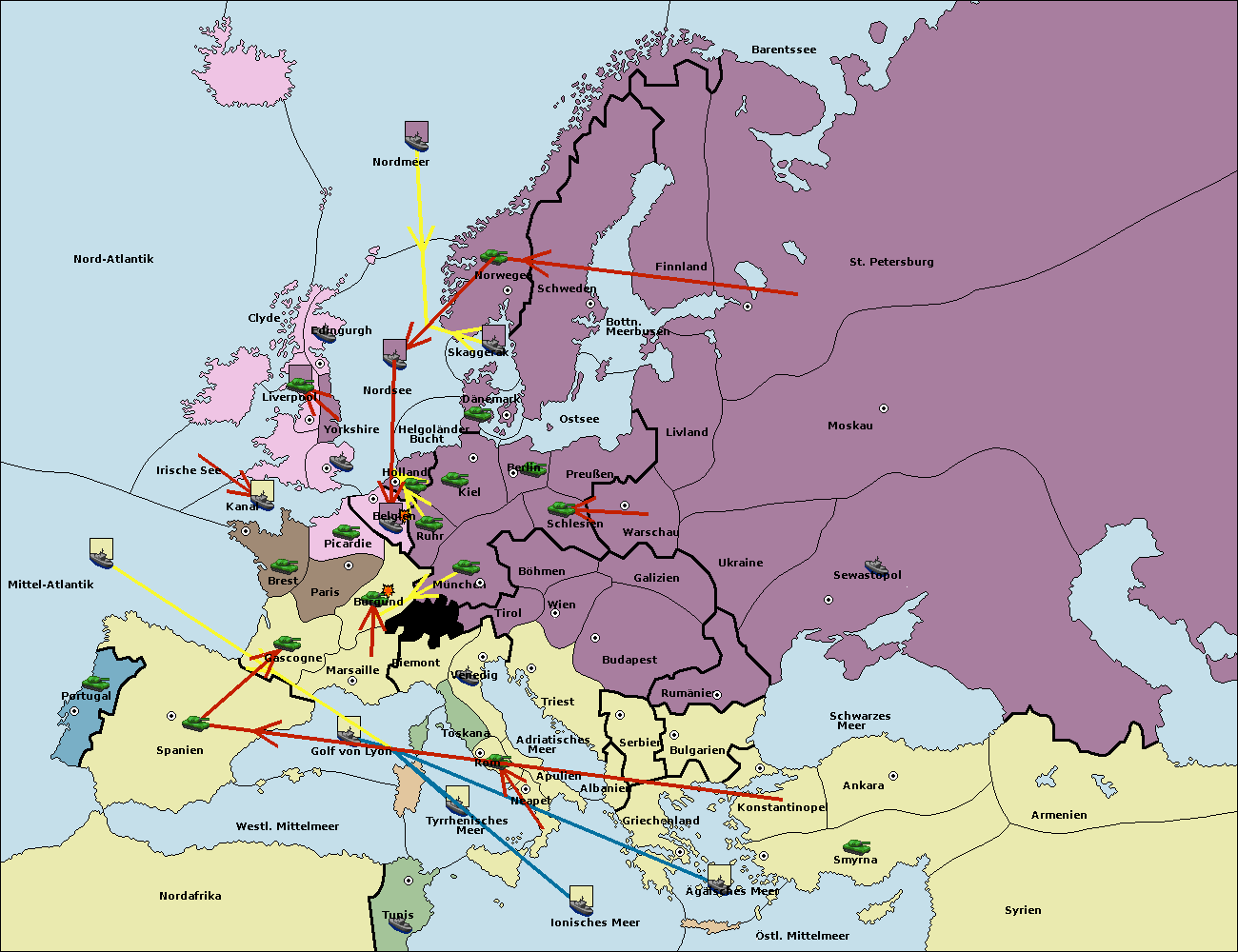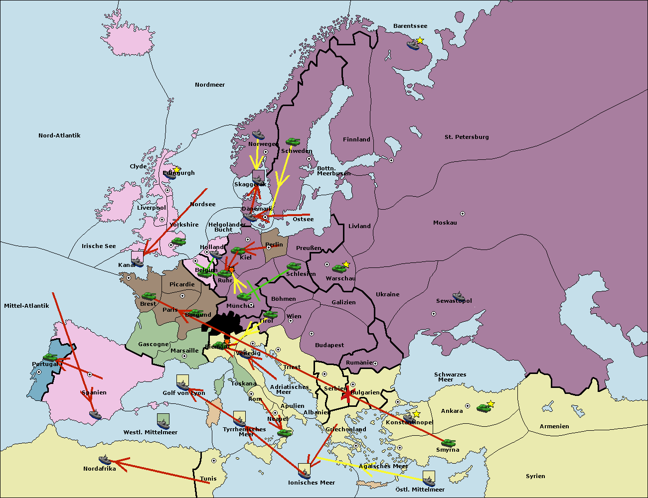 • Die Flotte in St. Petersburg (Nordküste) move nach Norwegen.