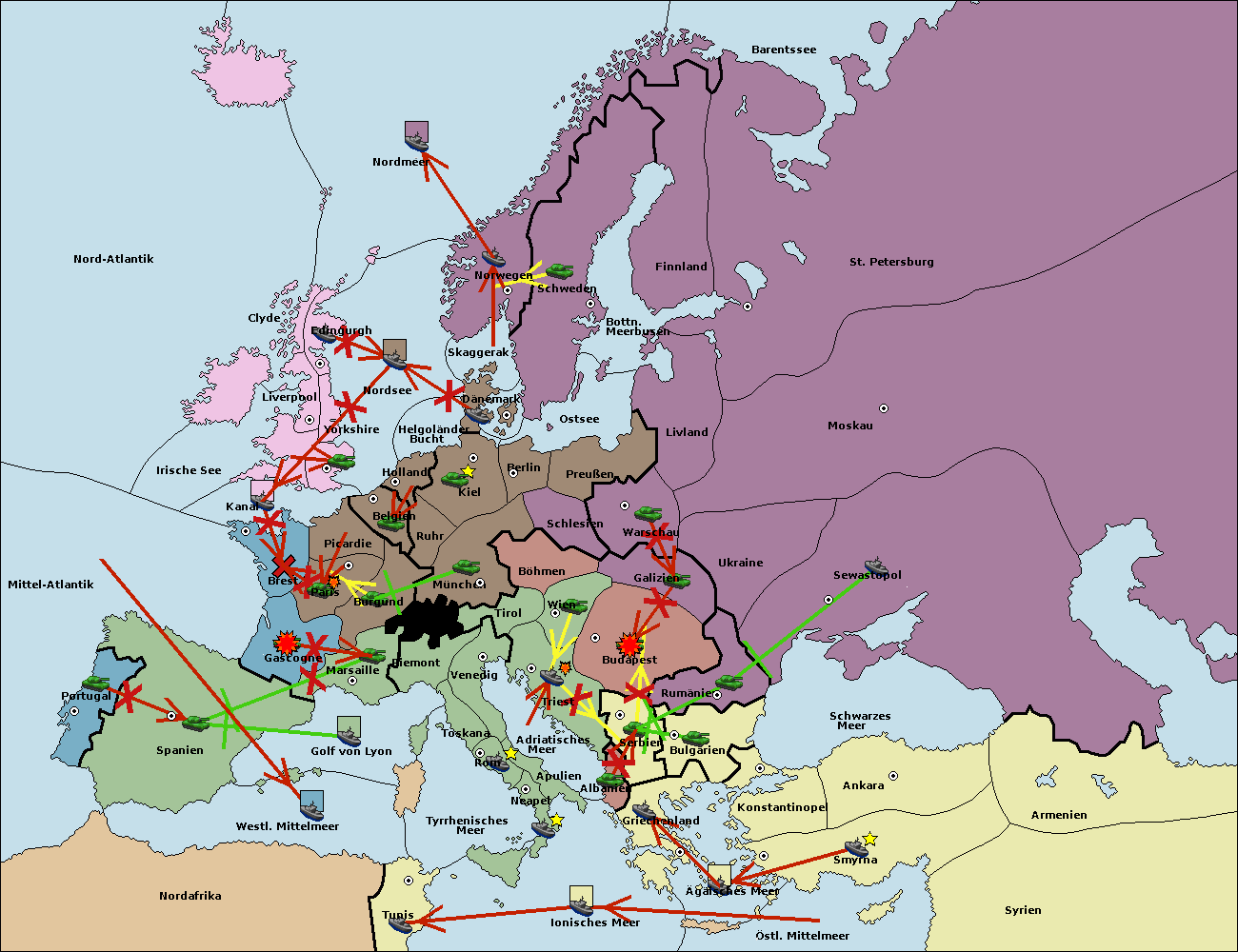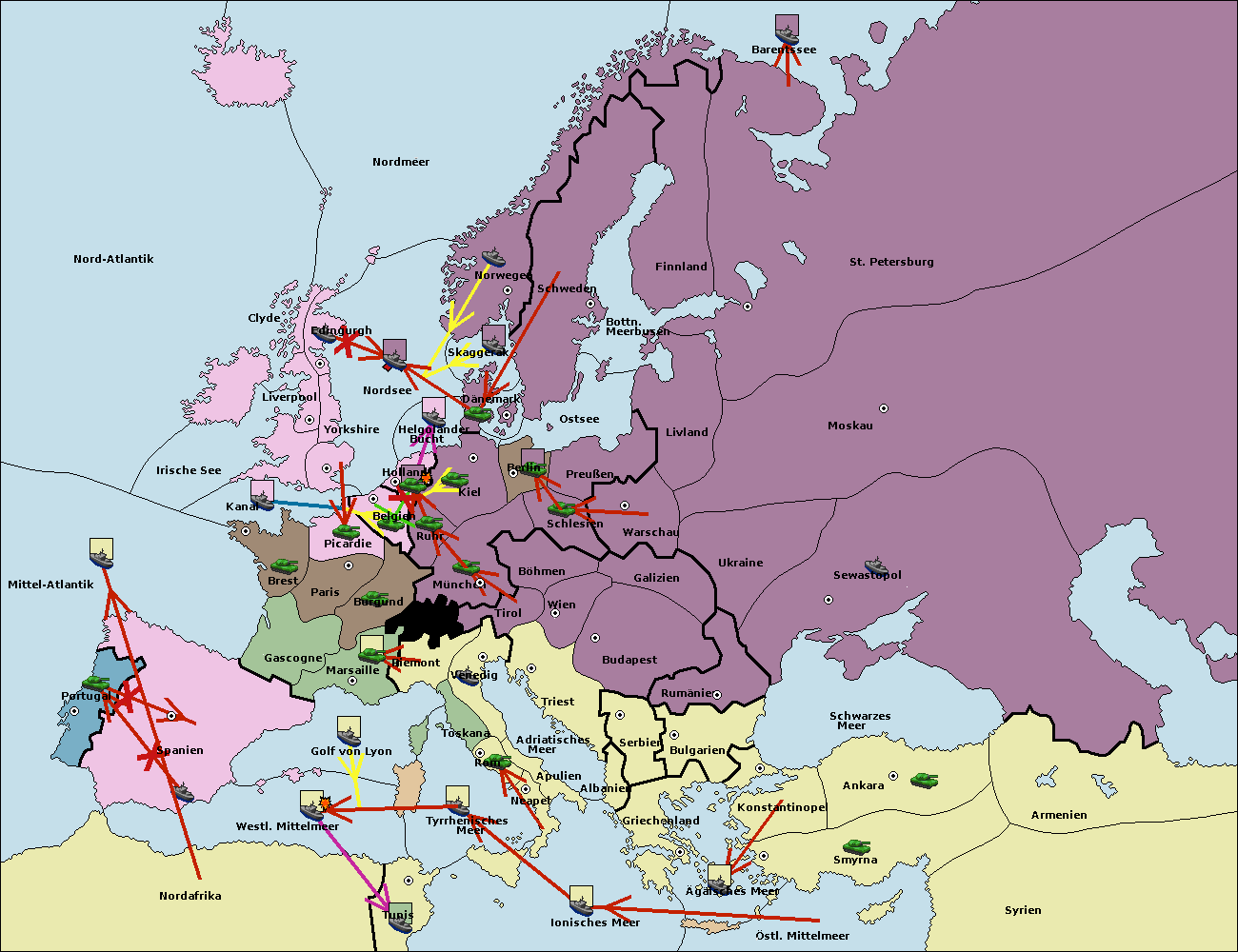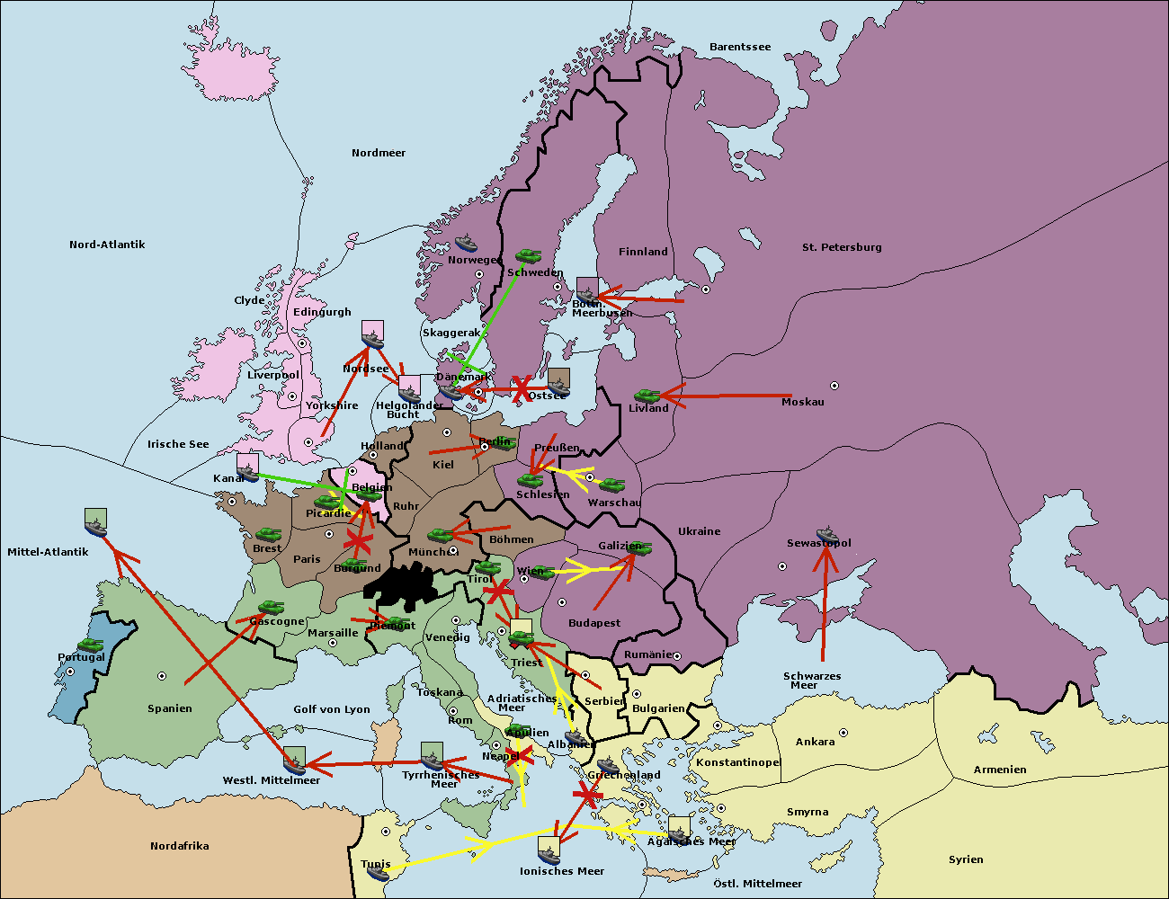 • Die Flotte in St. Petersburg (Nordküste) move nach Norwegen.