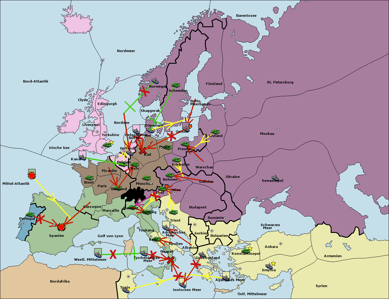 • Die Flotte in Portugal move nach Spanien (Südküste). (gescheitert)