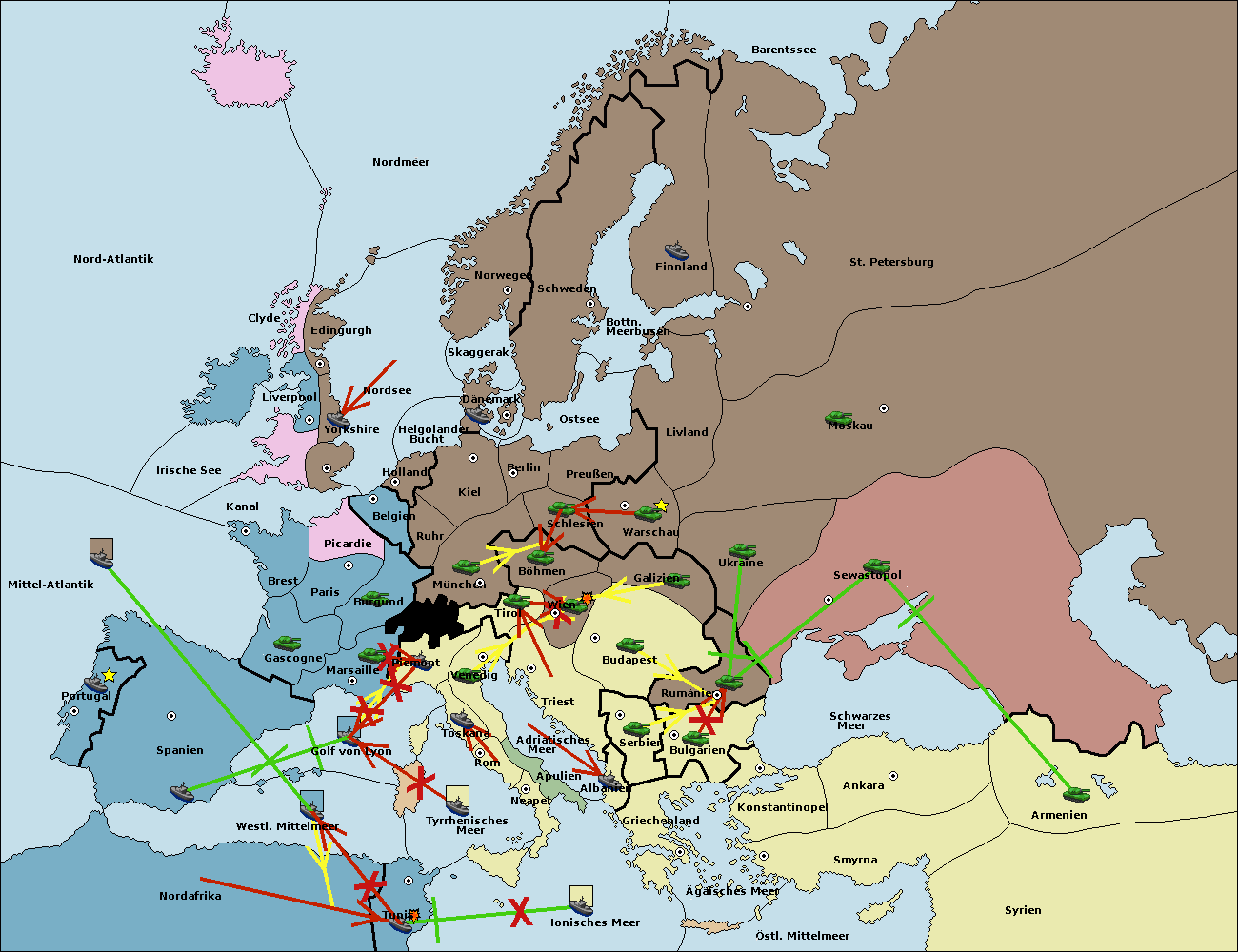 • Die Armee in Konstantinopel support hold nach Bulgarien.
