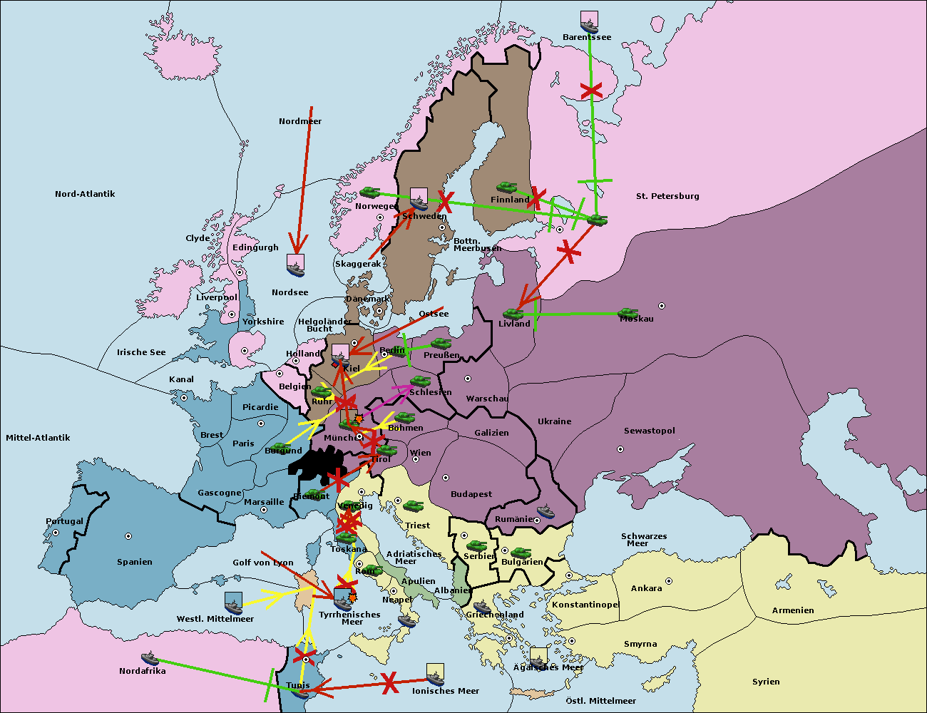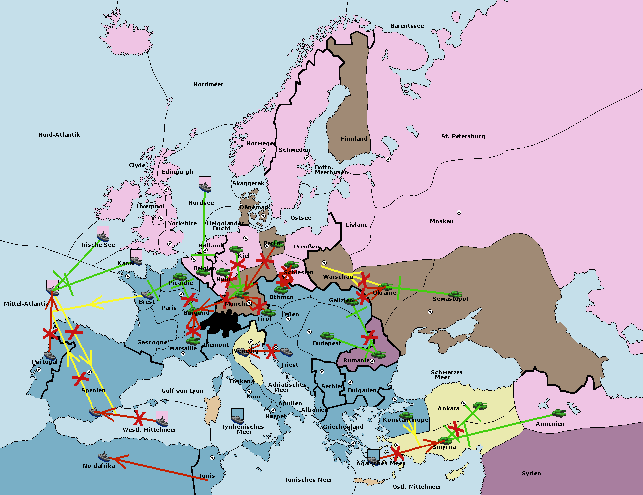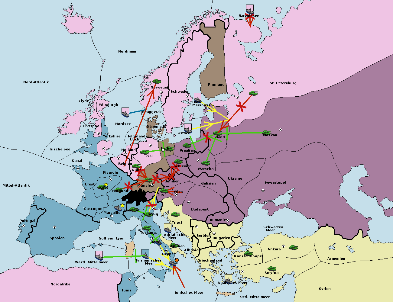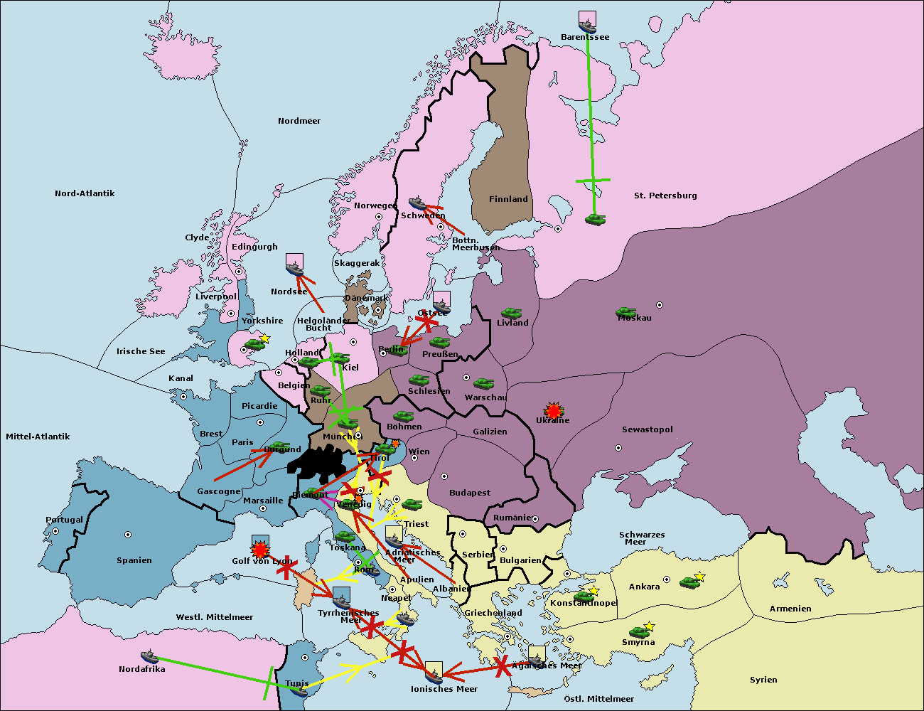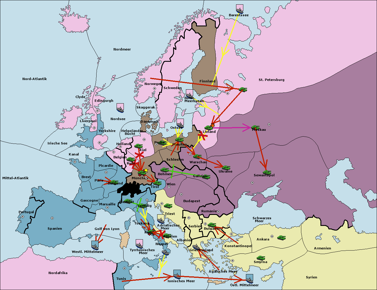 • Die Flotte in Bulgarien (Südküste) move nach Griechenland.