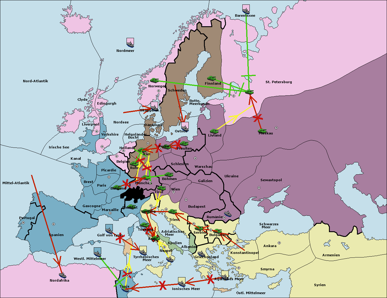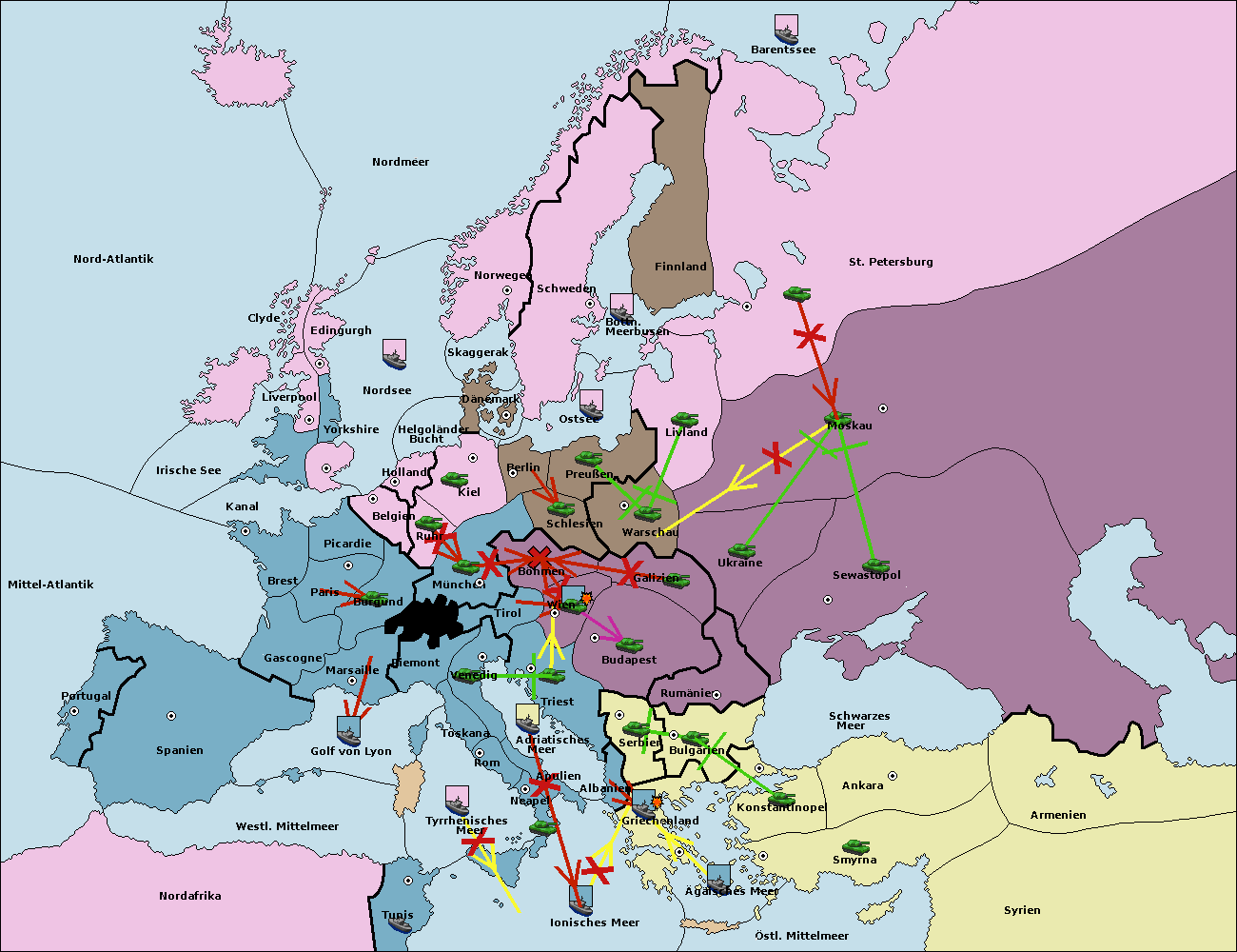 • Die Armee in Warschau support move nach Moskau von St. Petersburg.