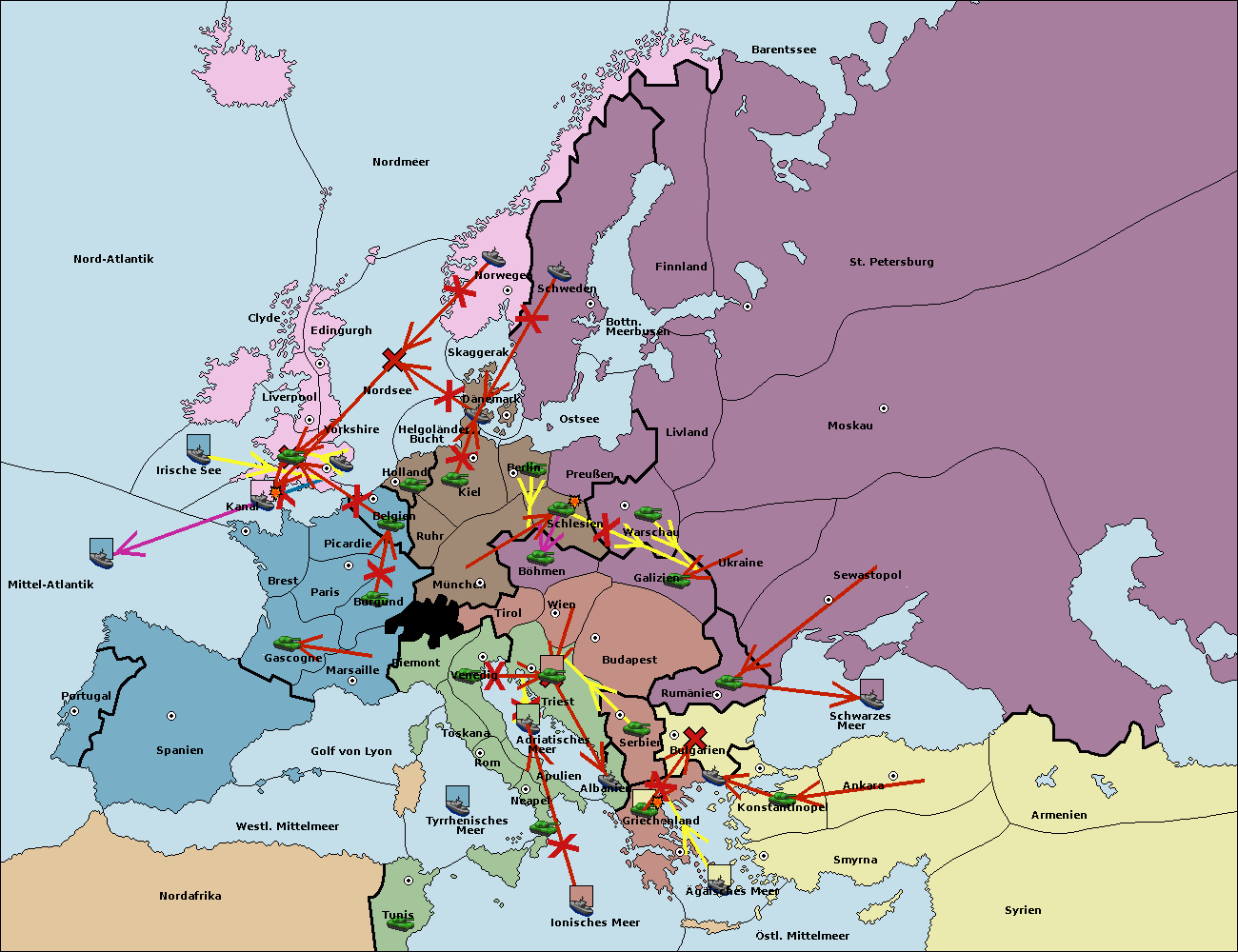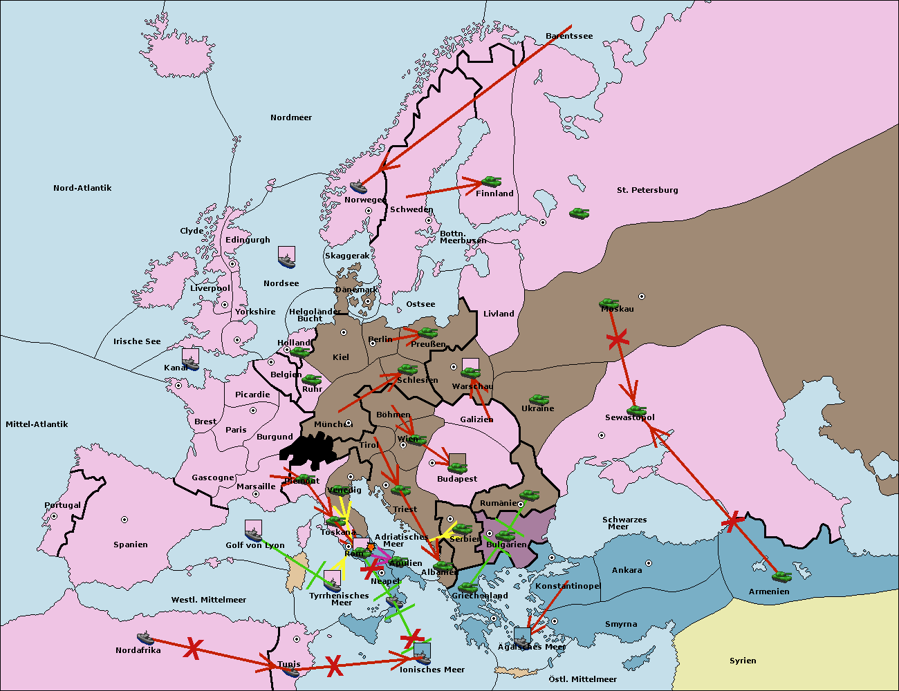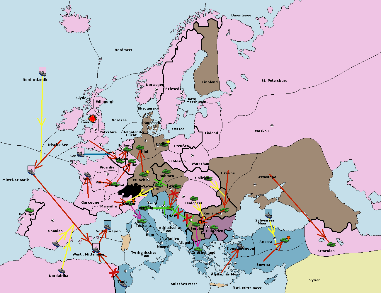 • Die Armee in Bulgarien wird zerstörtFlotte in Bulgarien gebaut.