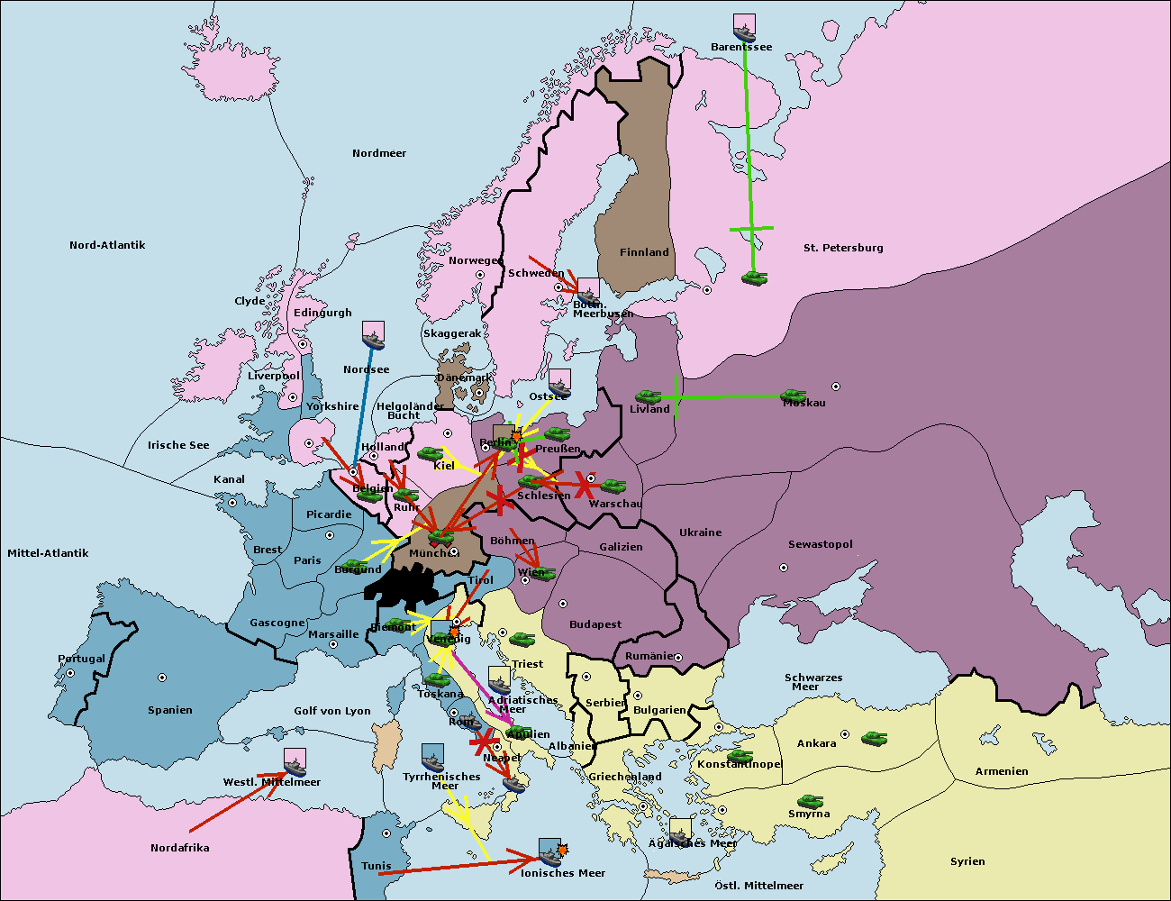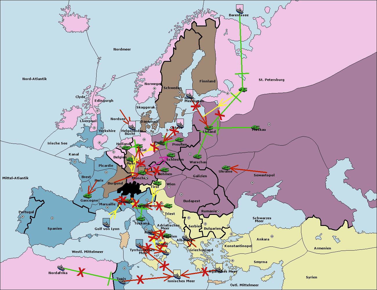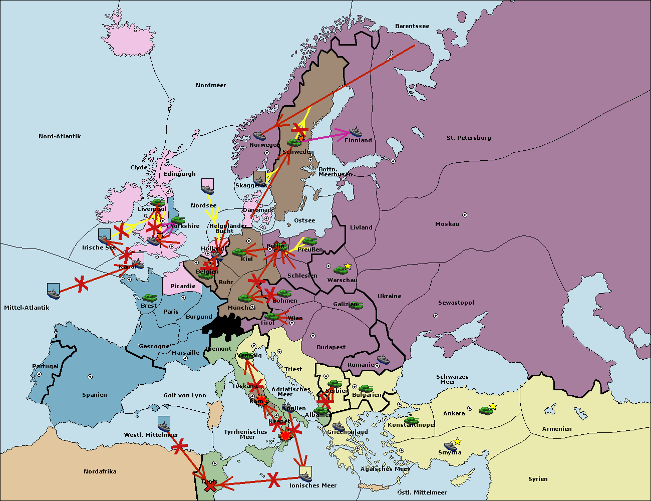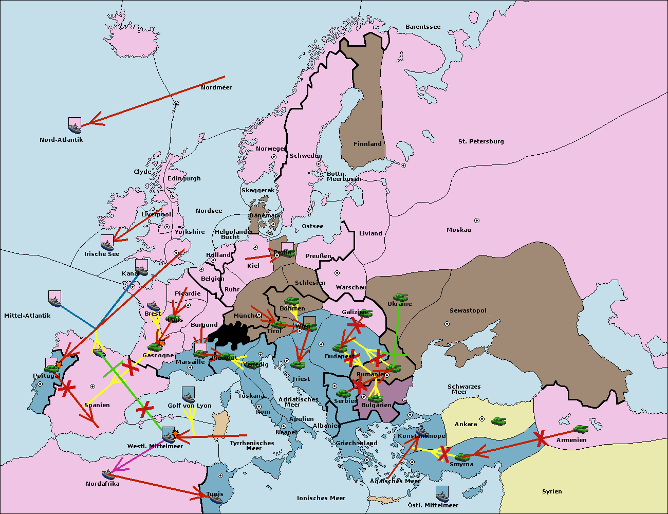 • Die Armee in Bulgarien wird zerstörtFlotte in Bulgarien gebaut.
