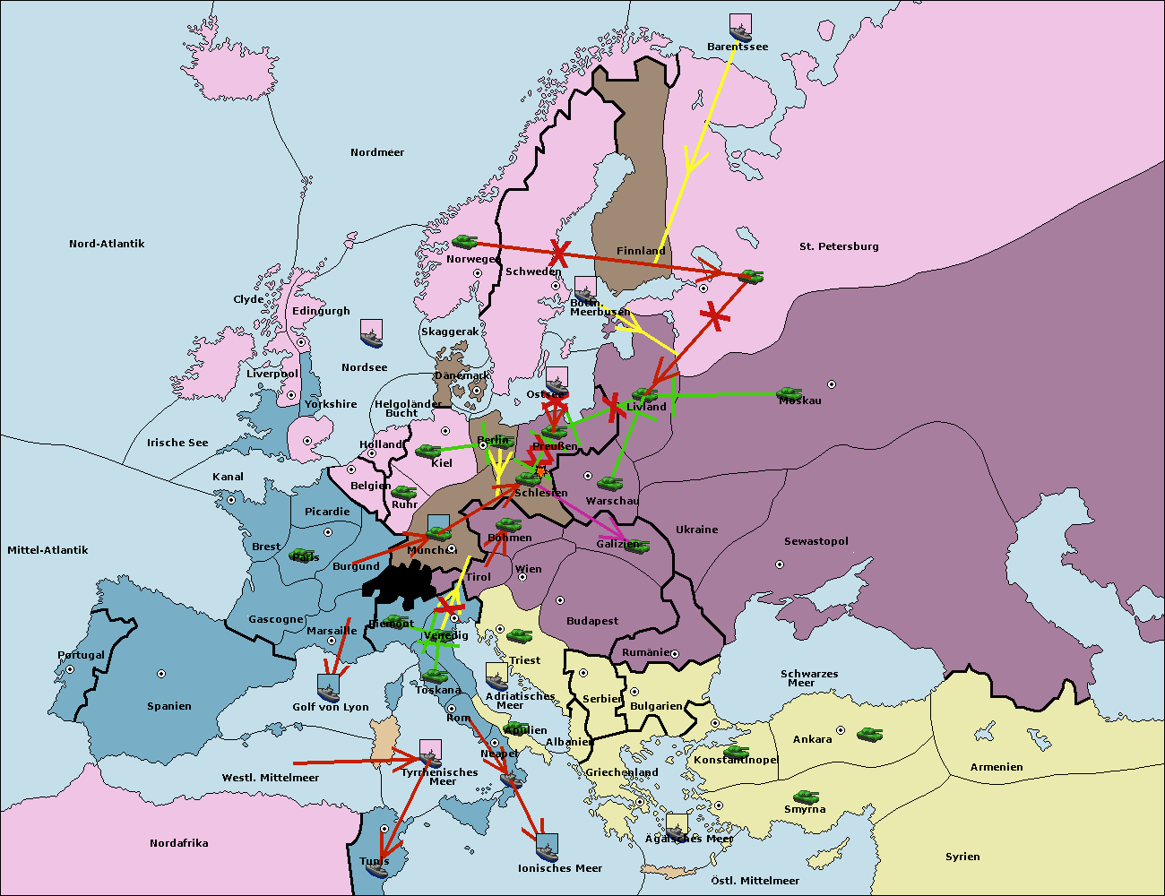 • Die Armee in Burgund support move nach München von Schlesien. (gescheitert)