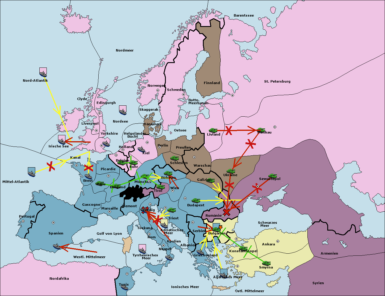• Die Flotte in Rumänien support hold nach Bulgarien. (gescheitert)
