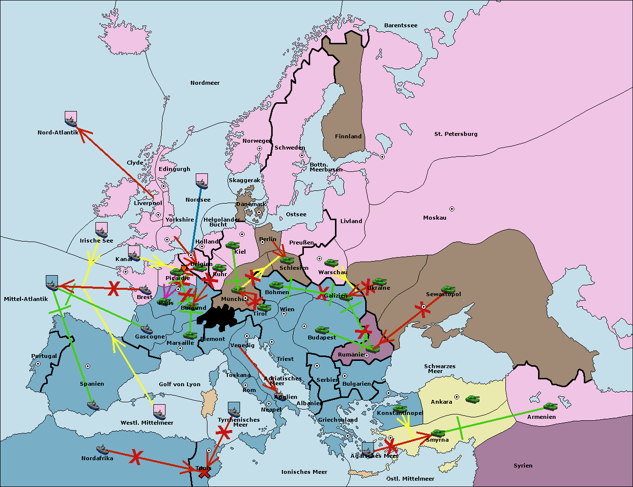 • Die Flotte in Ägäisches Meer support move nach Bulgarien von Griechenland. (gescheitert)
