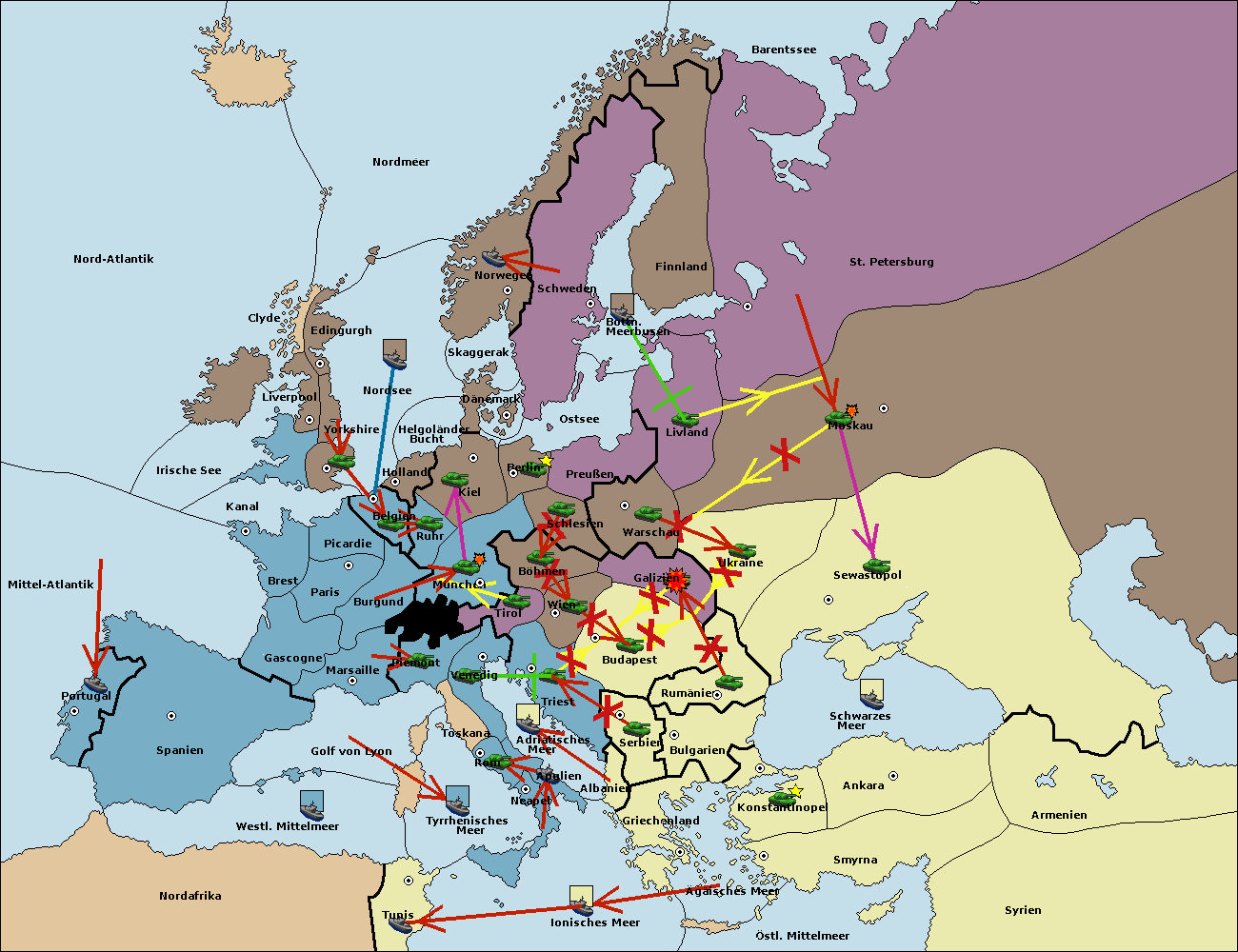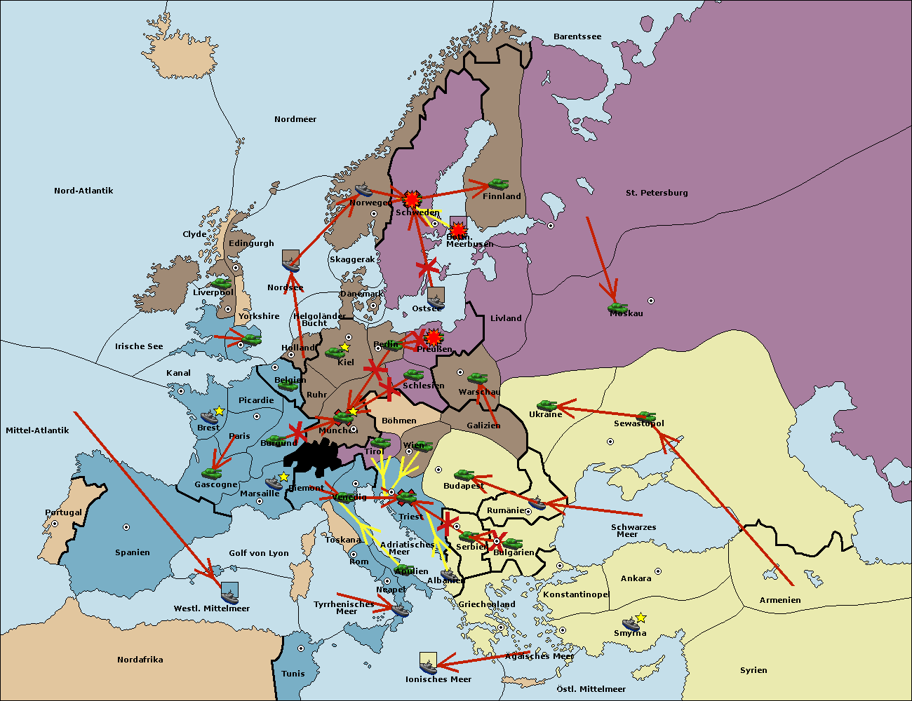 • Die Armee in München wird zerstörtFlotte in München gebaut.