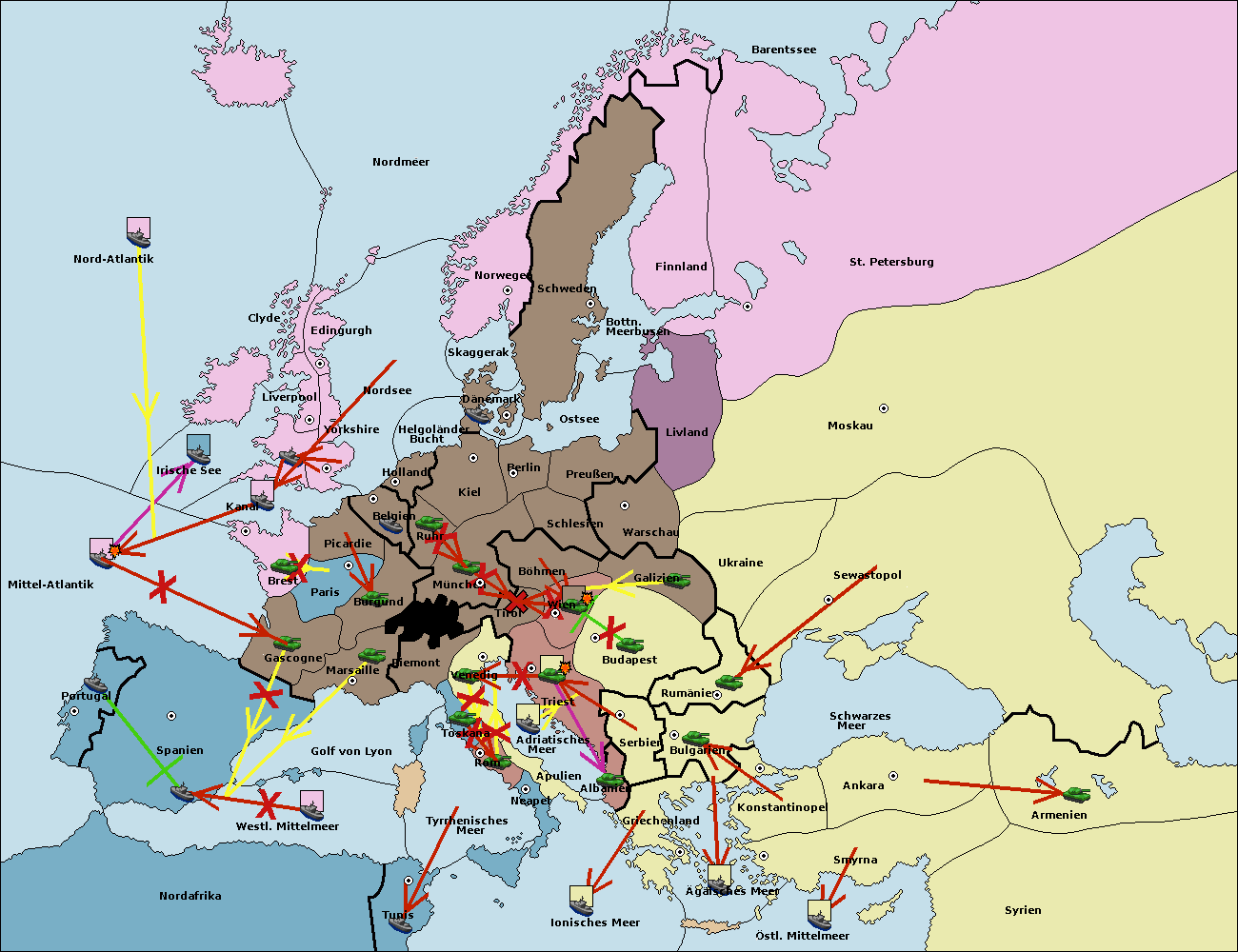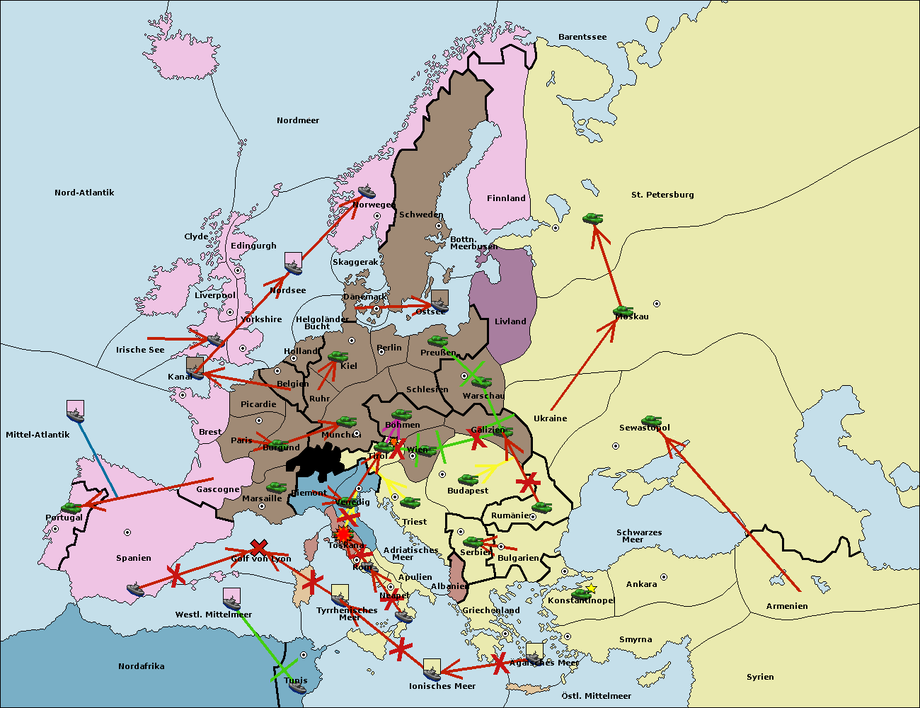 • Die Flotte in Spanien (Südküste) move nach westl. Mittelmeer. (gescheitert)