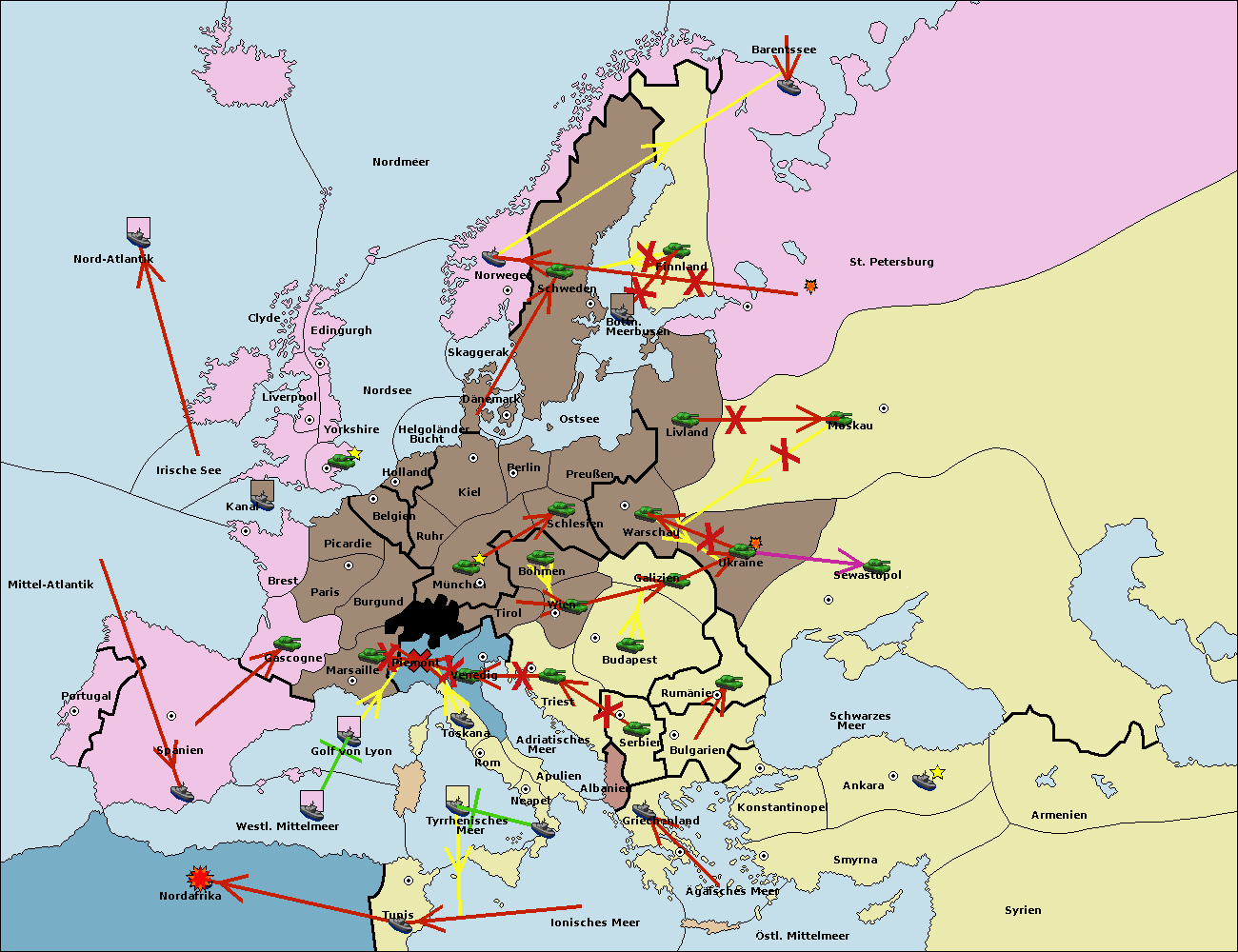 • Die Flotte in St. Petersburg (Nordküste) move nach Norwegen.