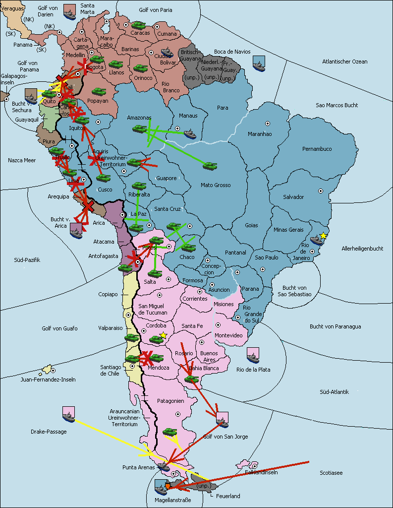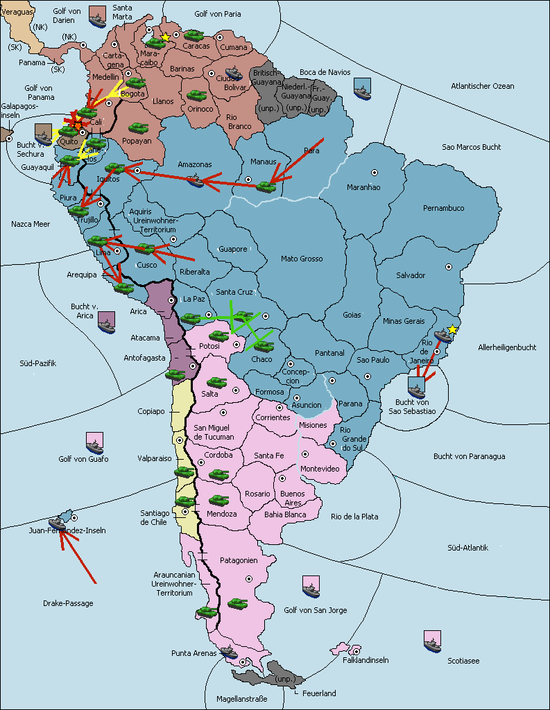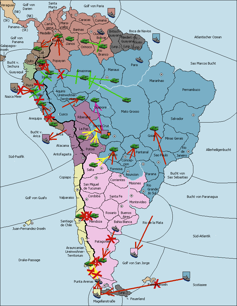 • Die Armee in Bogota move nach Cartagena. (gescheitert)
