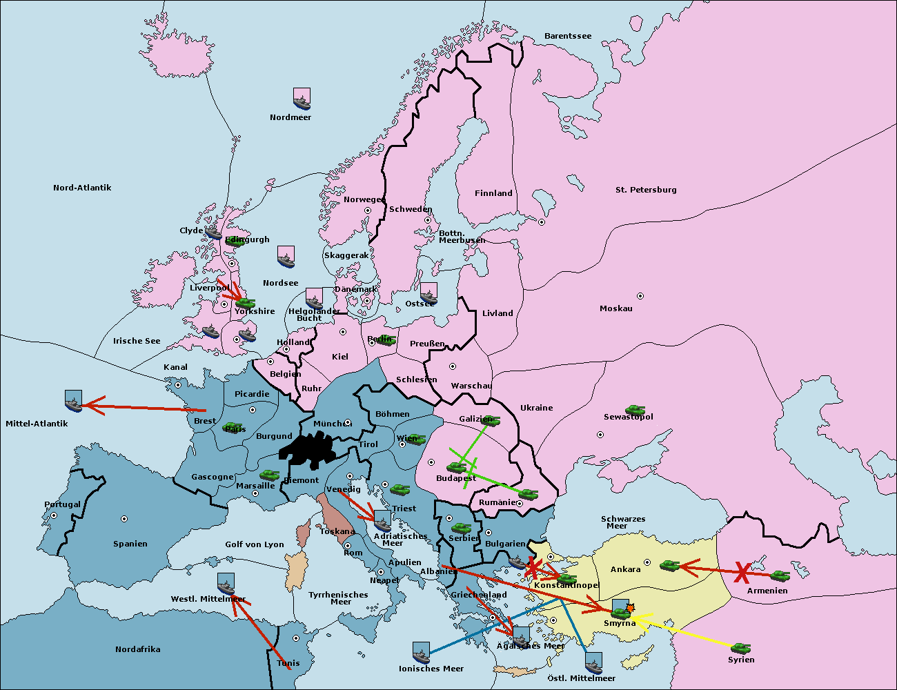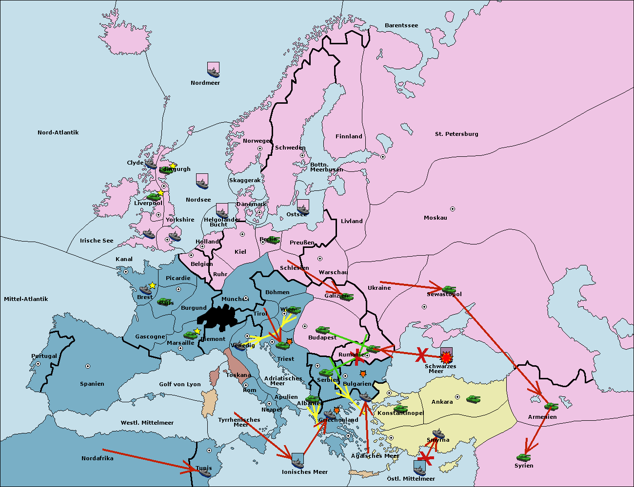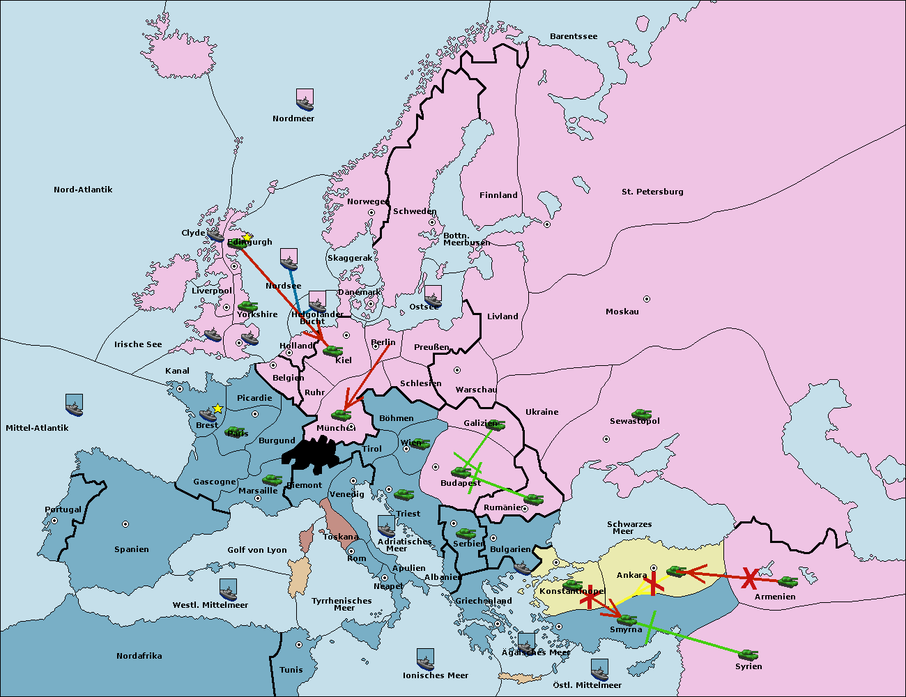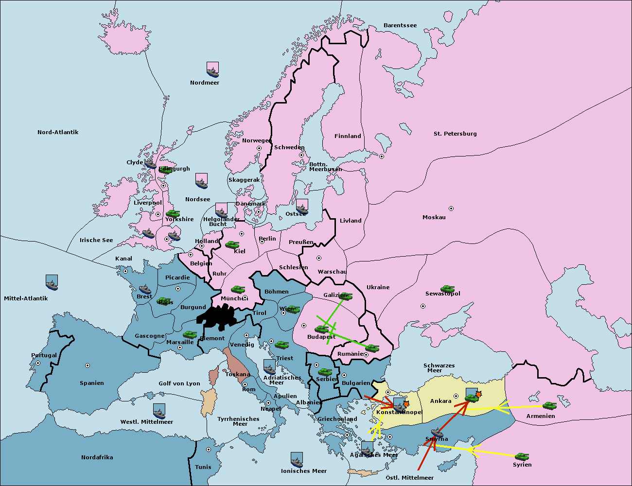• Die Flotte in Bulgarien (Südküste) move nach Konstantinopel. (gescheitert)