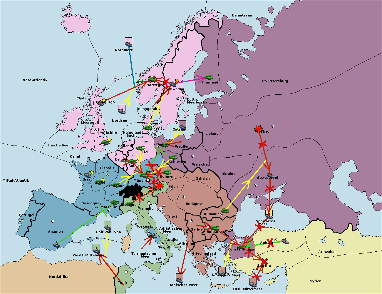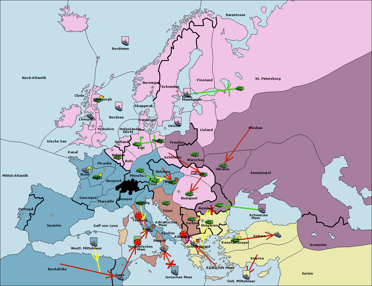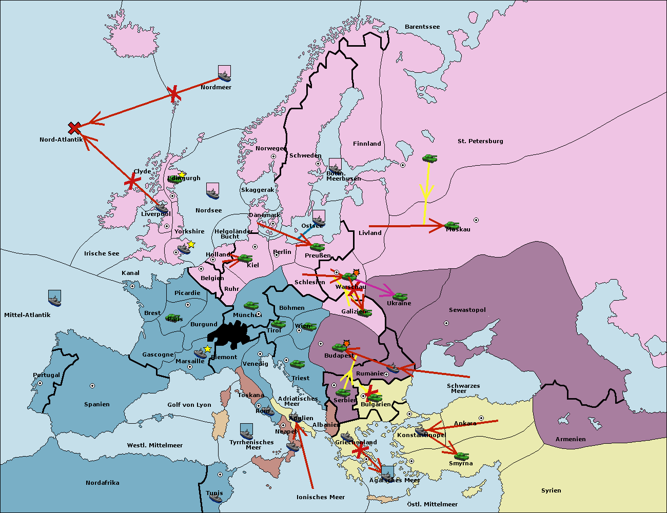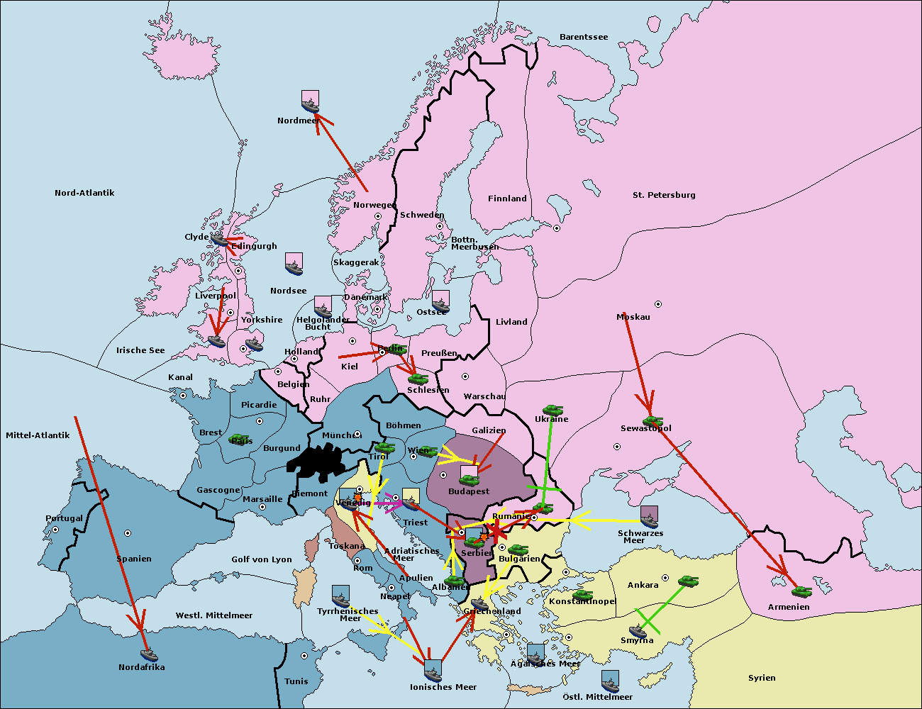 • Die Flotte in Bulgarien (Südküste) move nach Konstantinopel. (gescheitert)