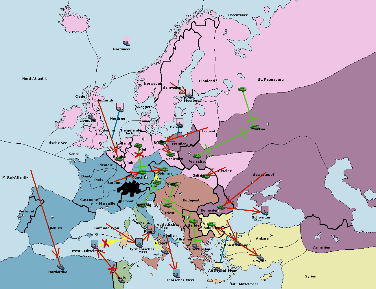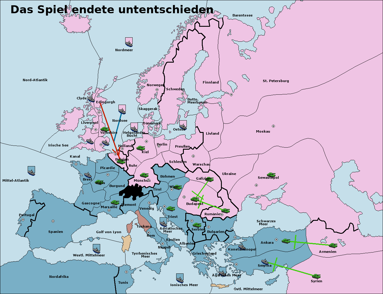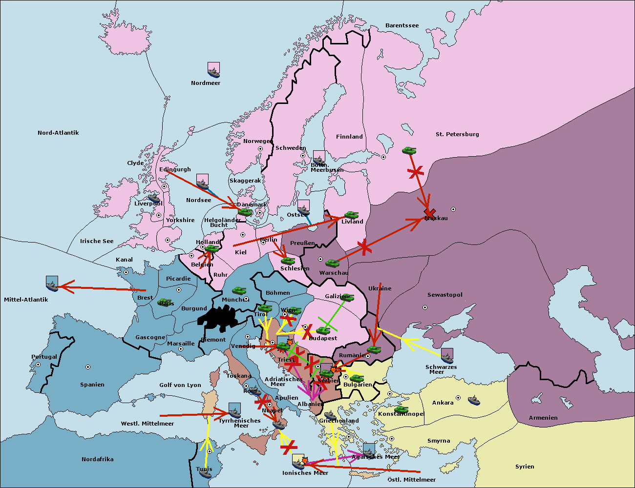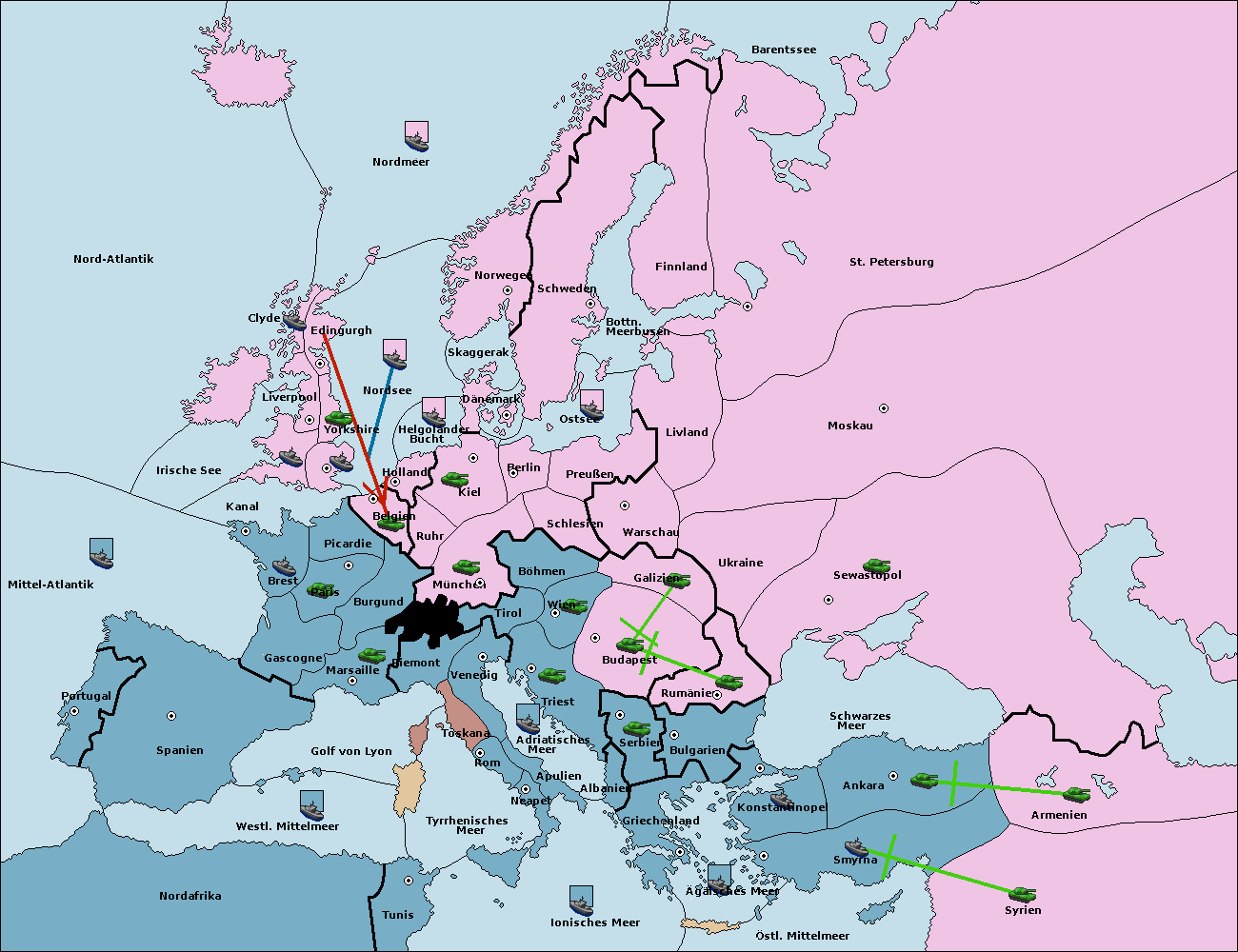 • Die Flotte in Bulgarien (Südküste) move nach Konstantinopel. (gescheitert)