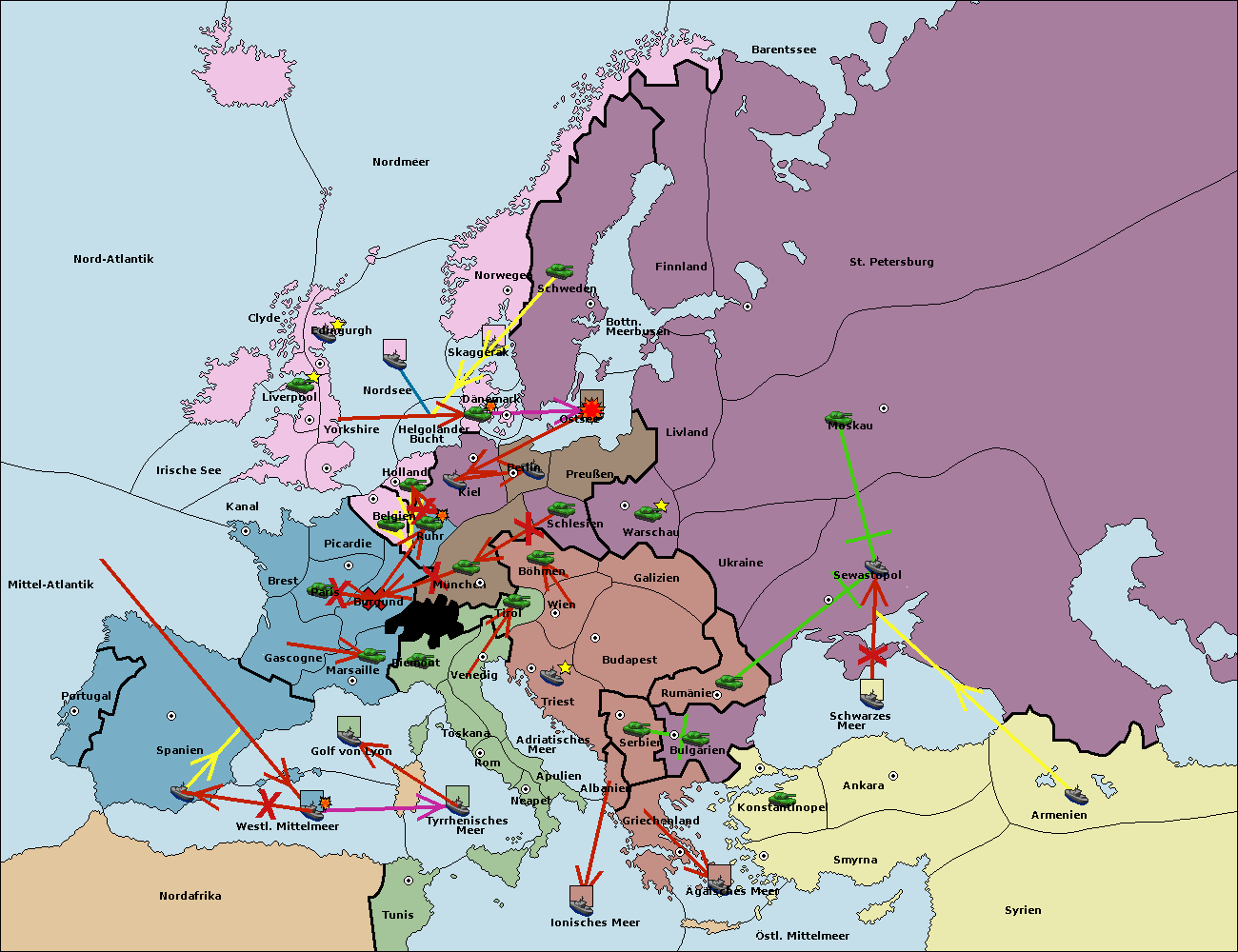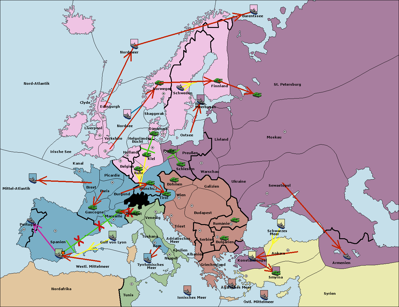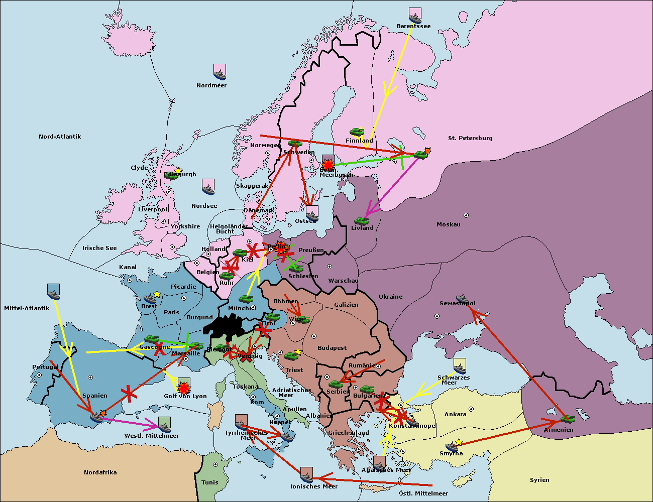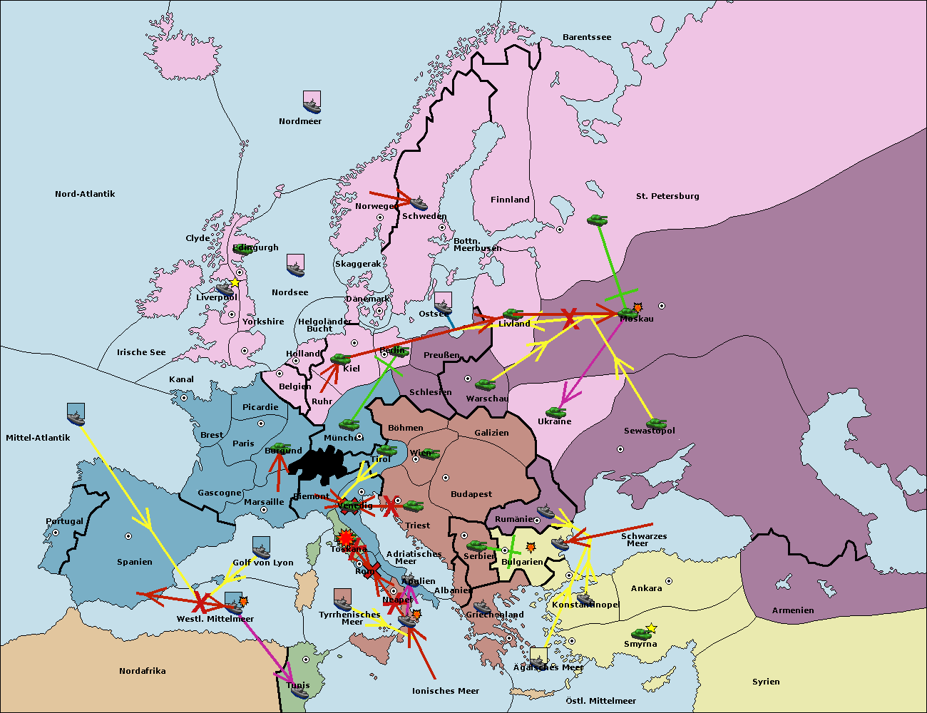 • Die Flotte in Bulgarien (Südküste) move nach Konstantinopel. (gescheitert)