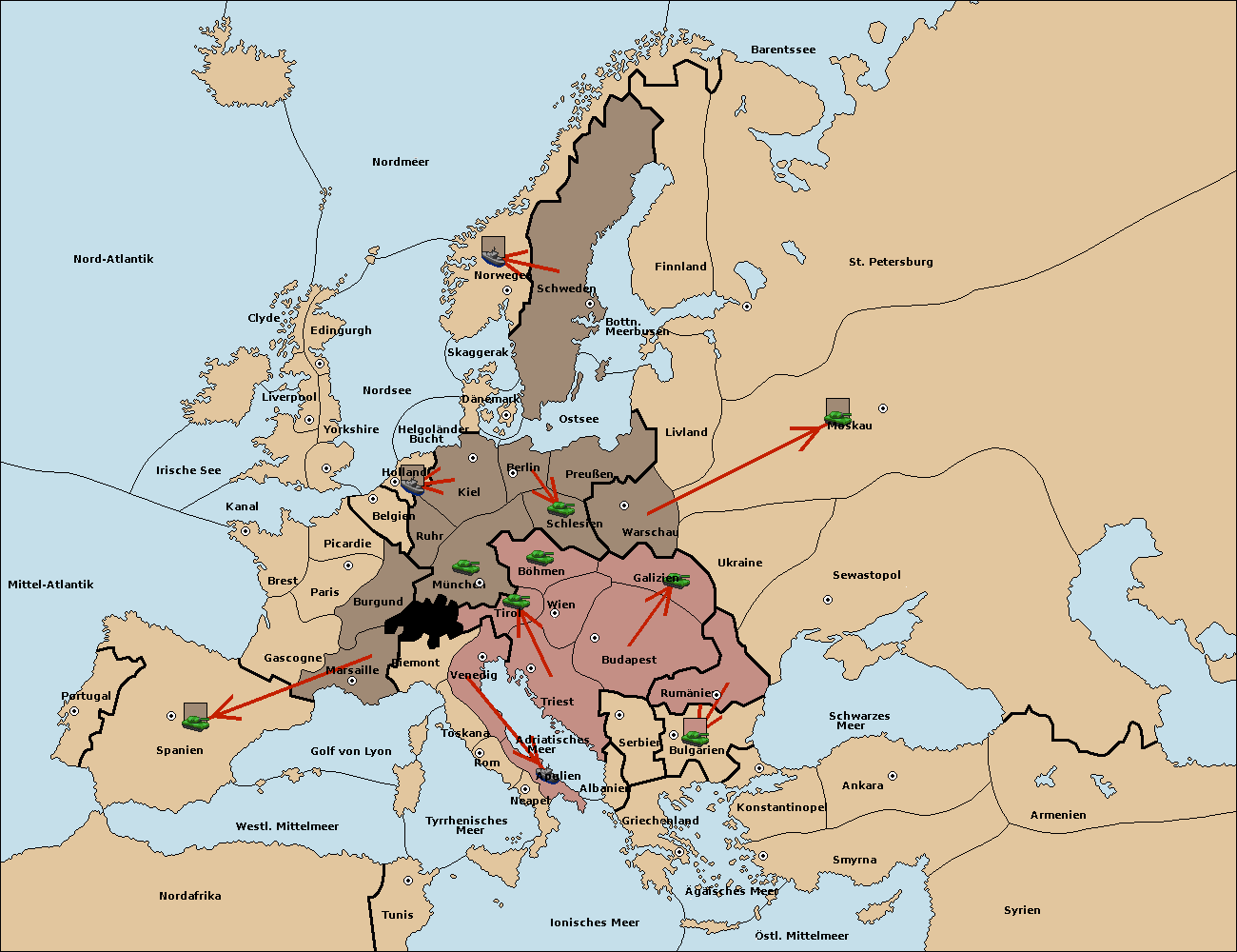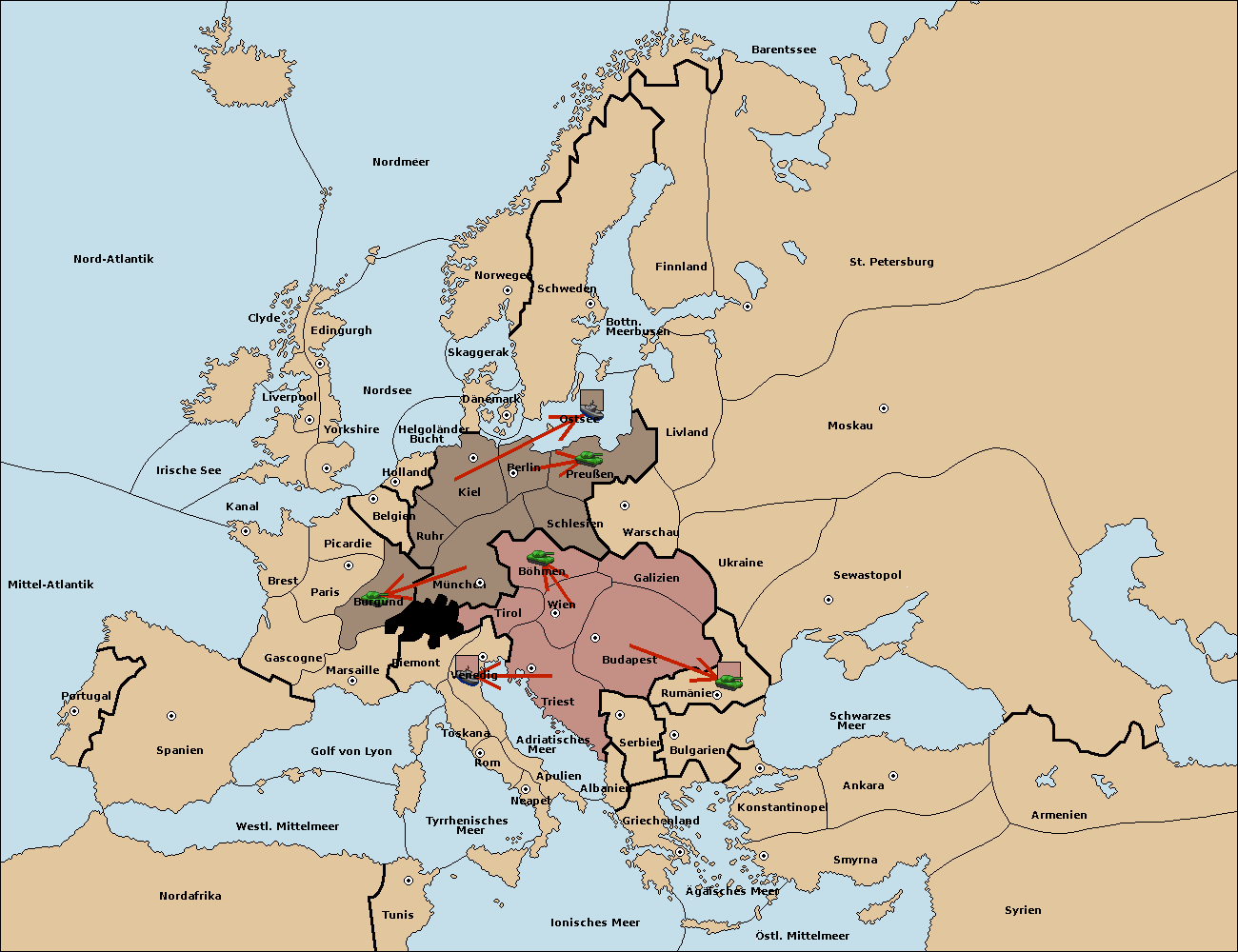 • Die Armee in Wien move nach Böhmen.