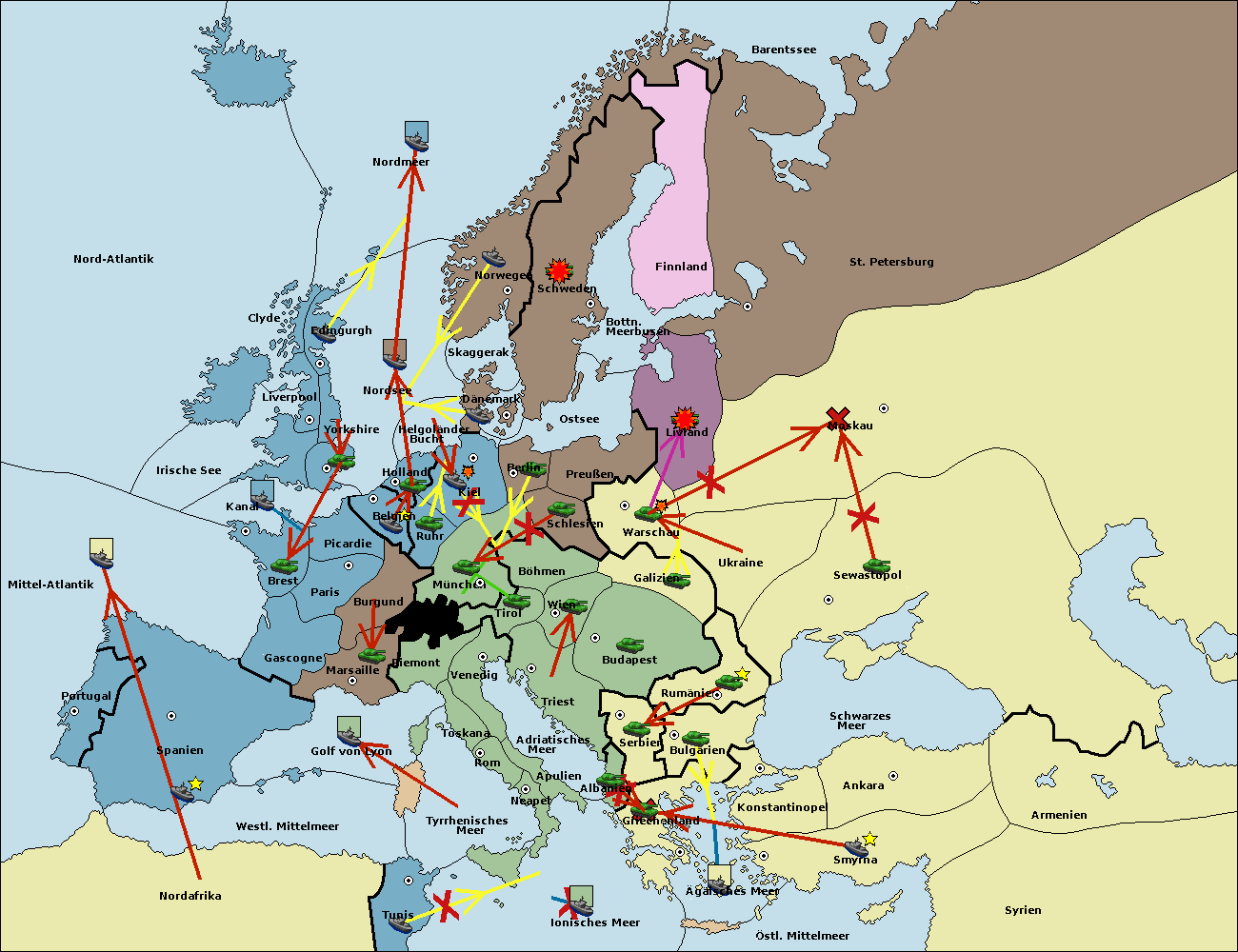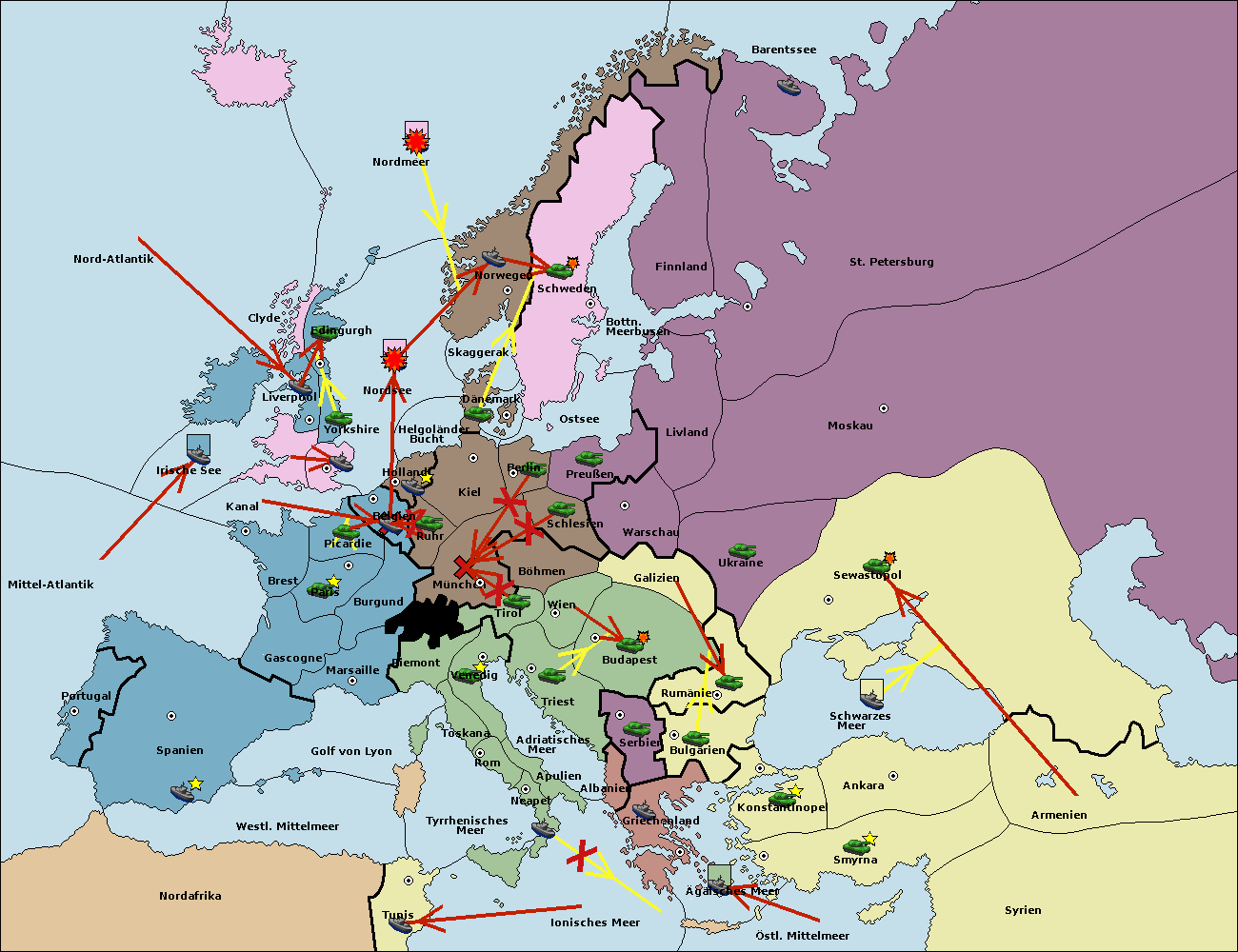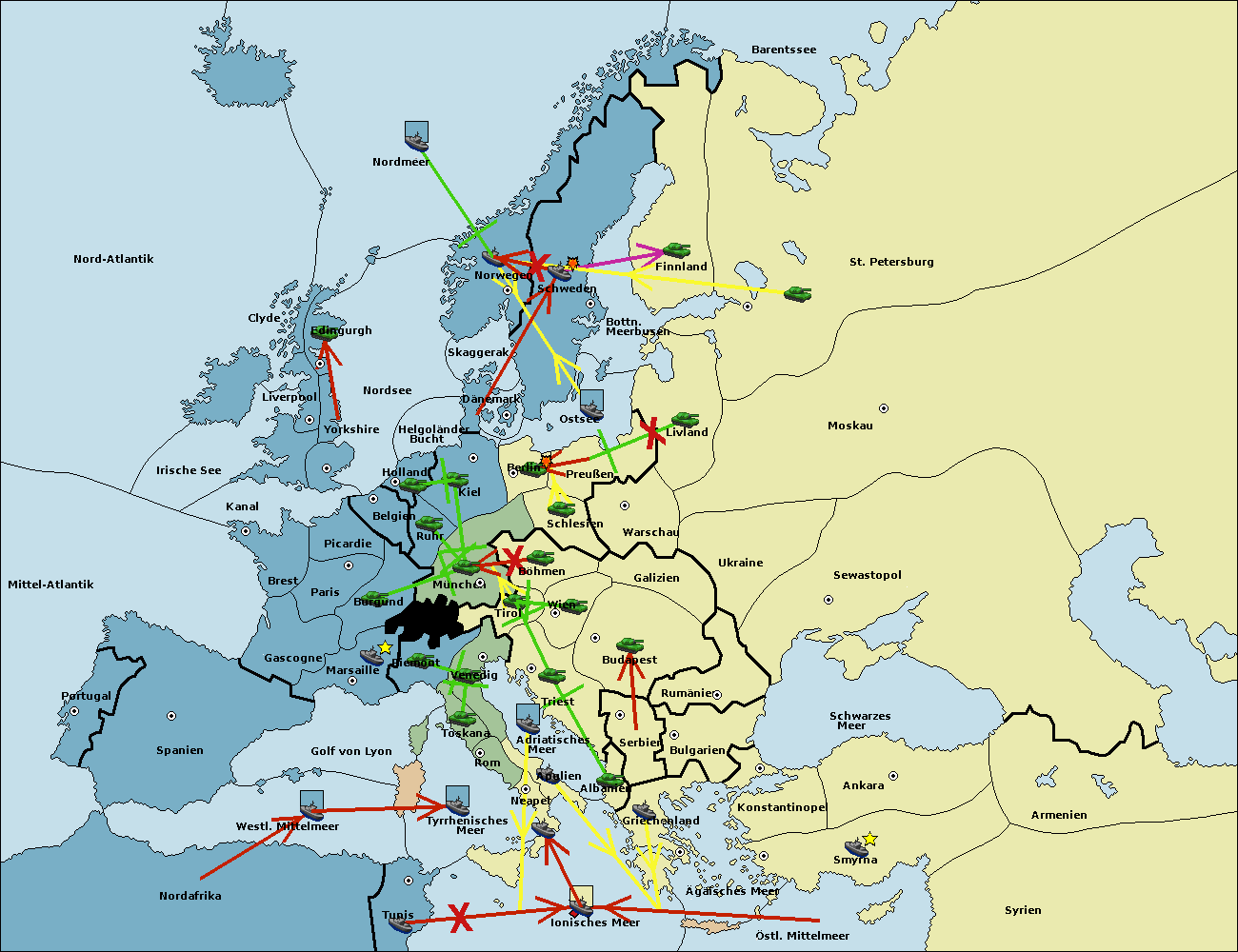 • Die Flotte in St. Petersburg (Nordküste) move nach Norwegen. (gescheitert)