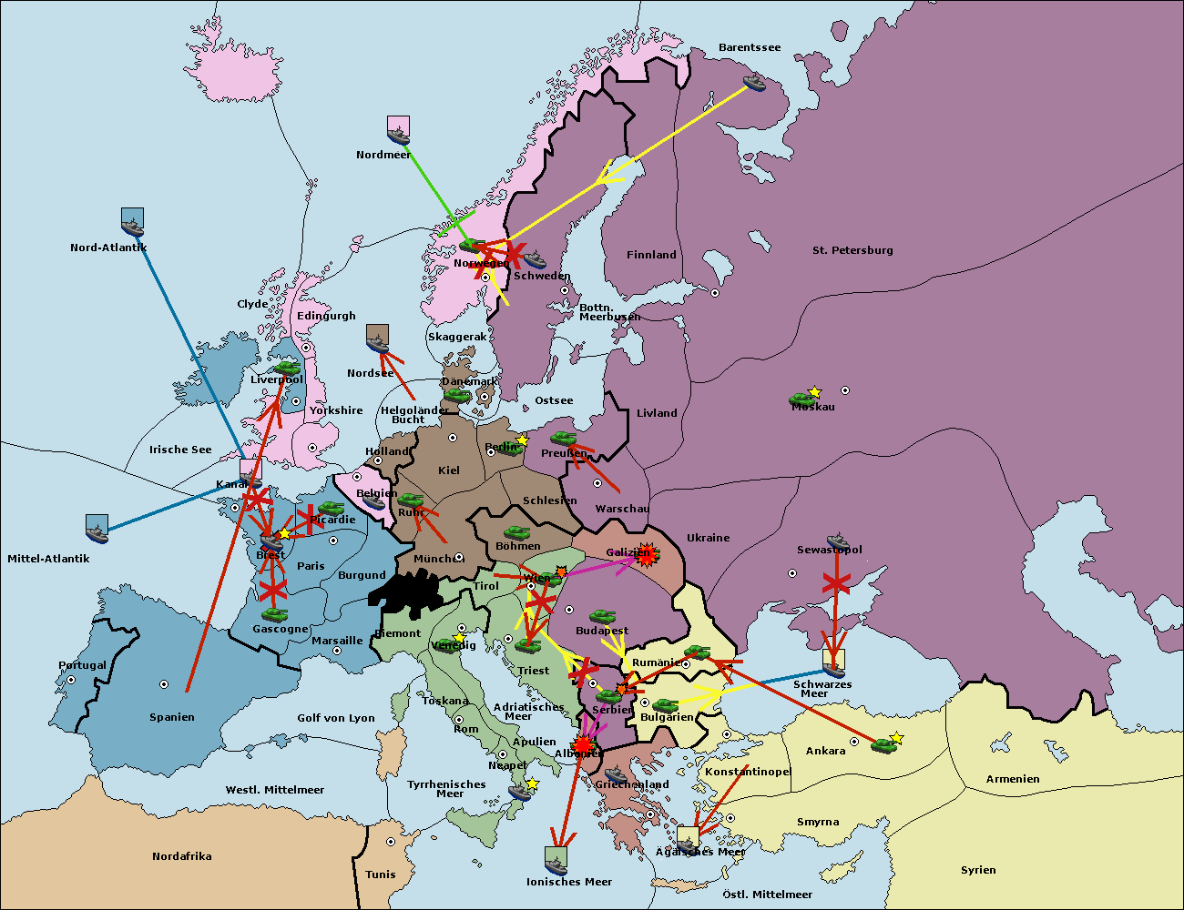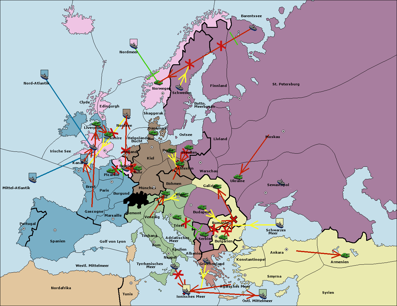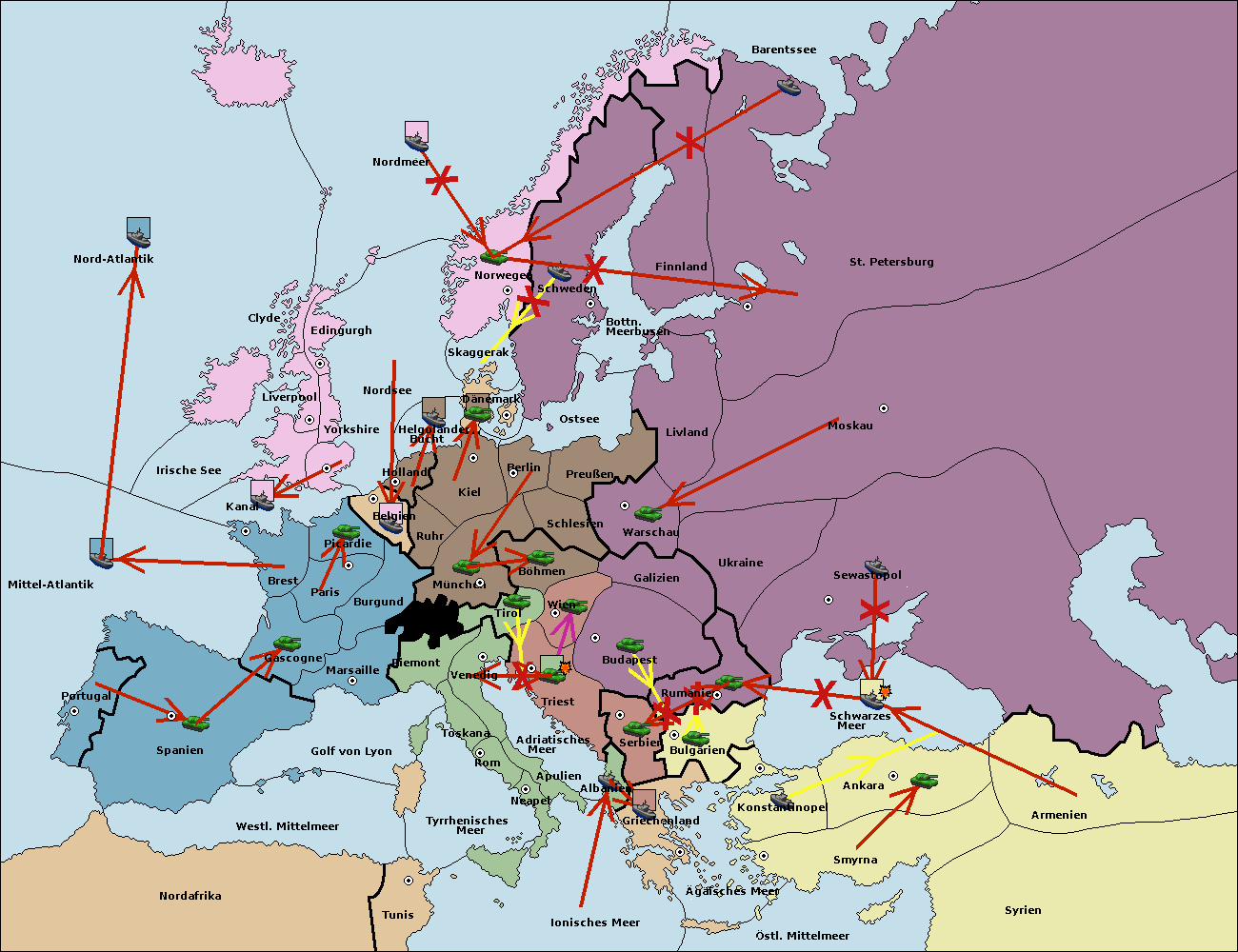 • Die Armee in Norwegen support move nach Schweden von Dänemark. (gescheitert)