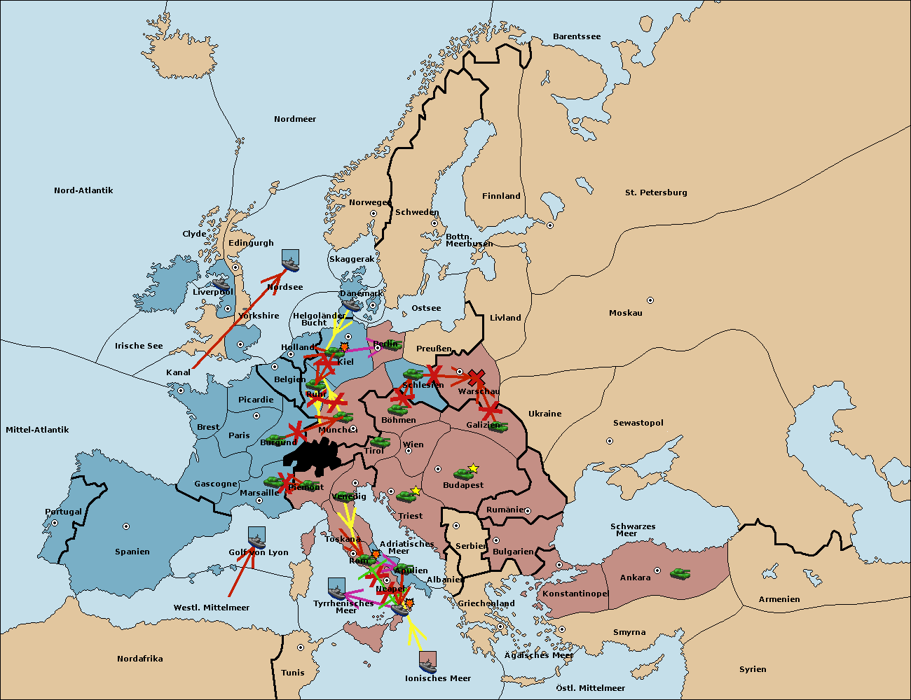 • Die Flotte in Neapel support hold nach Rom. (gescheitert)