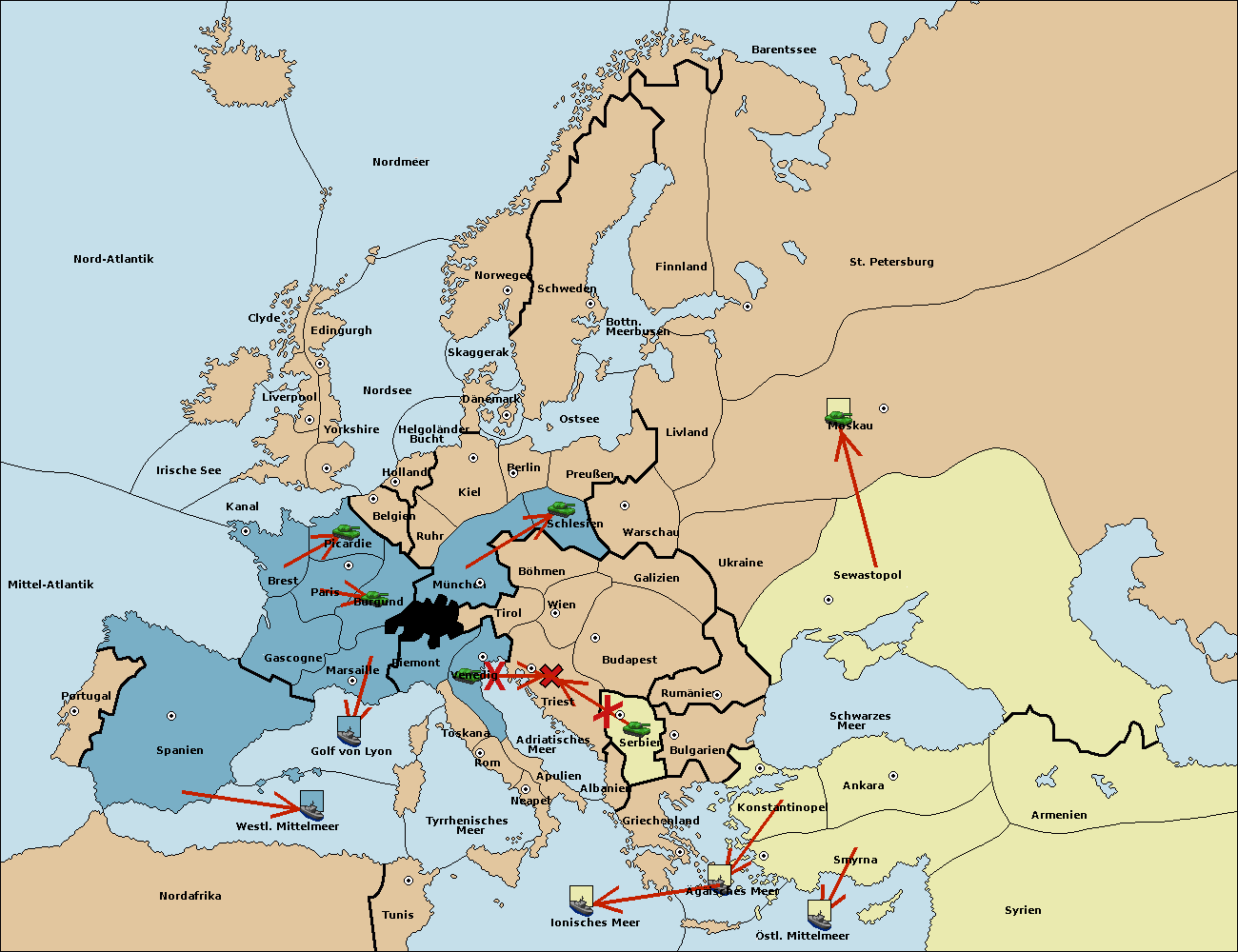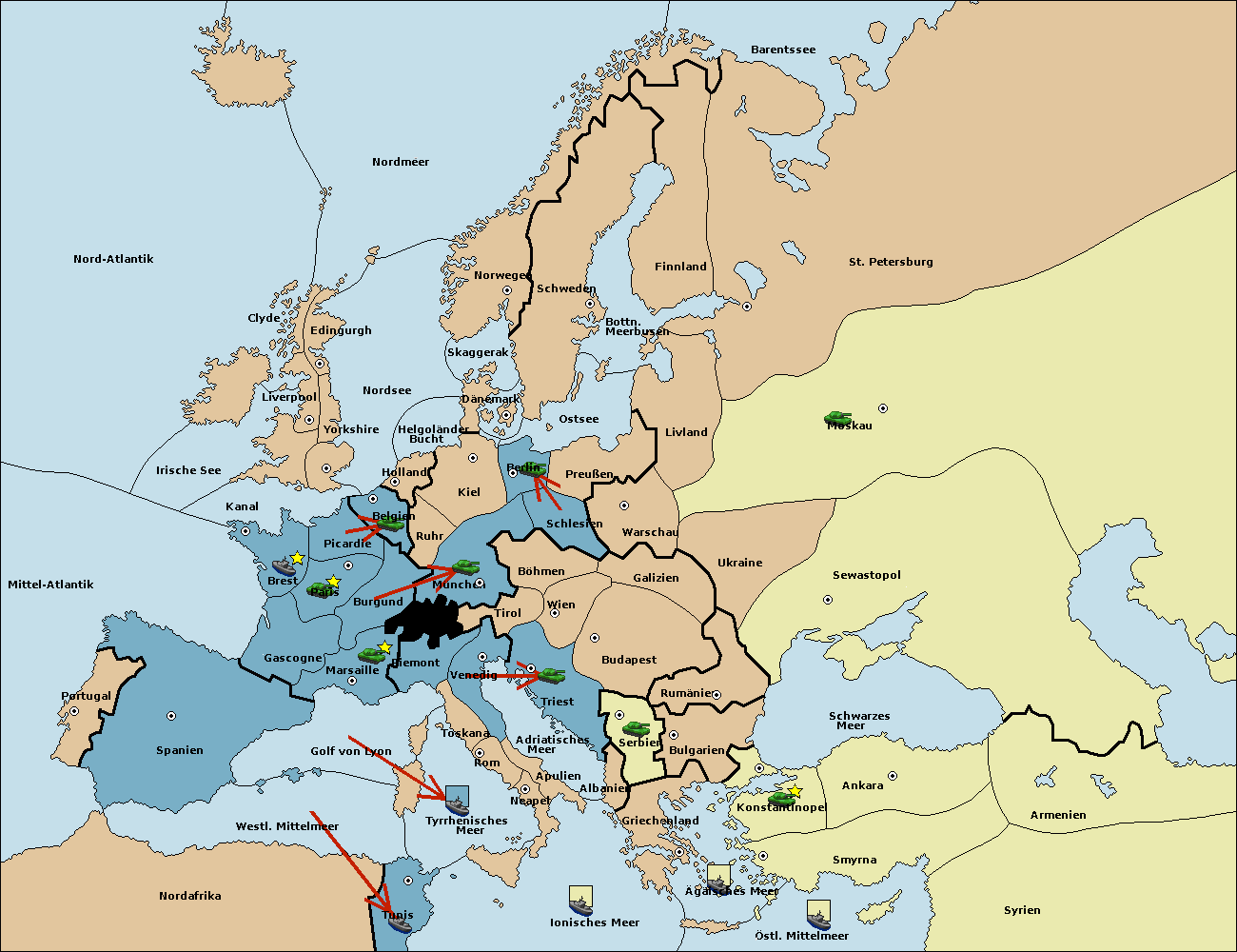 • Die Flotte in Spanien (Südküste) move nach westl. Mittelmeer.