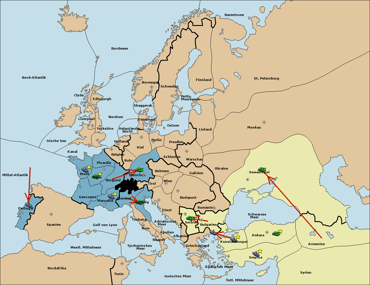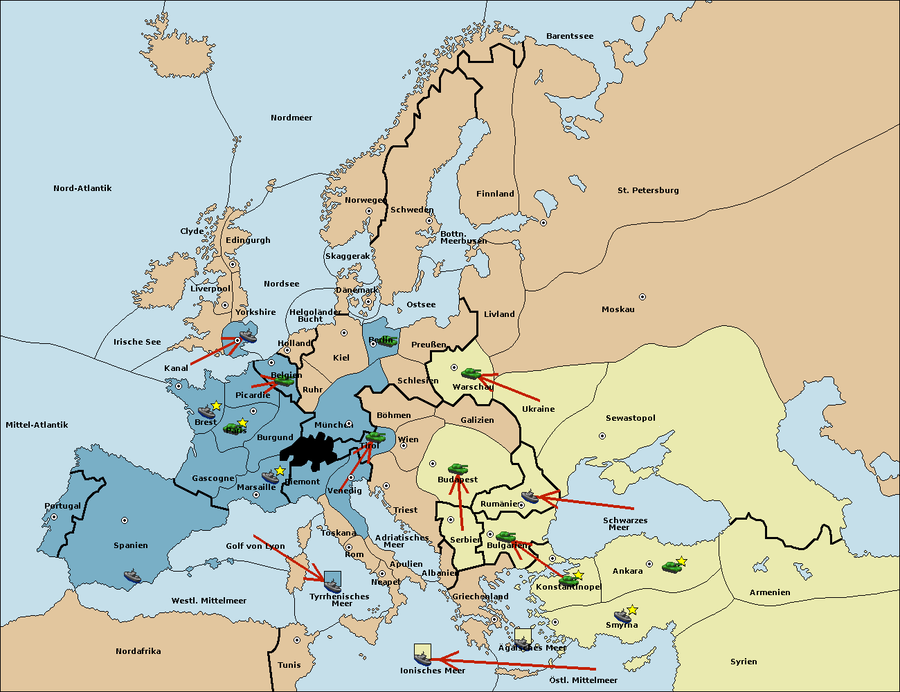 • Die Flotte in Bulgarien (Südküste) move nach Ägäisches Meer.