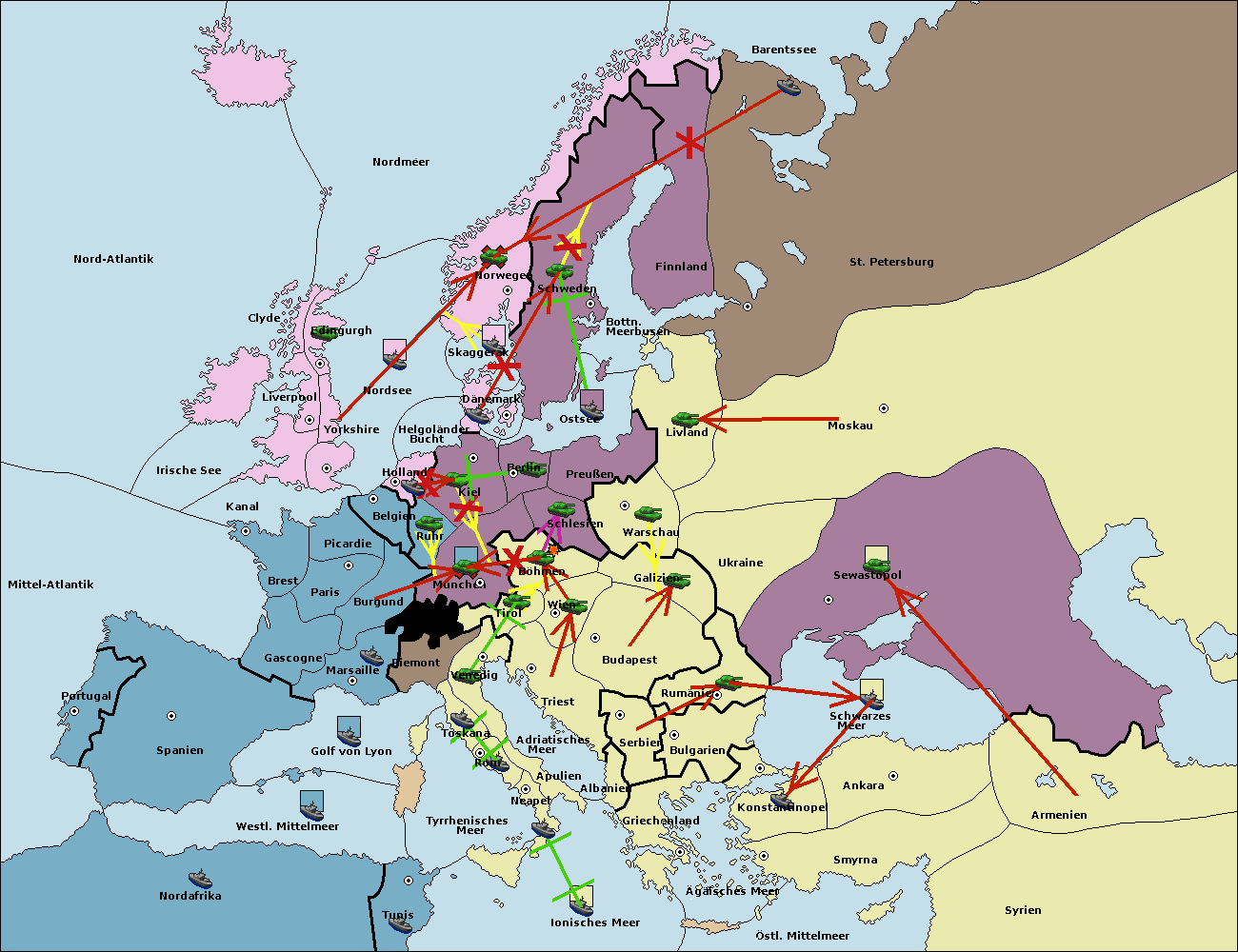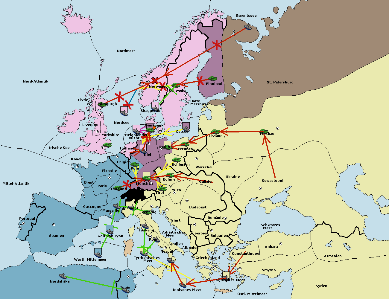 • Die Flotte in St. Petersburg (Nordküste) move nach Norwegen. (gescheitert)