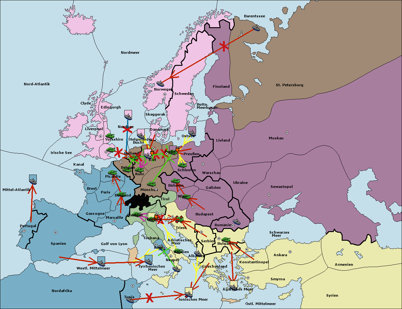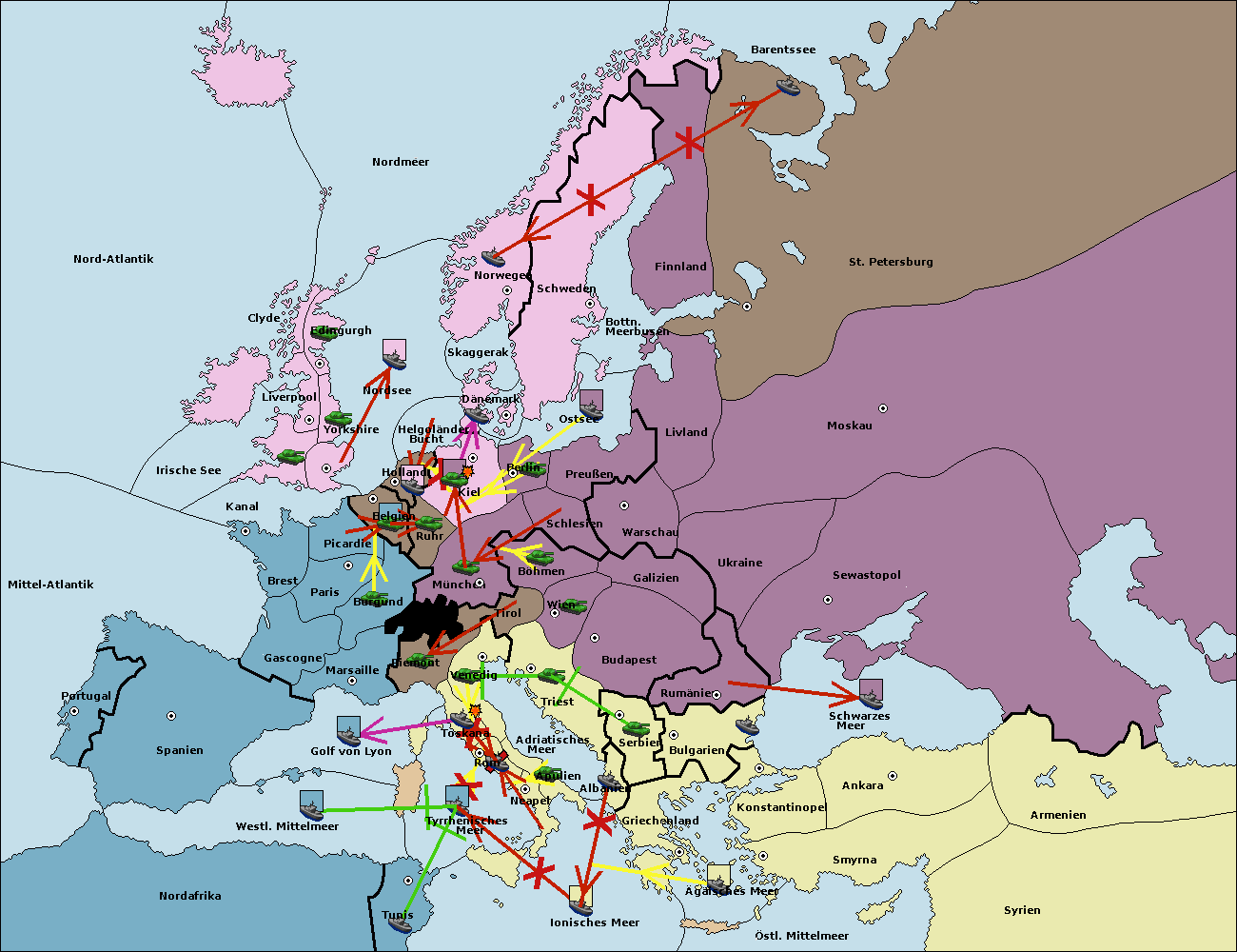 • Die Flotte in Kiel support move nach Dänemark von Helgoländer Bucht. (gescheitert)