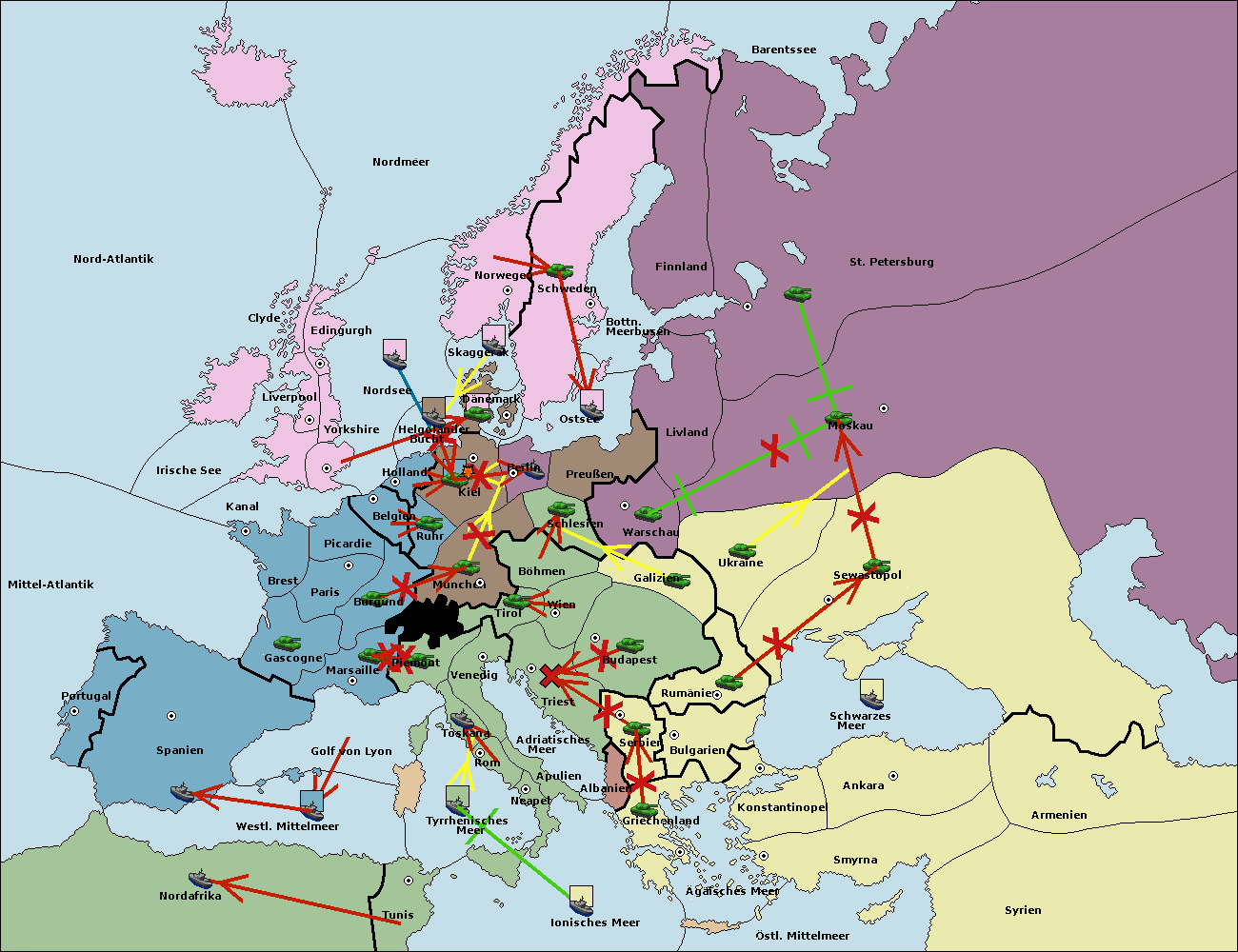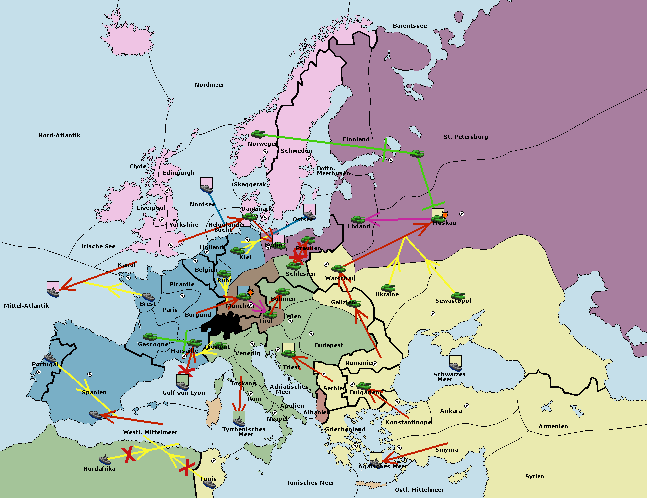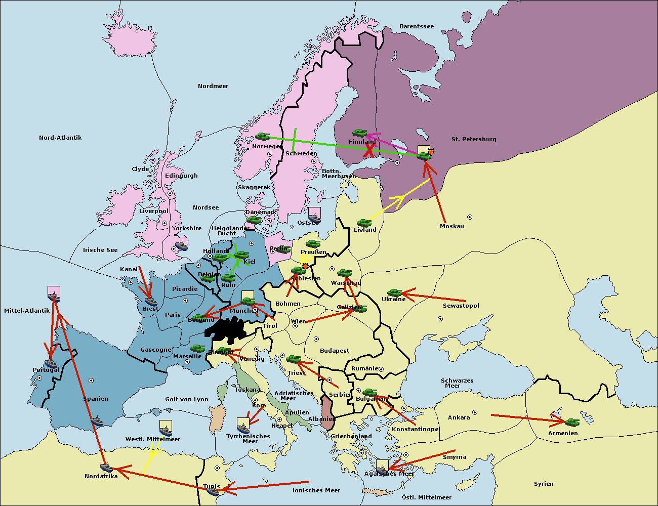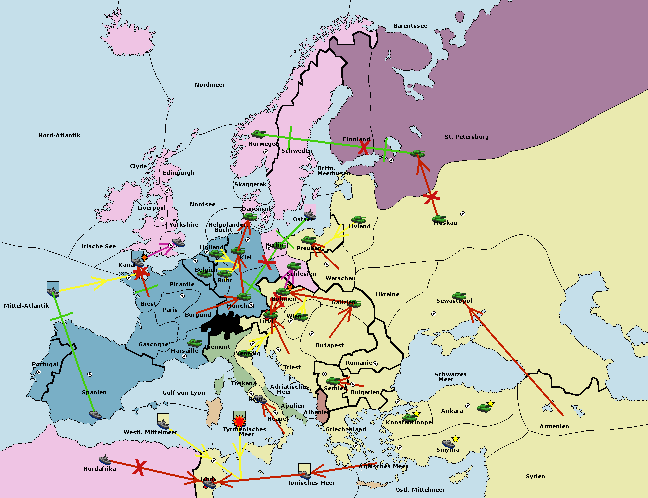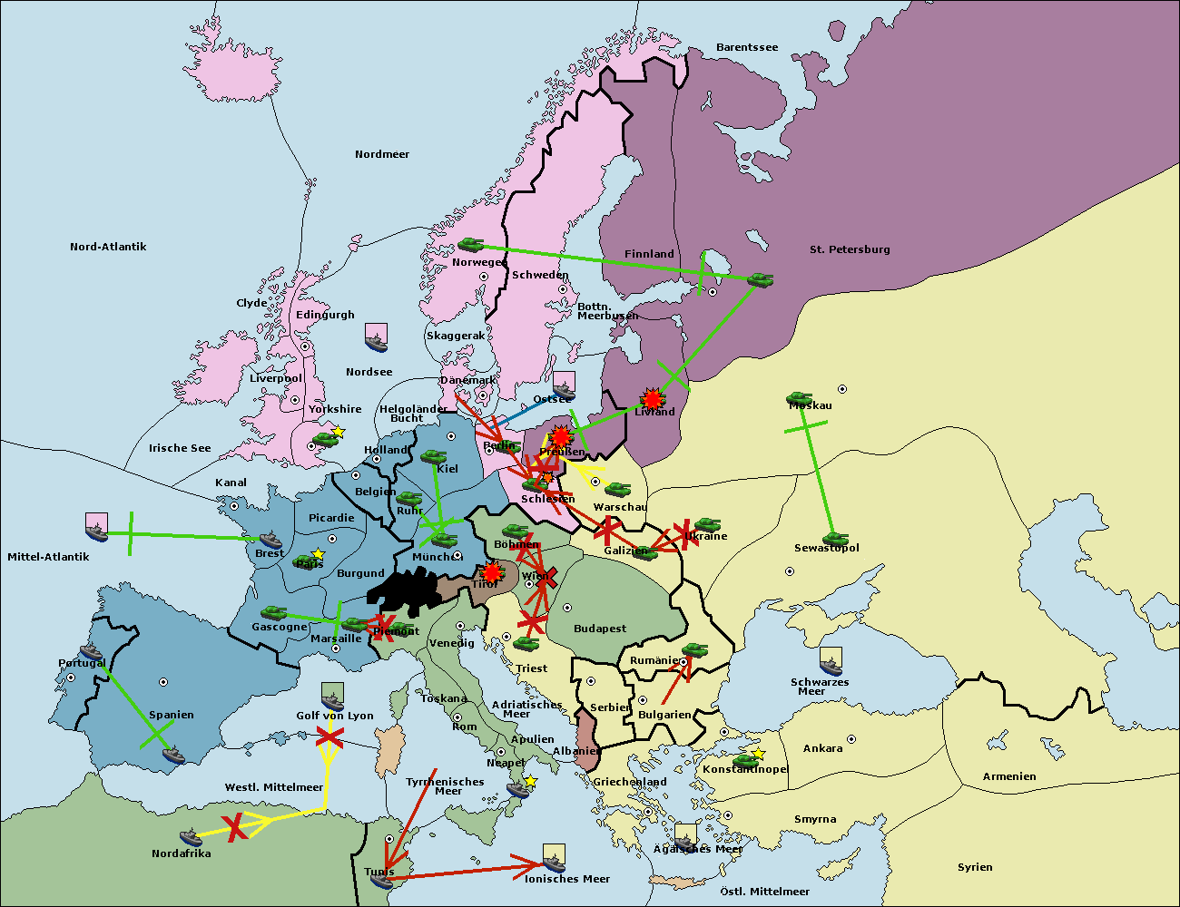 • Die Flotte in Nord Afrika move nach Tunis. (gescheitert)