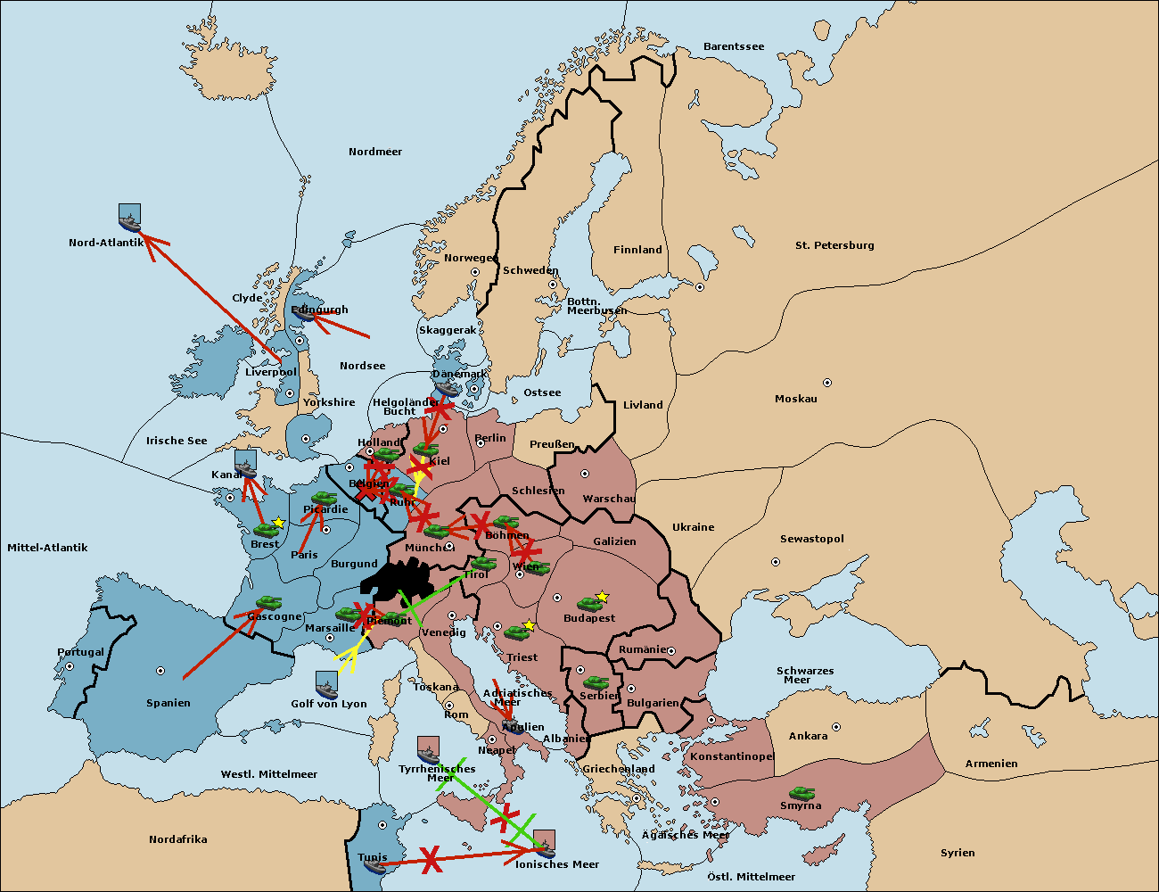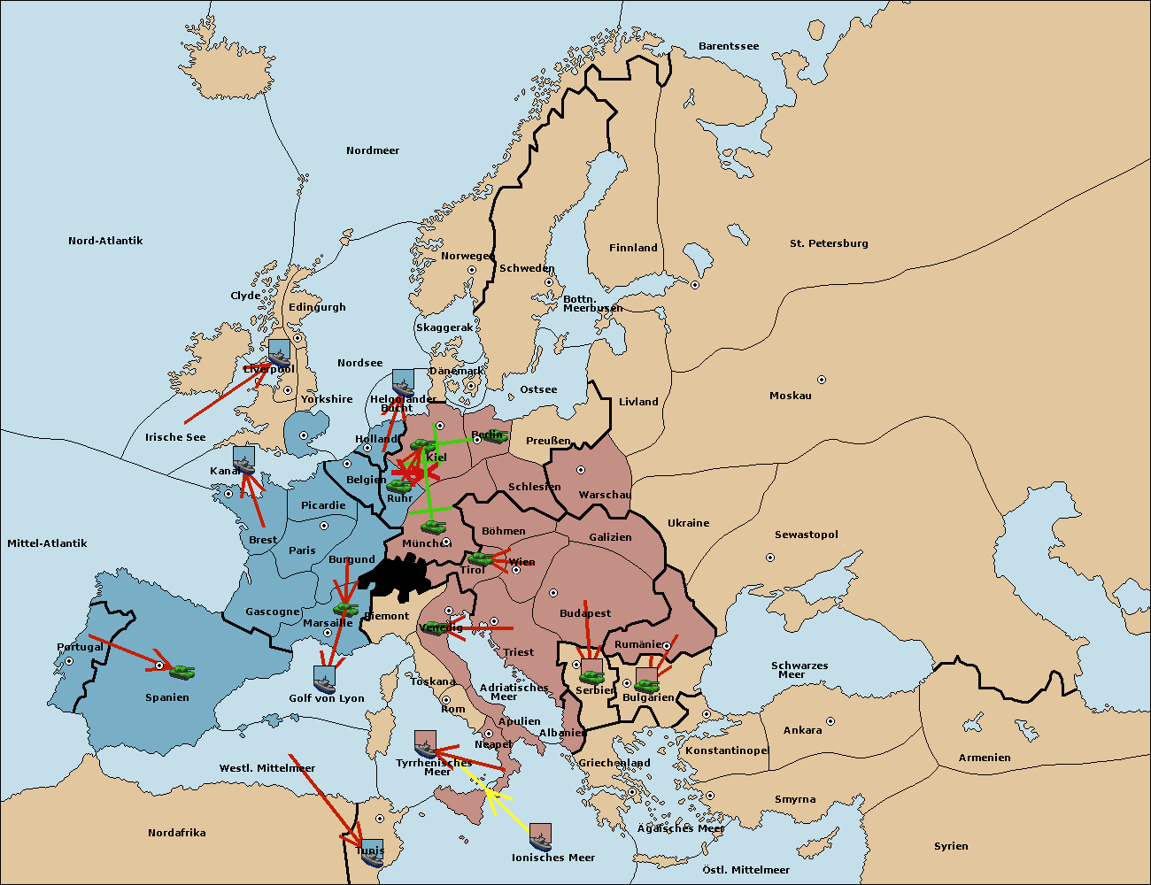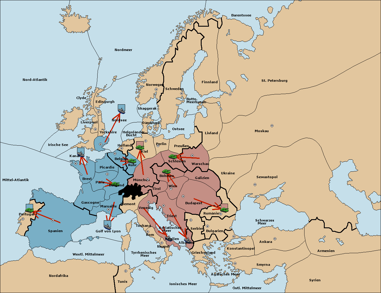 • Die Armee in Ruhr wird zerstörtFlotte in Ruhr gebaut.