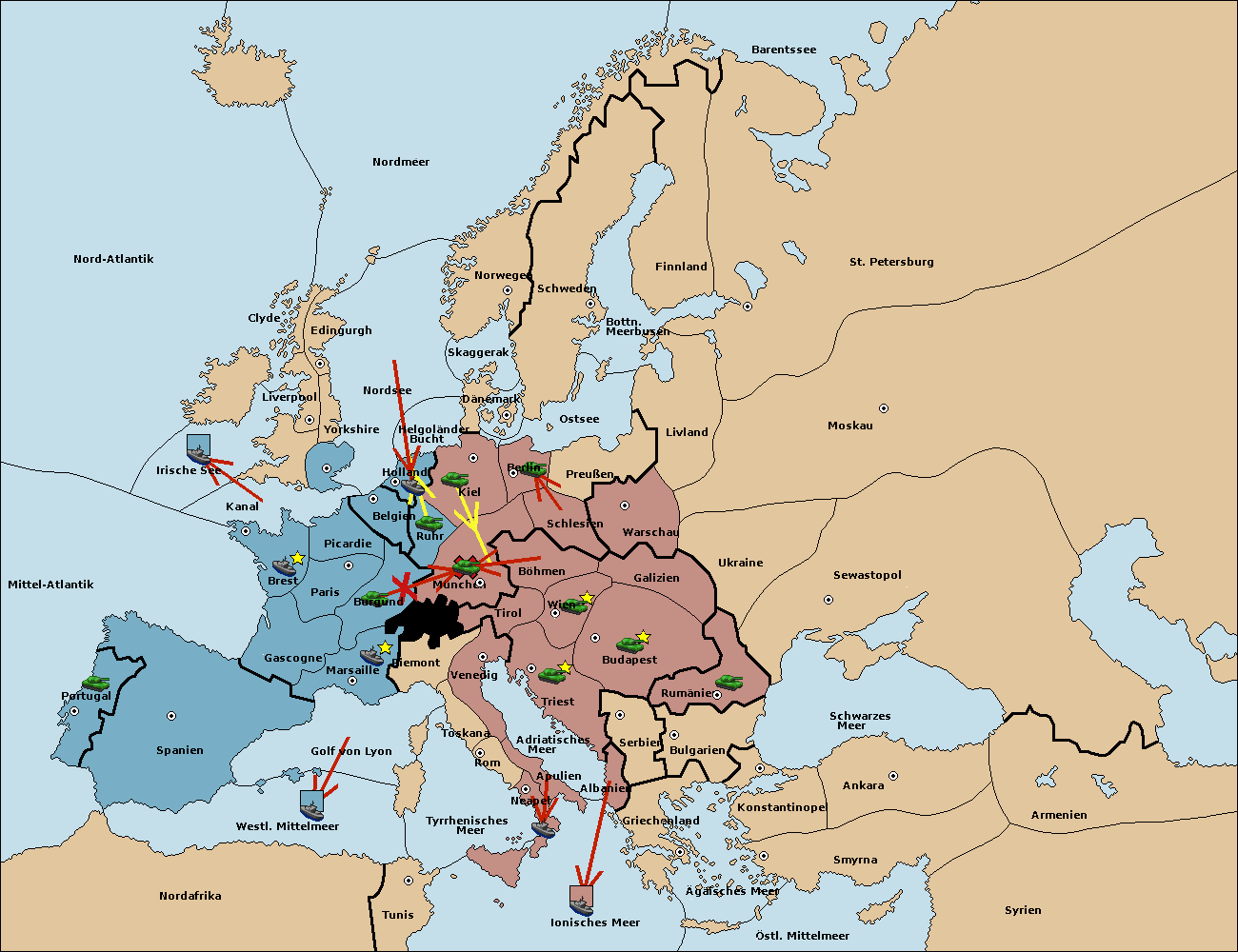• Die Armee in Kiel support move nach München von Böhmen.