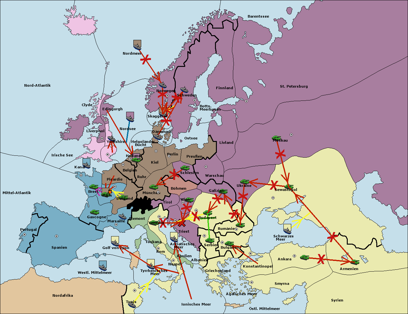 • Die Armee in Wien support move nach Triest von Venedig. (gescheitert)