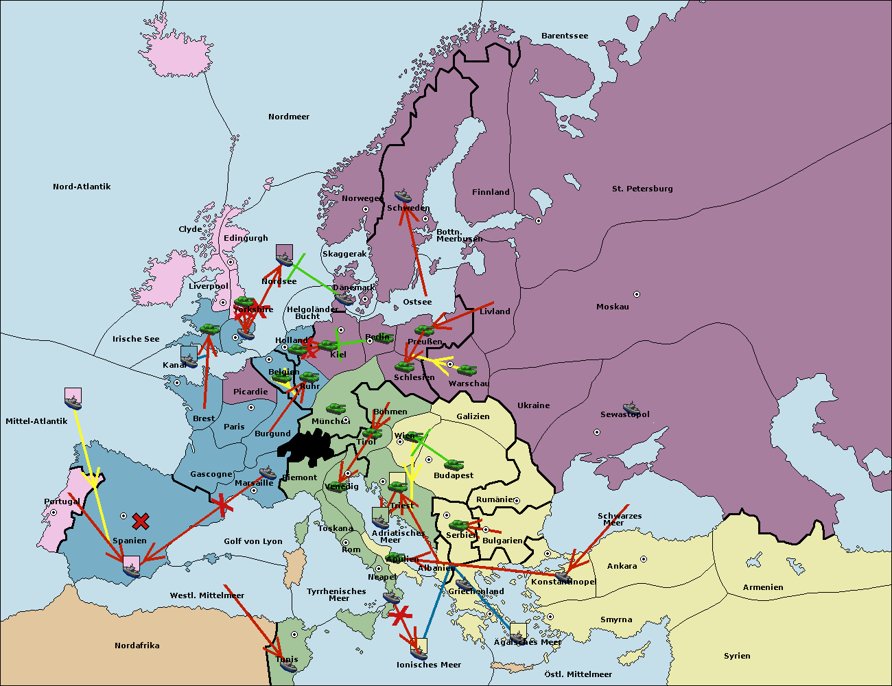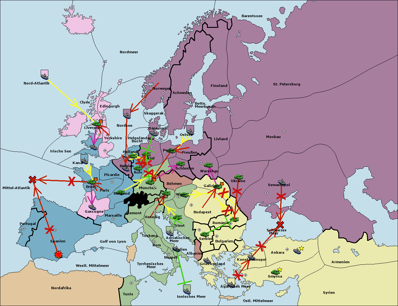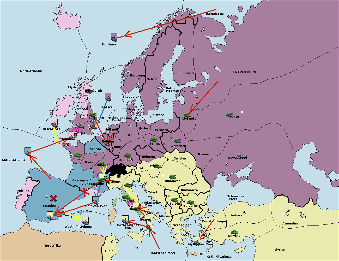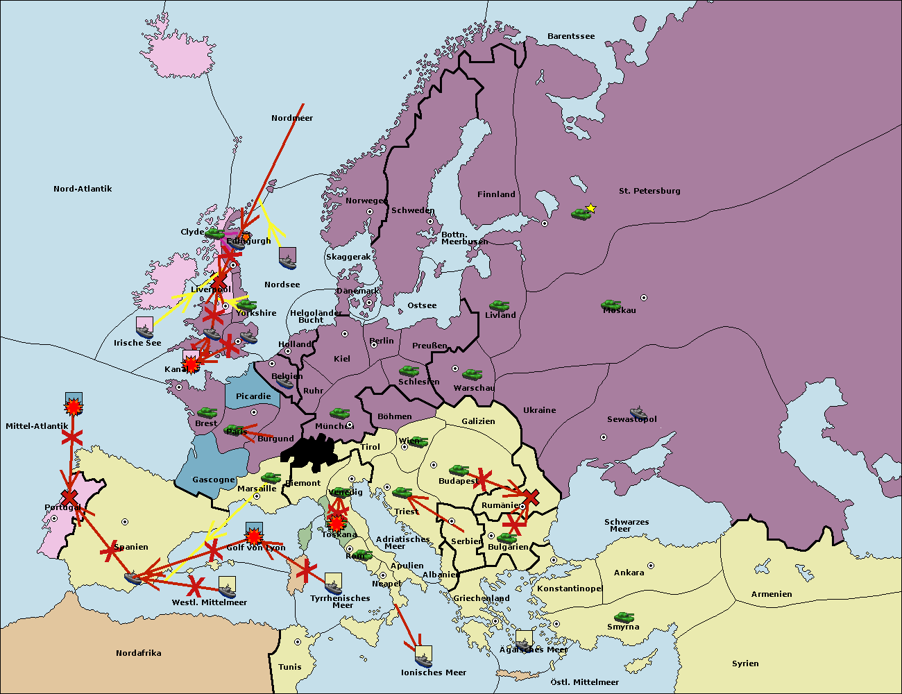 • Die Flotte in Spanien (Südküste) move nach Portugal.