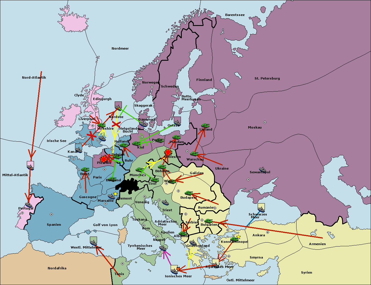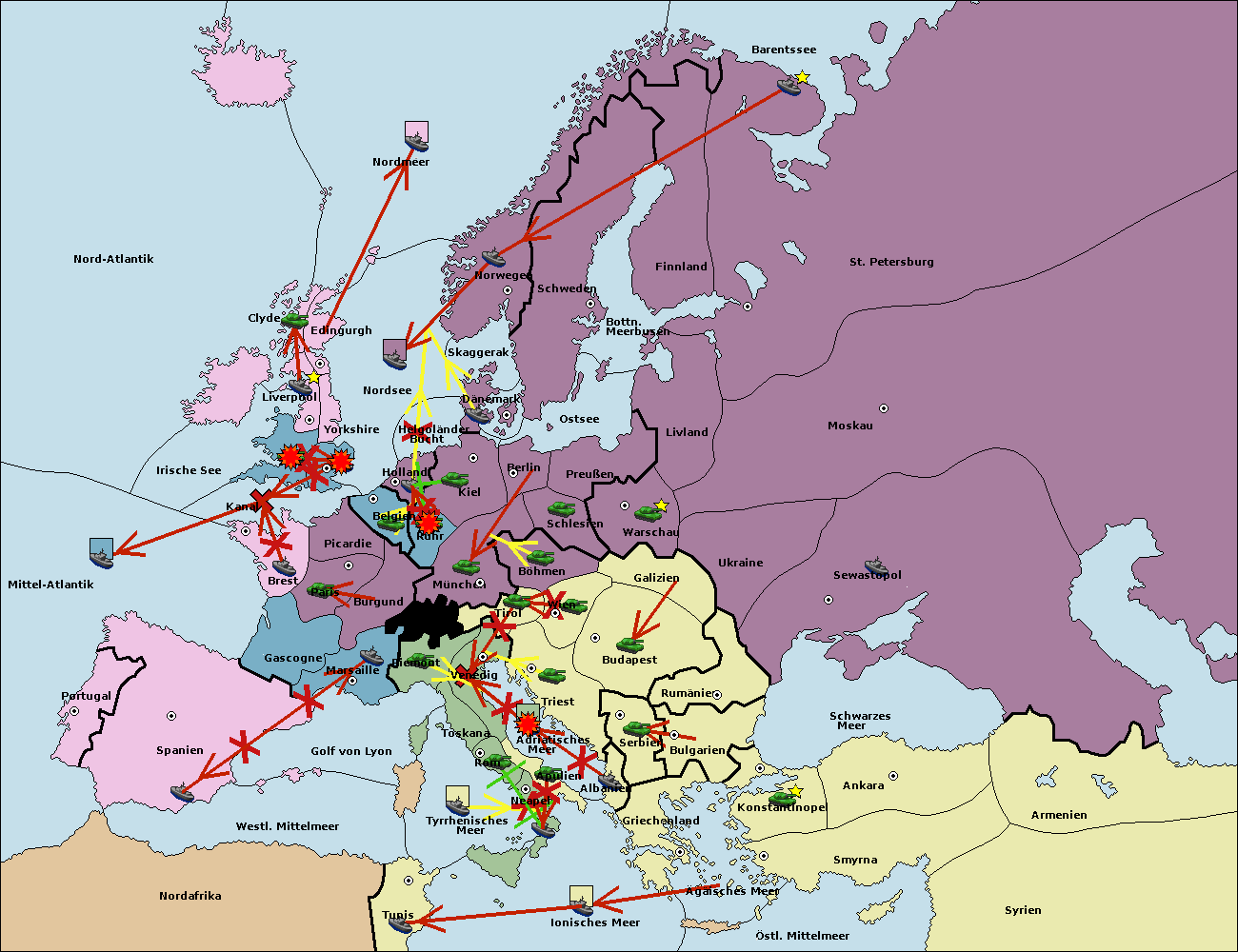 • Die Armee in Kiel wird zerstörtFlotte in Kiel gebaut.