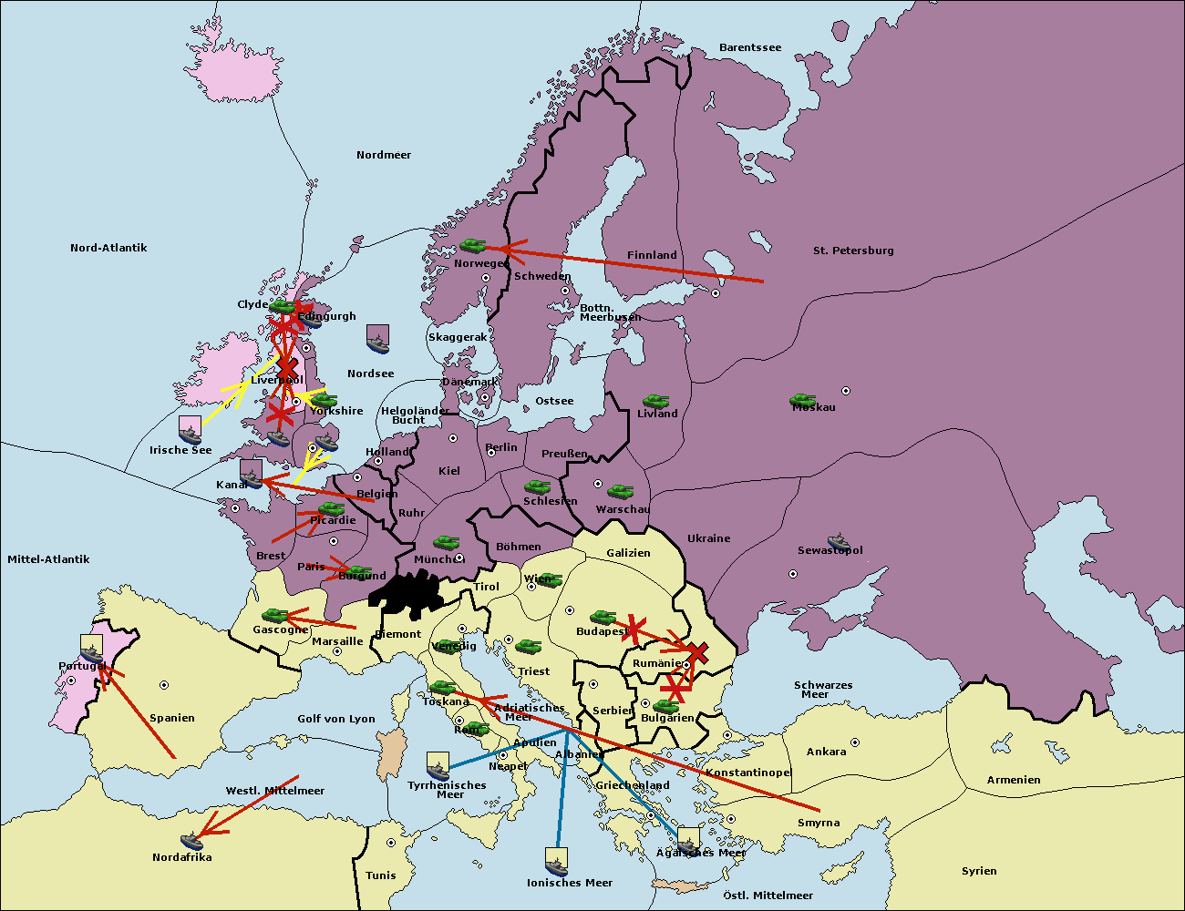 • Die Armee in Bulgarien move nach Rumänien. (gescheitert)