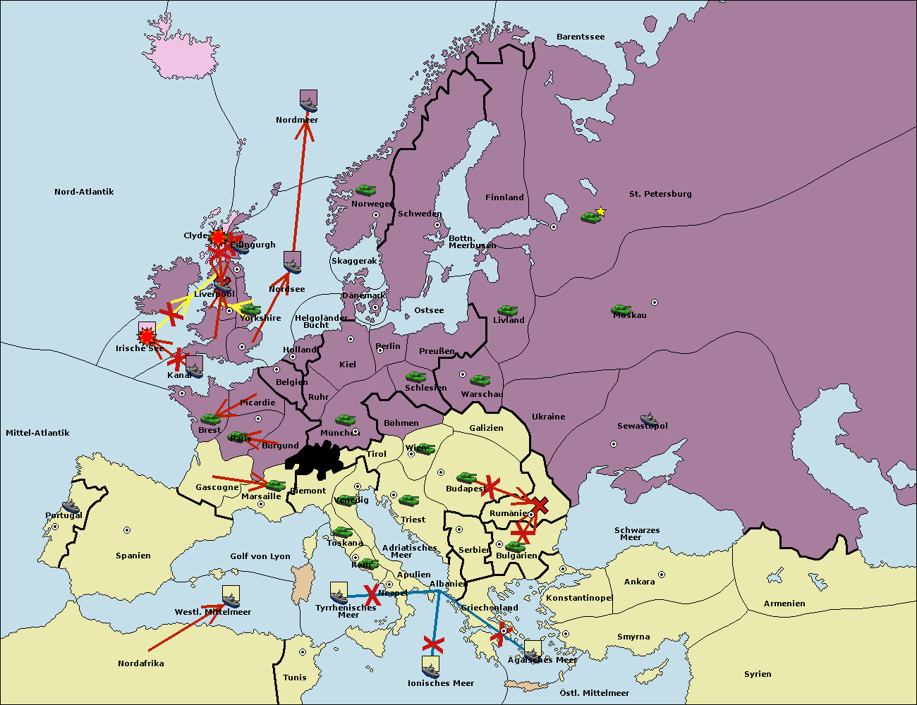 • Die Armee in Berlin wird zerstörtFlotte in Berlin gebaut.