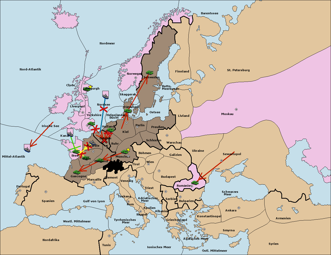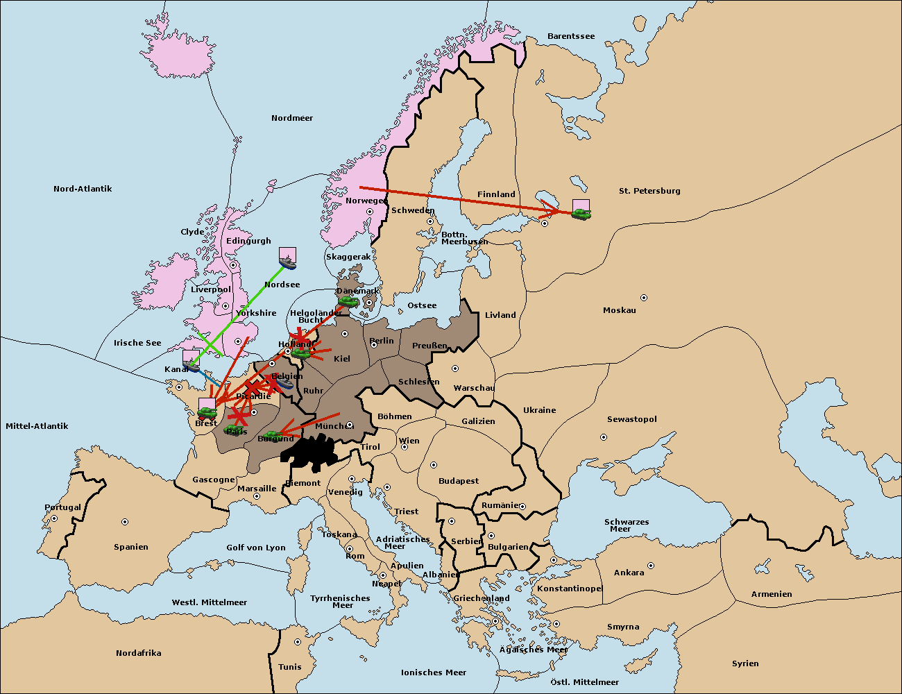• Die Armee in Dänemark move nach Brest via Concoy. (gescheitert)