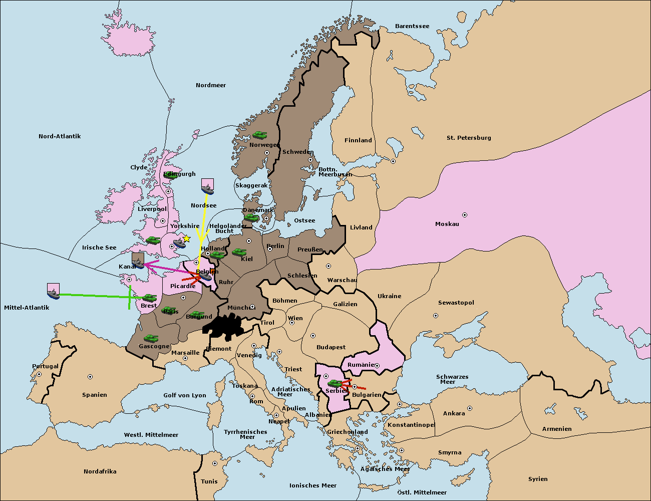 • Die Flotte in Belgien support move nach Holland von Edinburgh.
