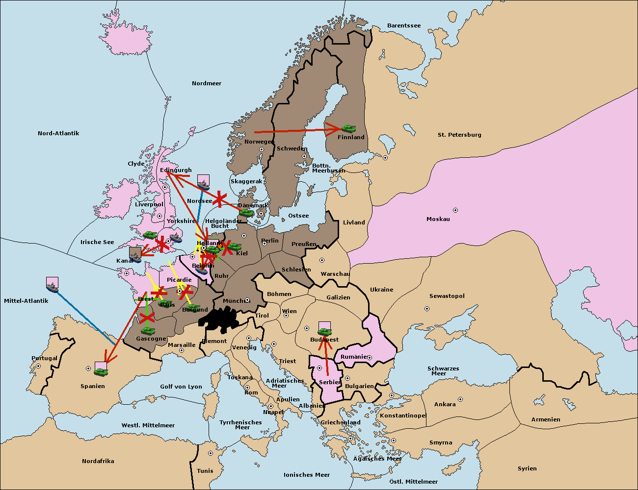 • Die Armee in Holland move nach Belgien via Concoy. (gescheitert)