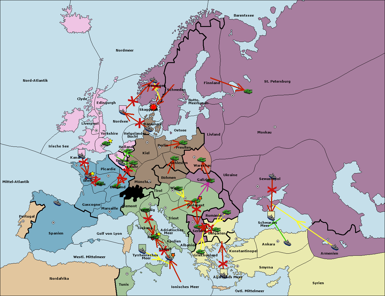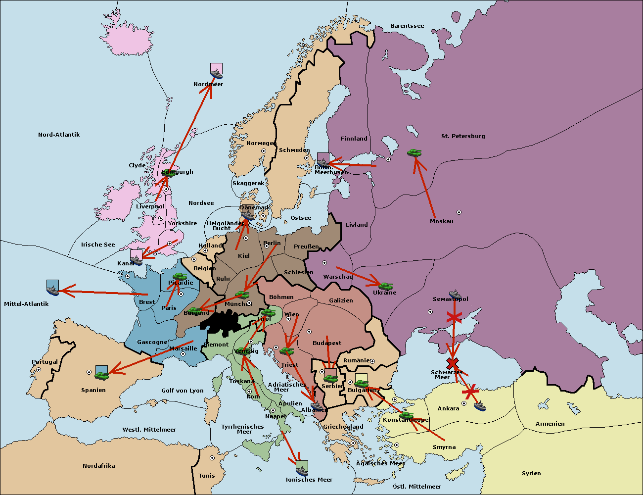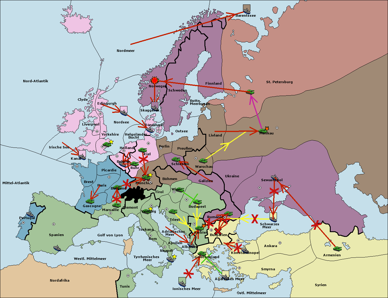 • Die Flotte in St. Petersburg (Nordküste) move nach Norwegen.