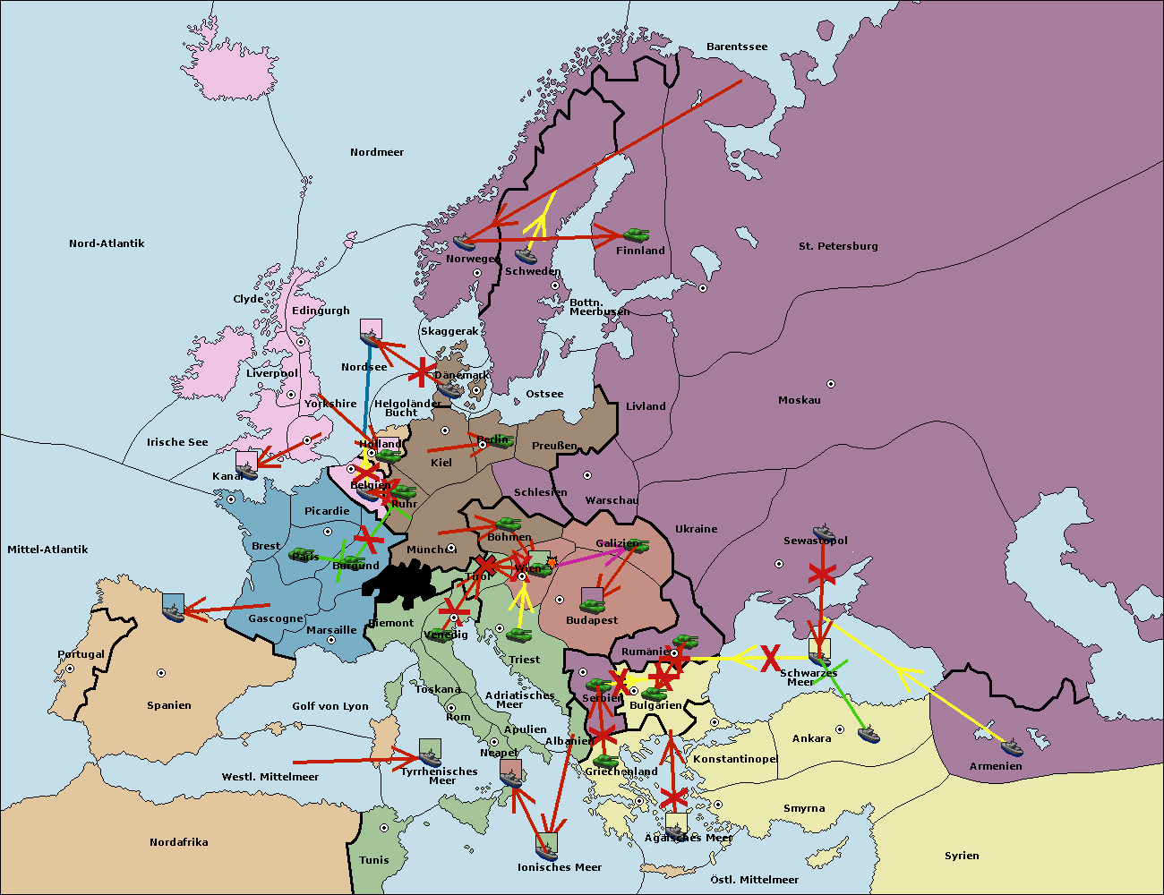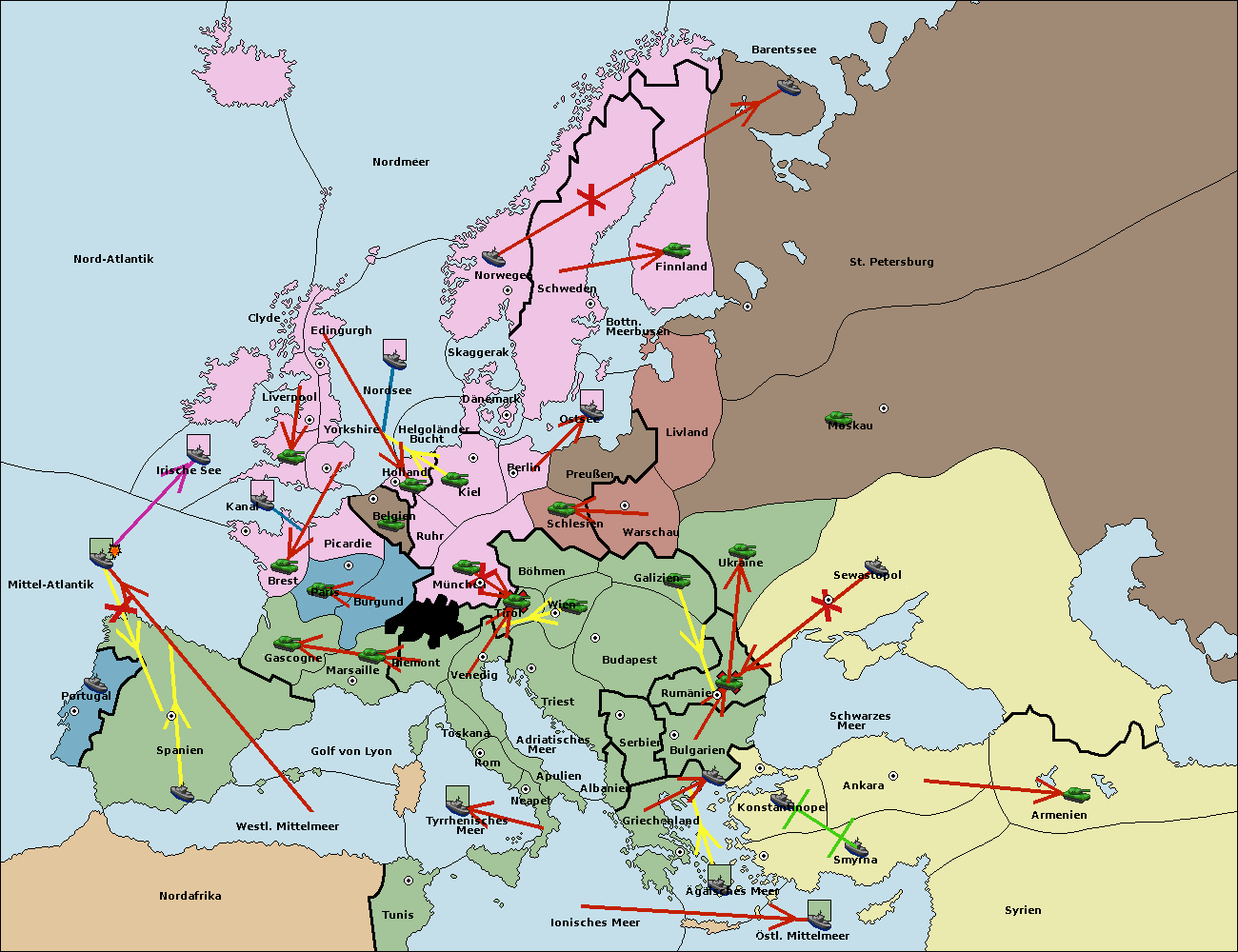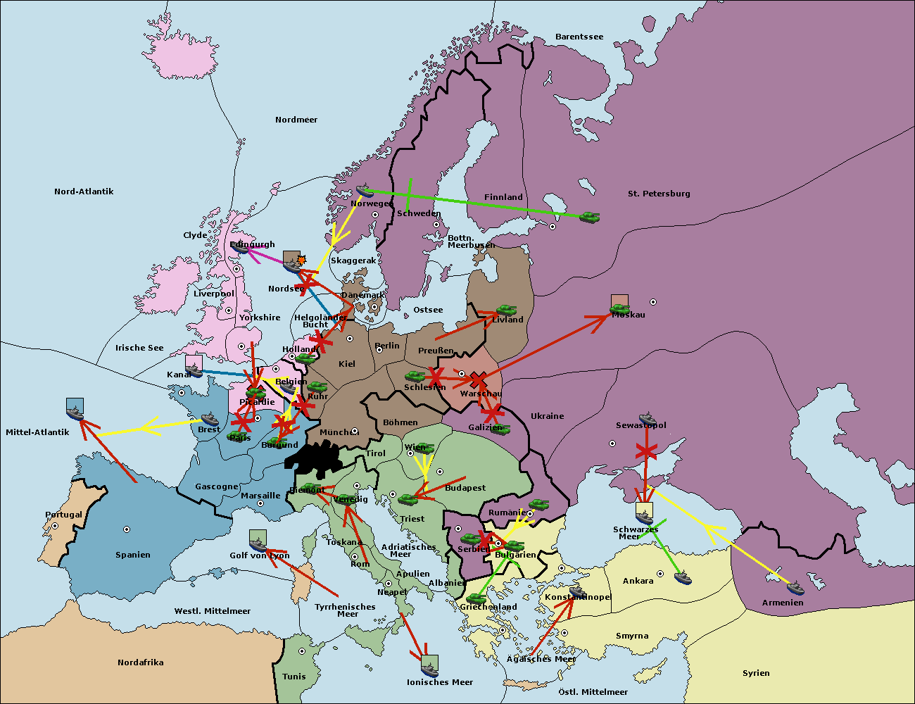 • Die Flotte in St. Petersburg (Nordküste) move nach Norwegen.