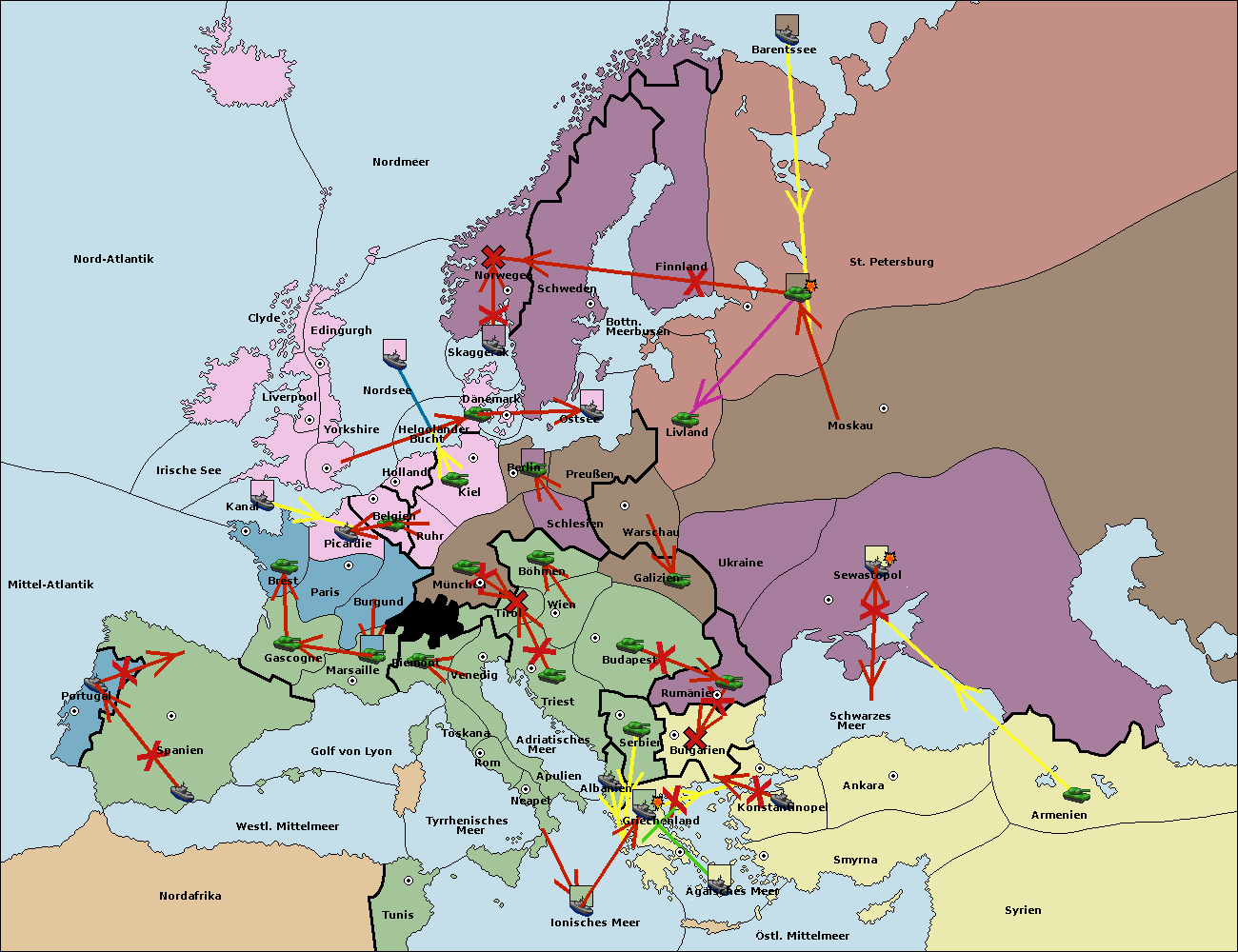 • Die Armee in Bulgarien move nach Griechenland. (gescheitert)