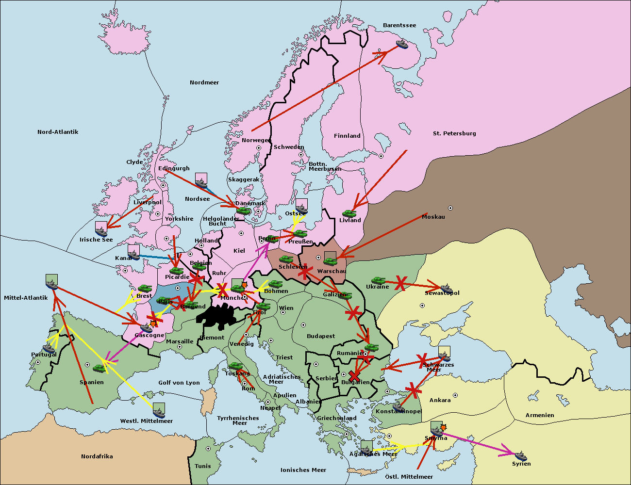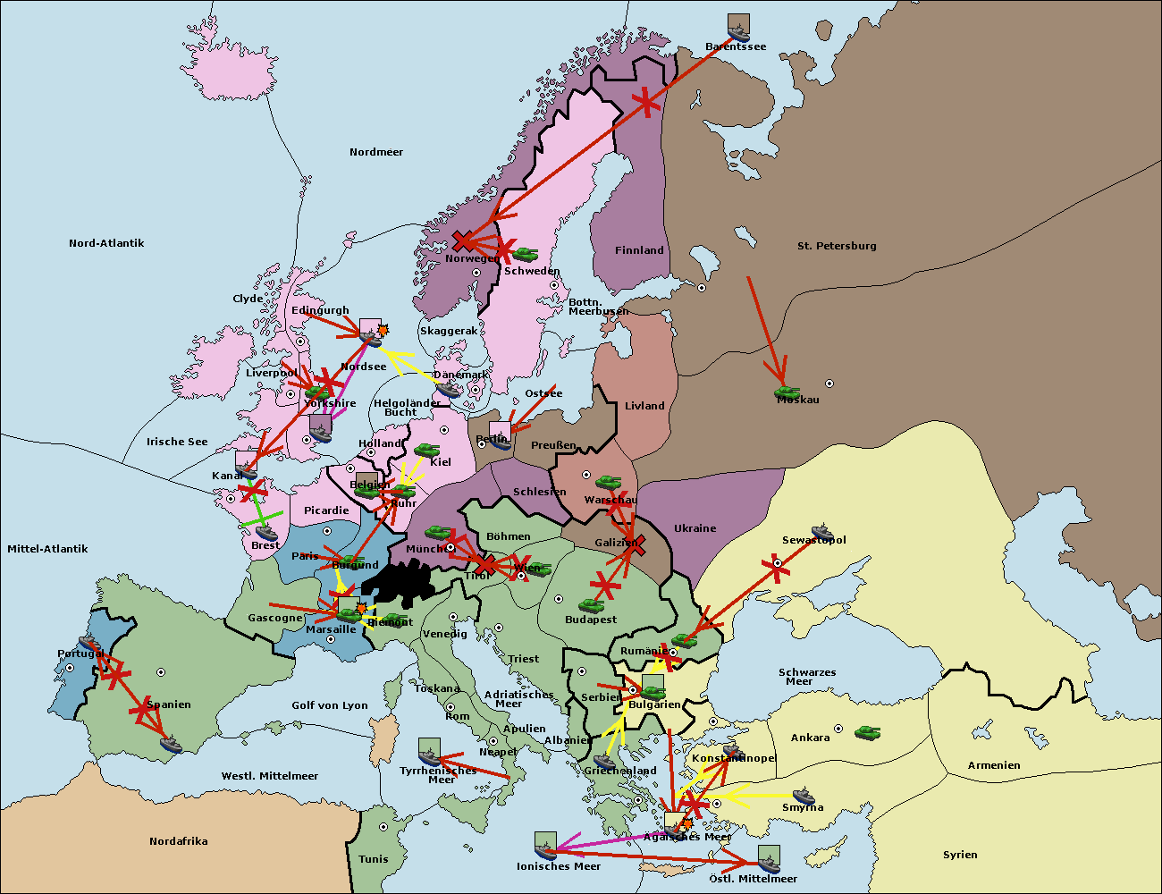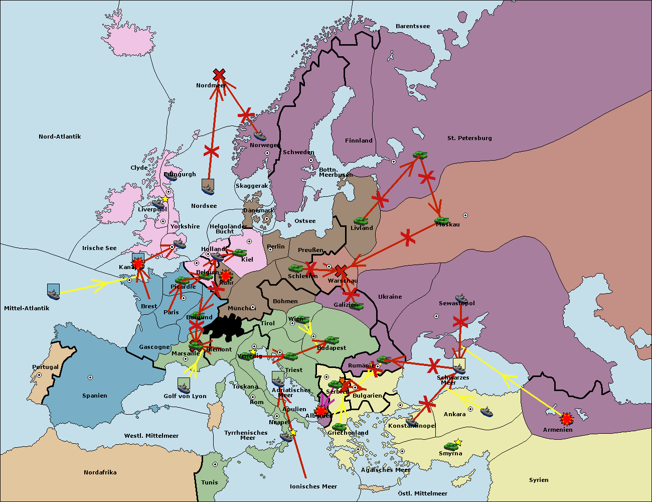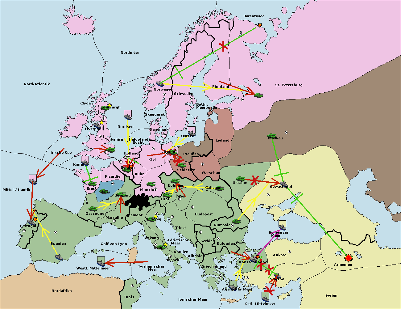 • Die Flotte in St. Petersburg (Nordküste) move nach Barentssee.