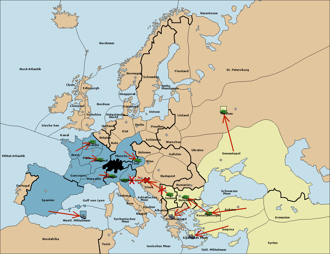 • Die Armee in Triest move nach Serbien. (gescheitert)