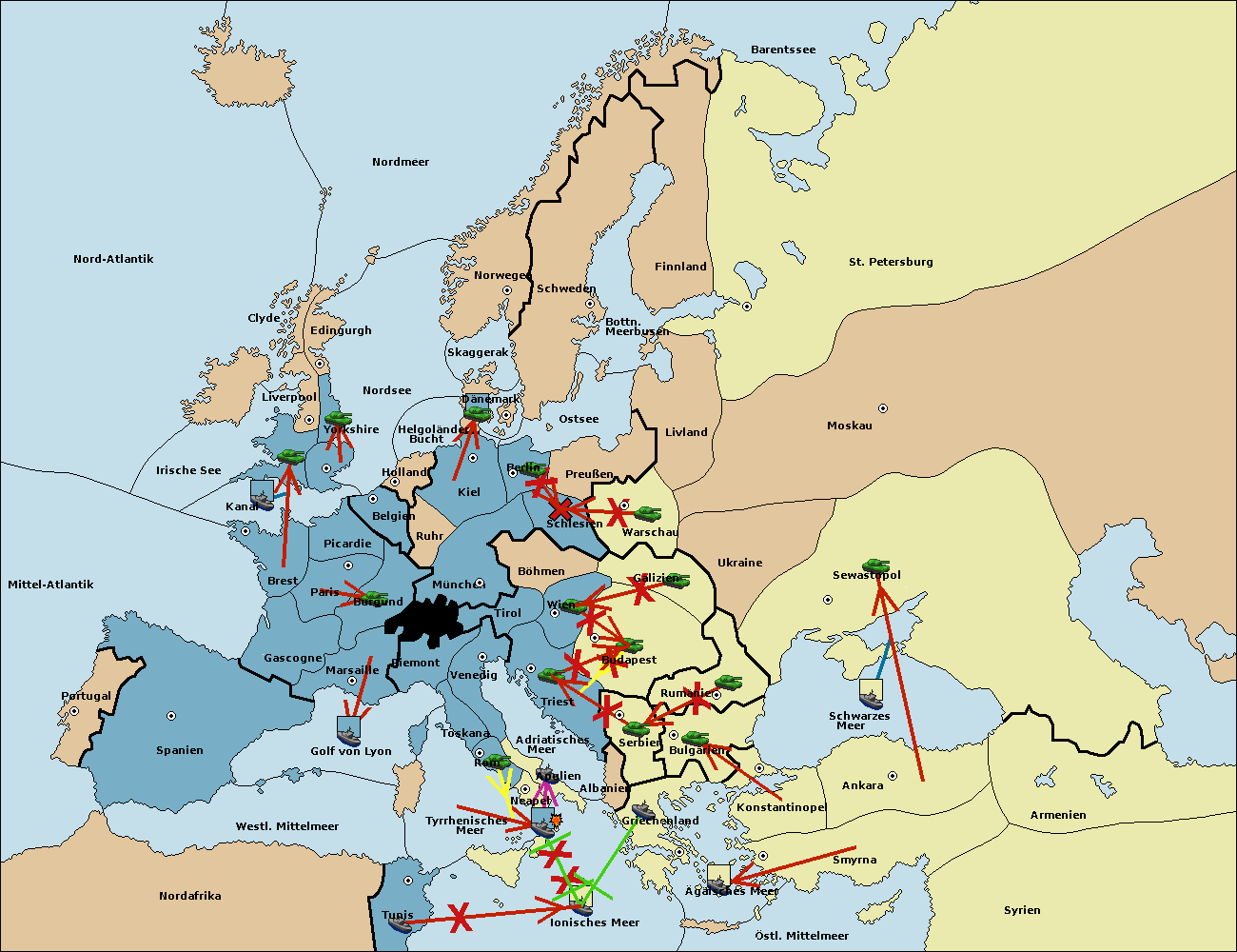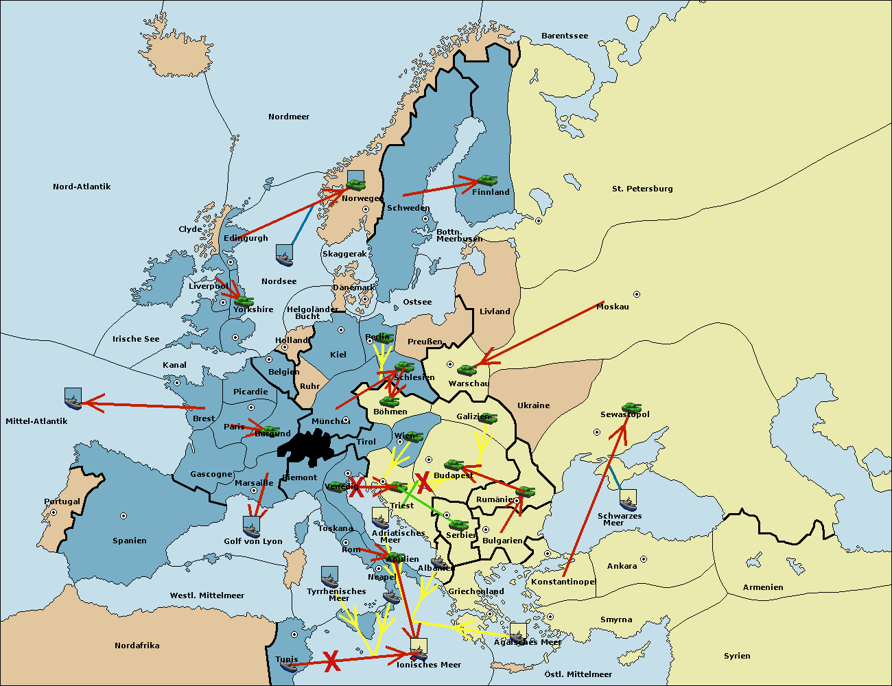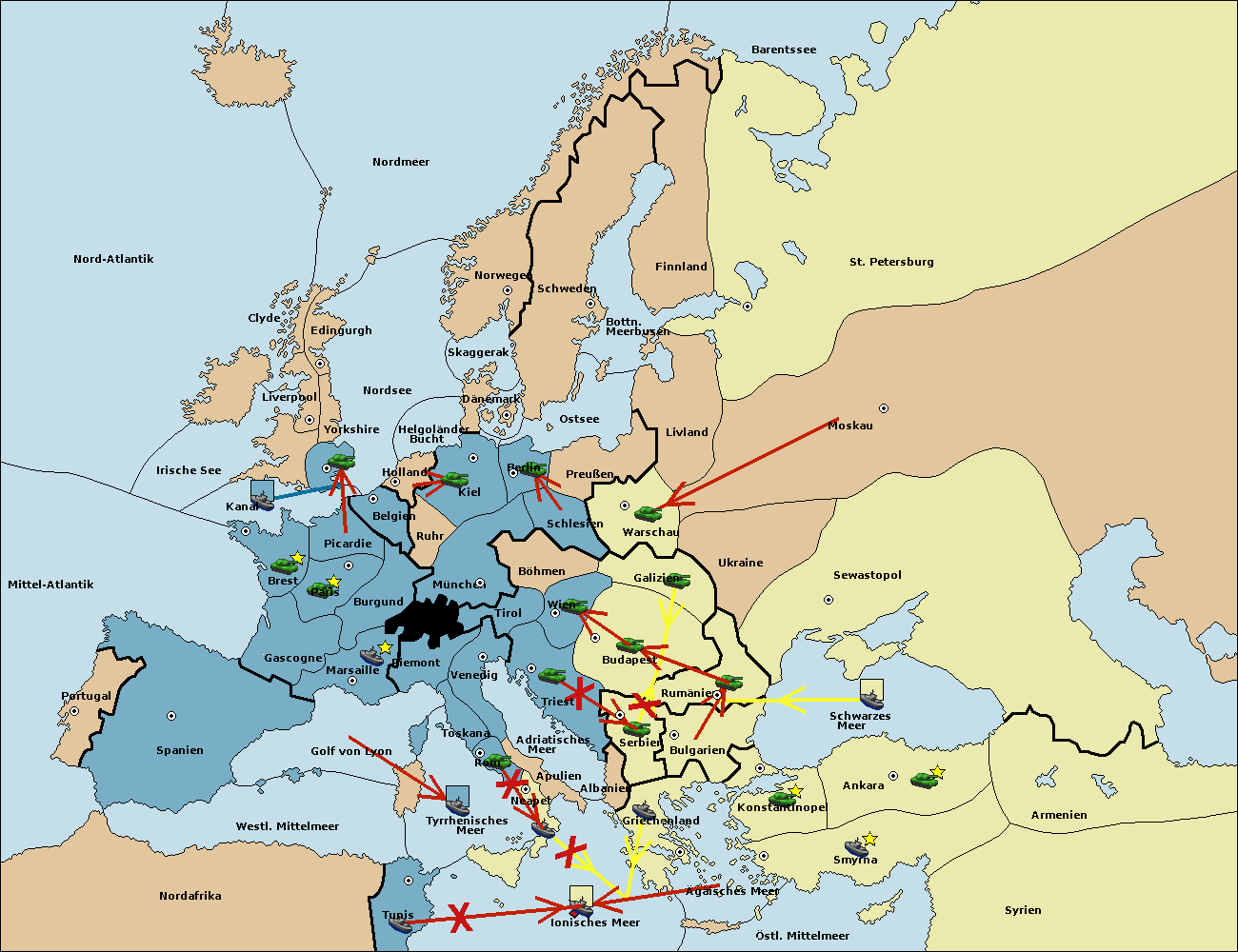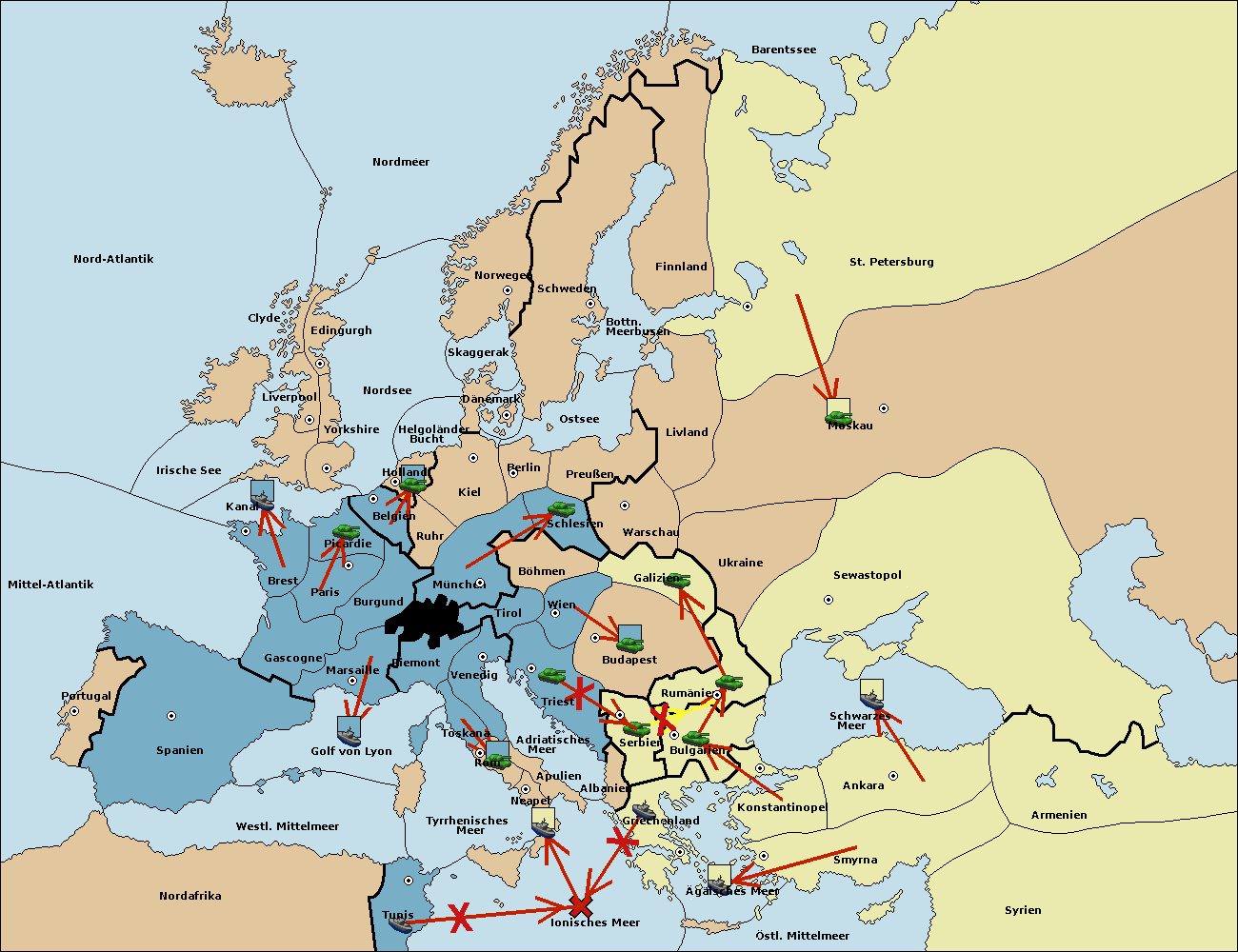 • Die Flotte in Bulgarien (Südküste) move nach Griechenland.
